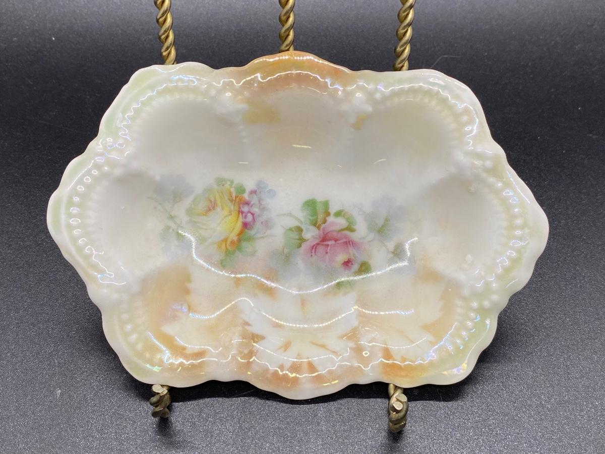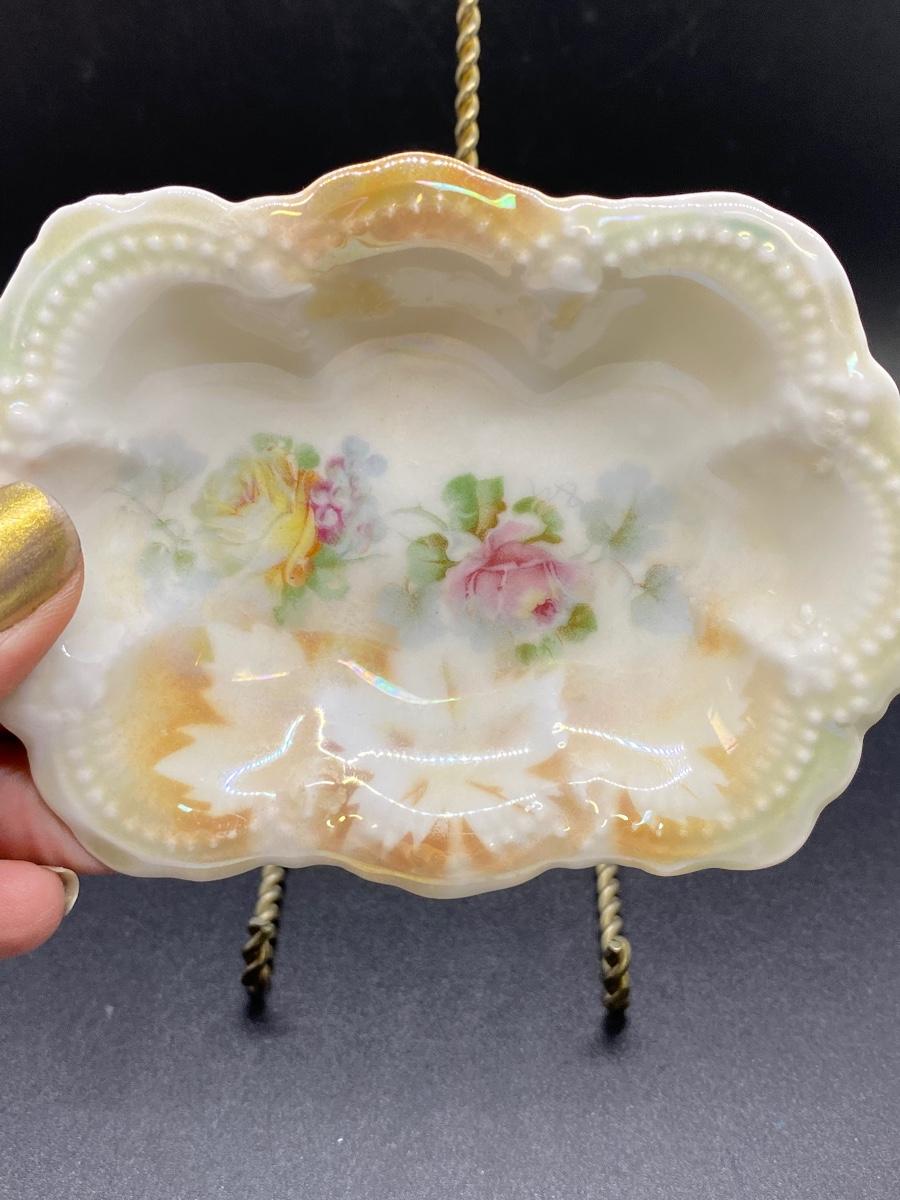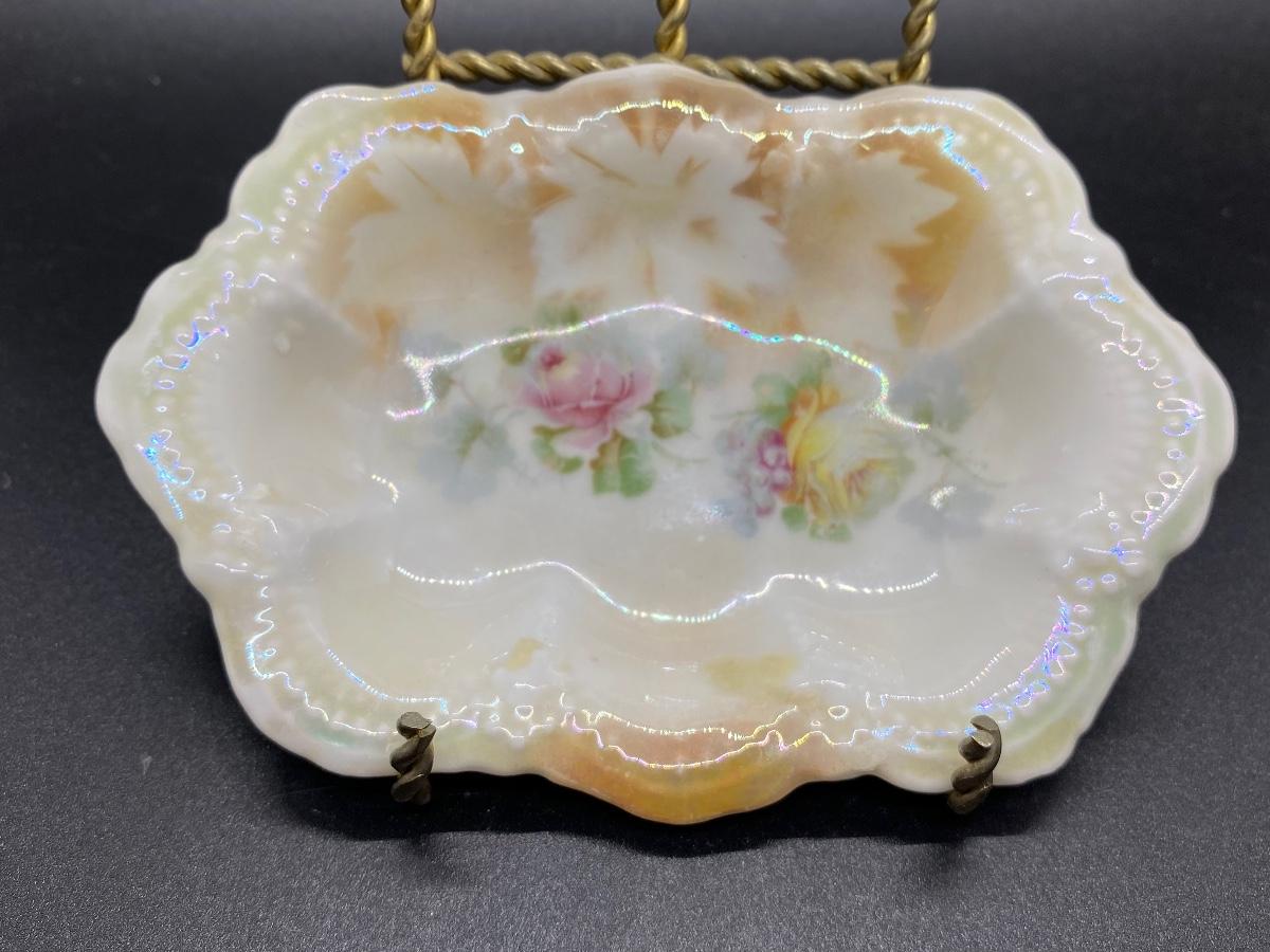 Antique Leuchtenburg Germany Floral Luster Small Trinket Bowl Celery Dish