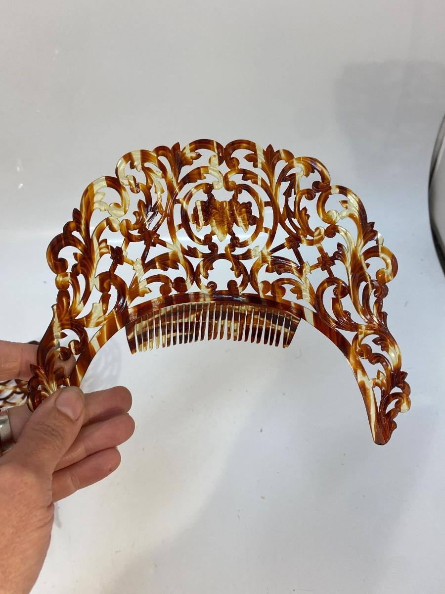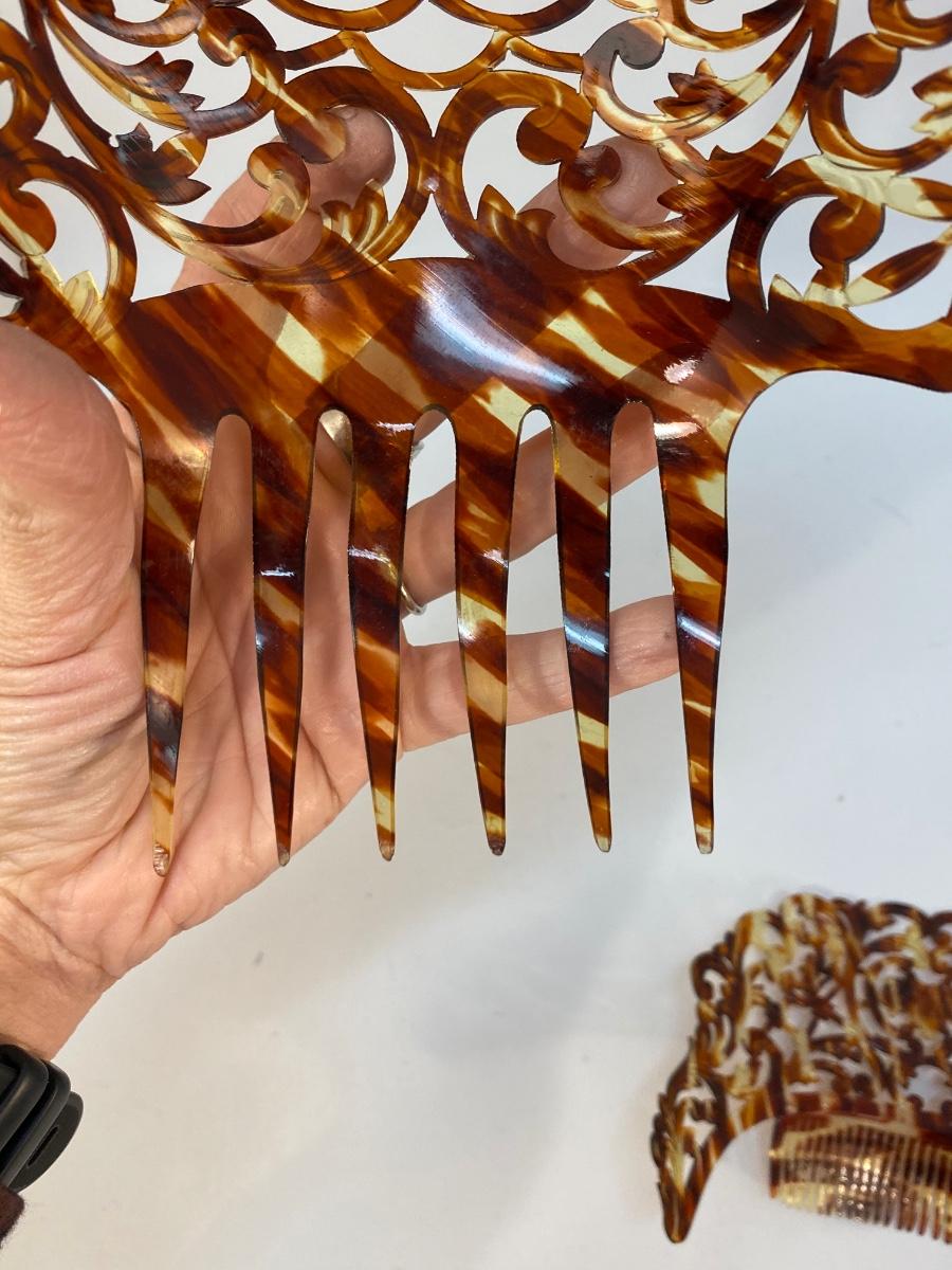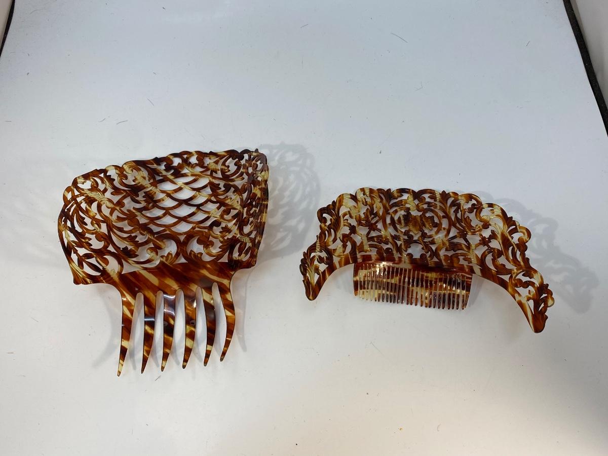 Pair of Vintage Spanish Mantilla Celluloid Tortoise Shell Lucite Plastic Hair Combs