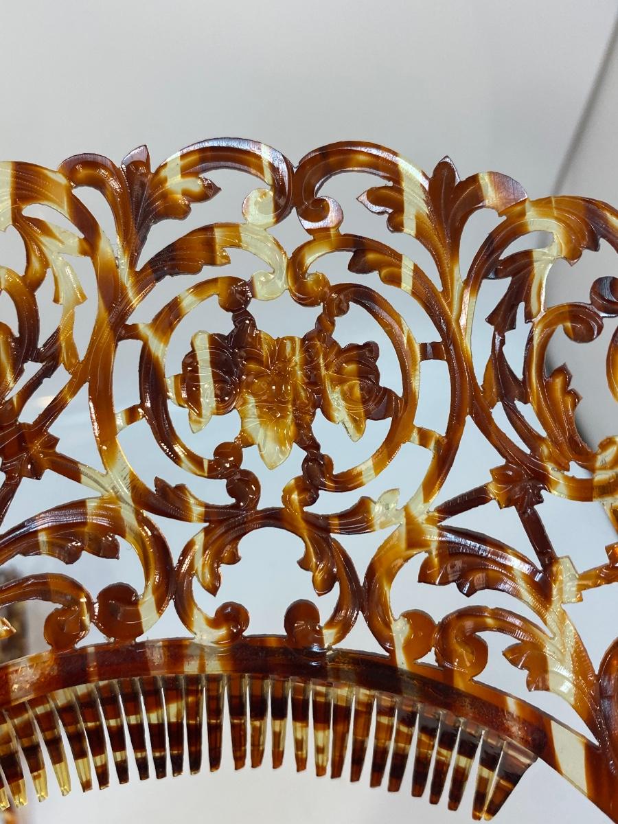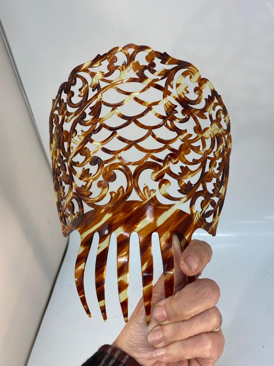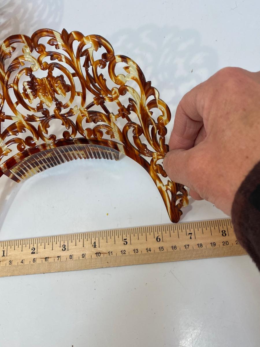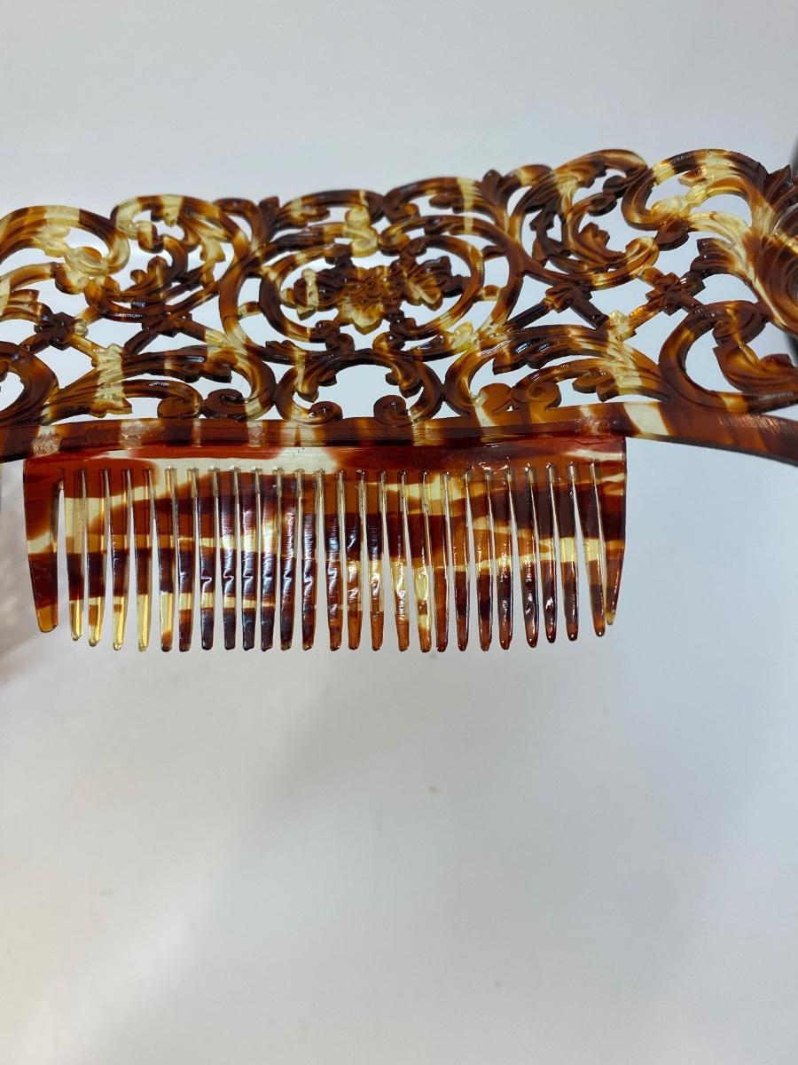 Pair of Vintage Spanish Mantilla Celluloid Tortoise Shell Lucite Plastic Hair Combs