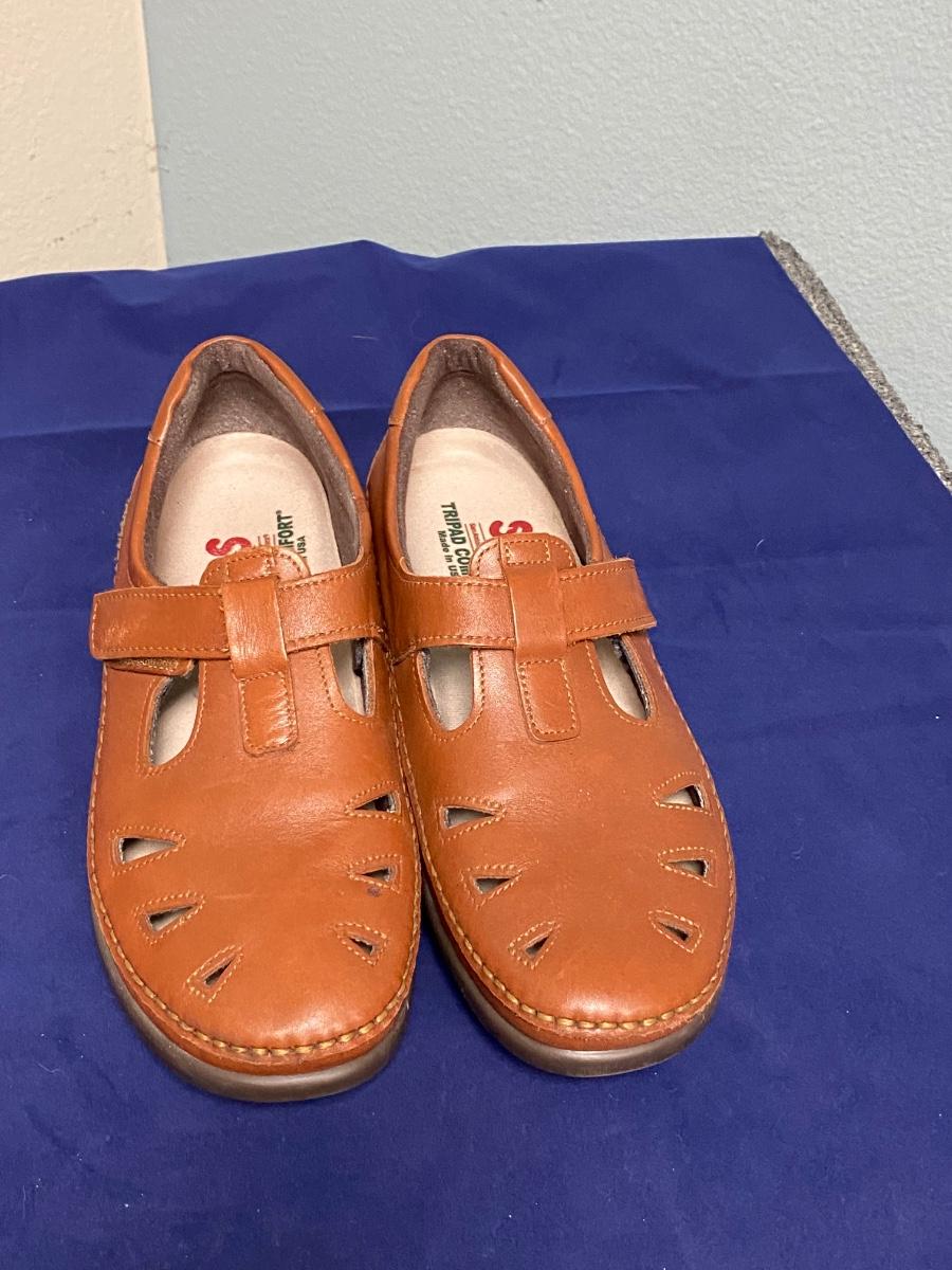 SAS Shoes Brown Leather Mary Jane Mule Shoes Velcro Closure 9.5. In good previously worn condition.