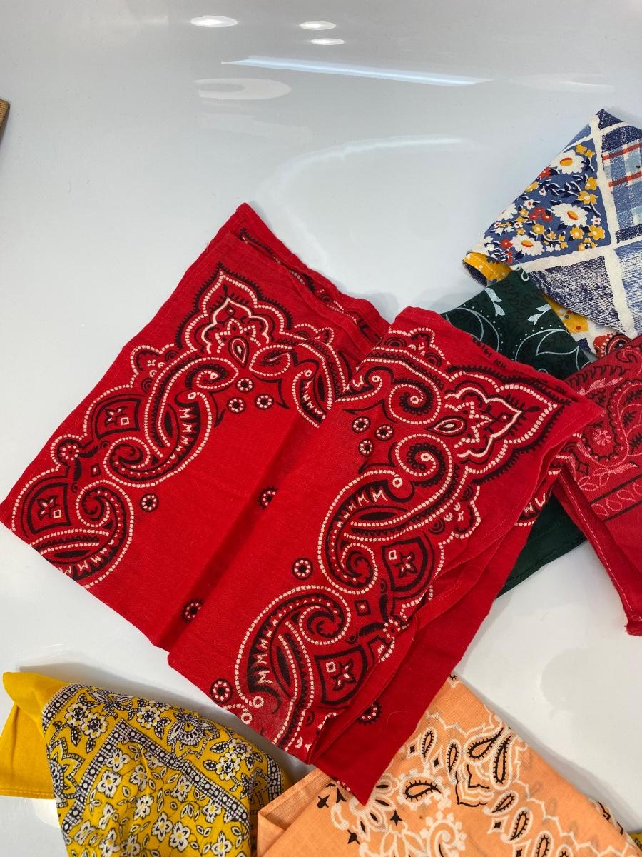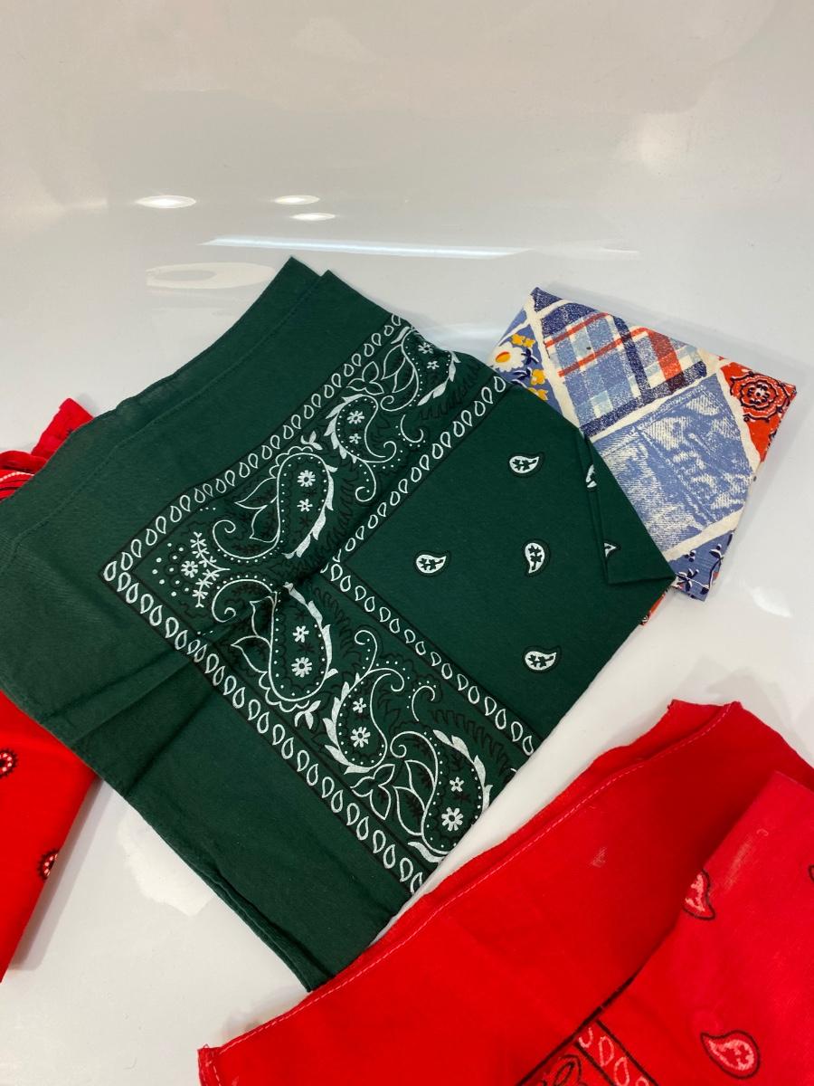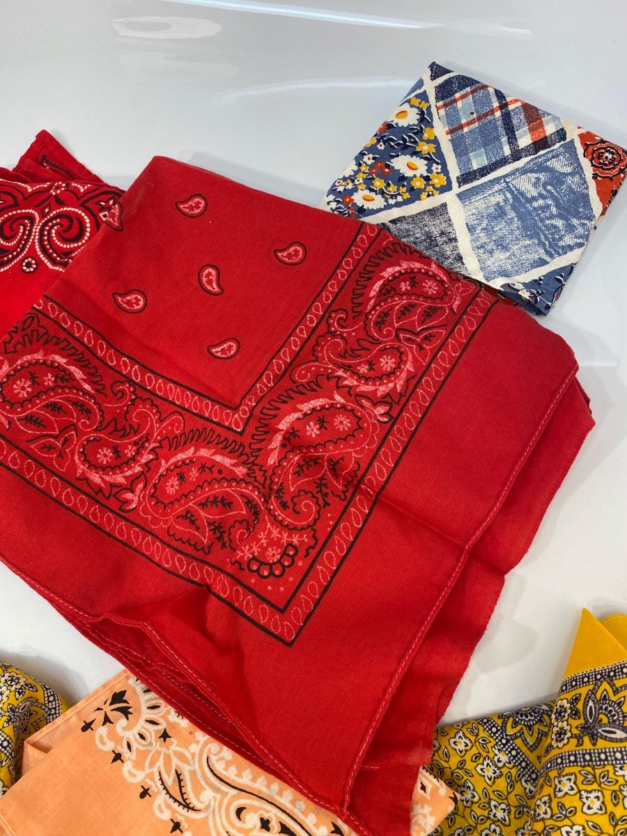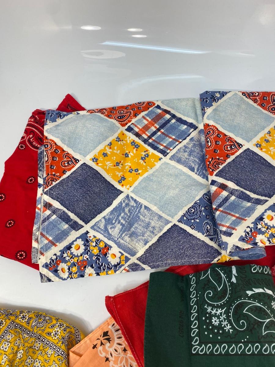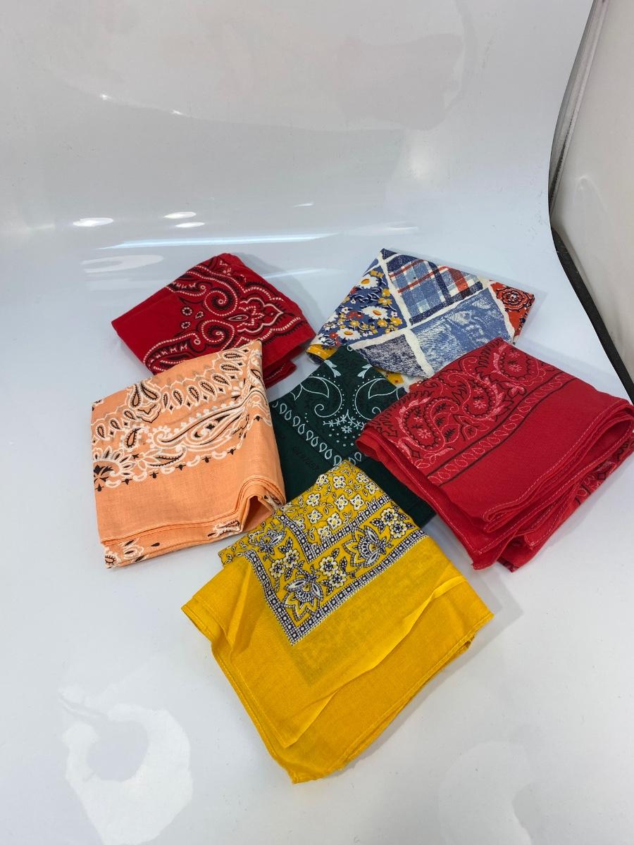 Lot of 6 Various Color Pattern Cotton Bandana Scarves. All in good condition.