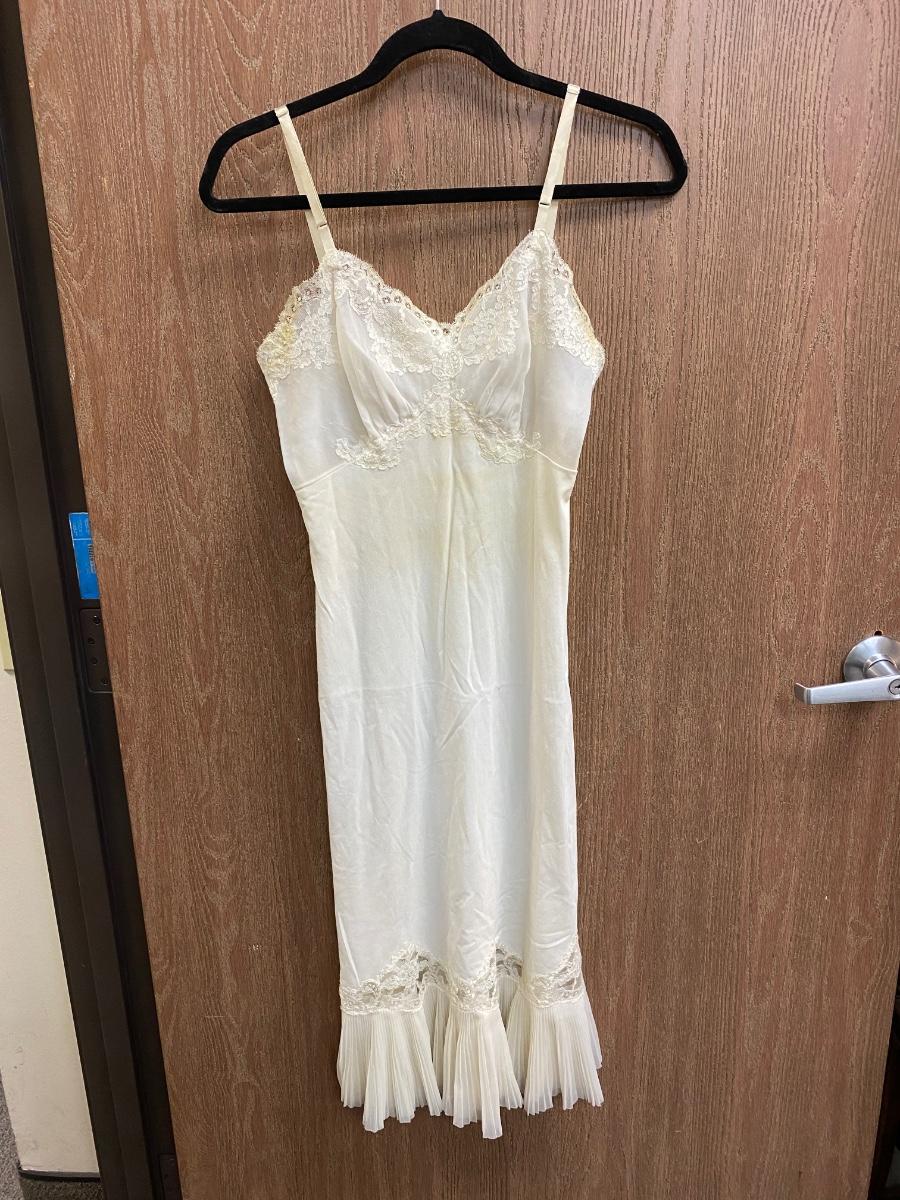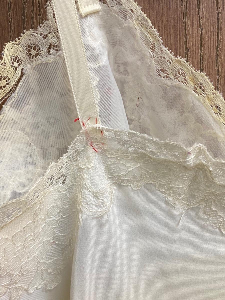 Vintage White Ivory Lace Trim Slip with Adjustable Straps