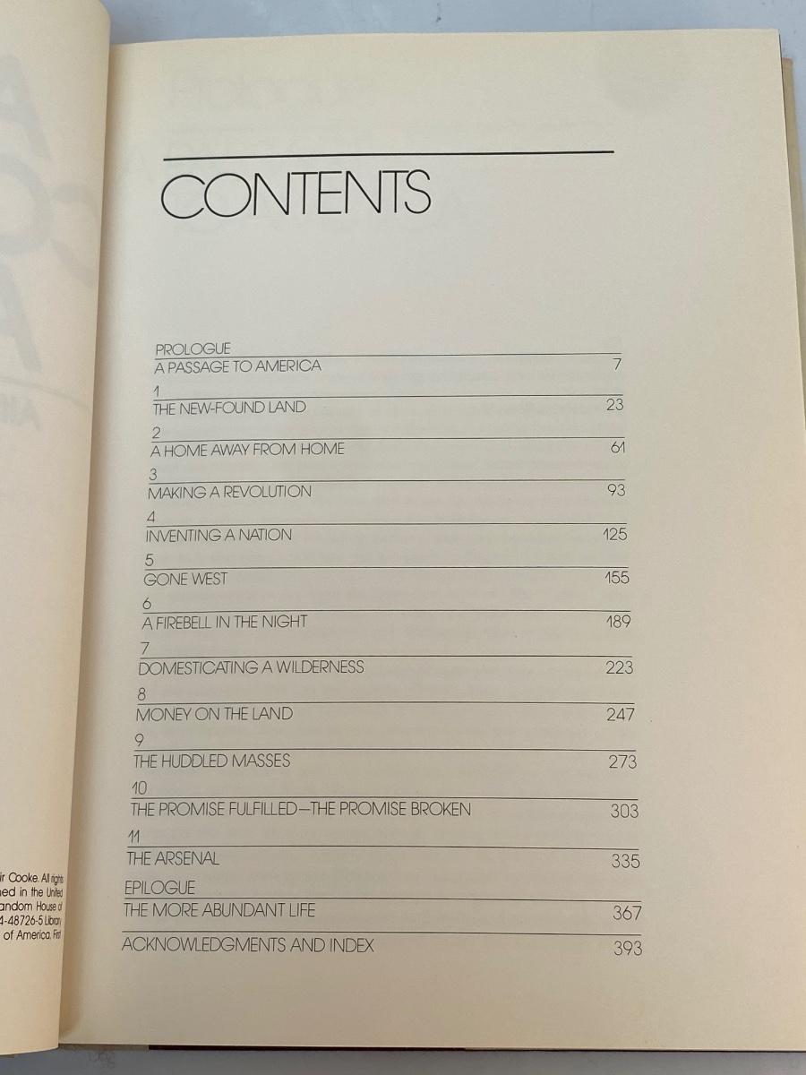 1973 Alistair Cooke's America Hardcover Coffee Table Book. Good condition. Some wear along the edges of dust jacket.