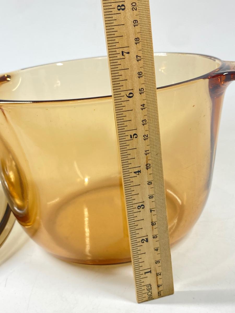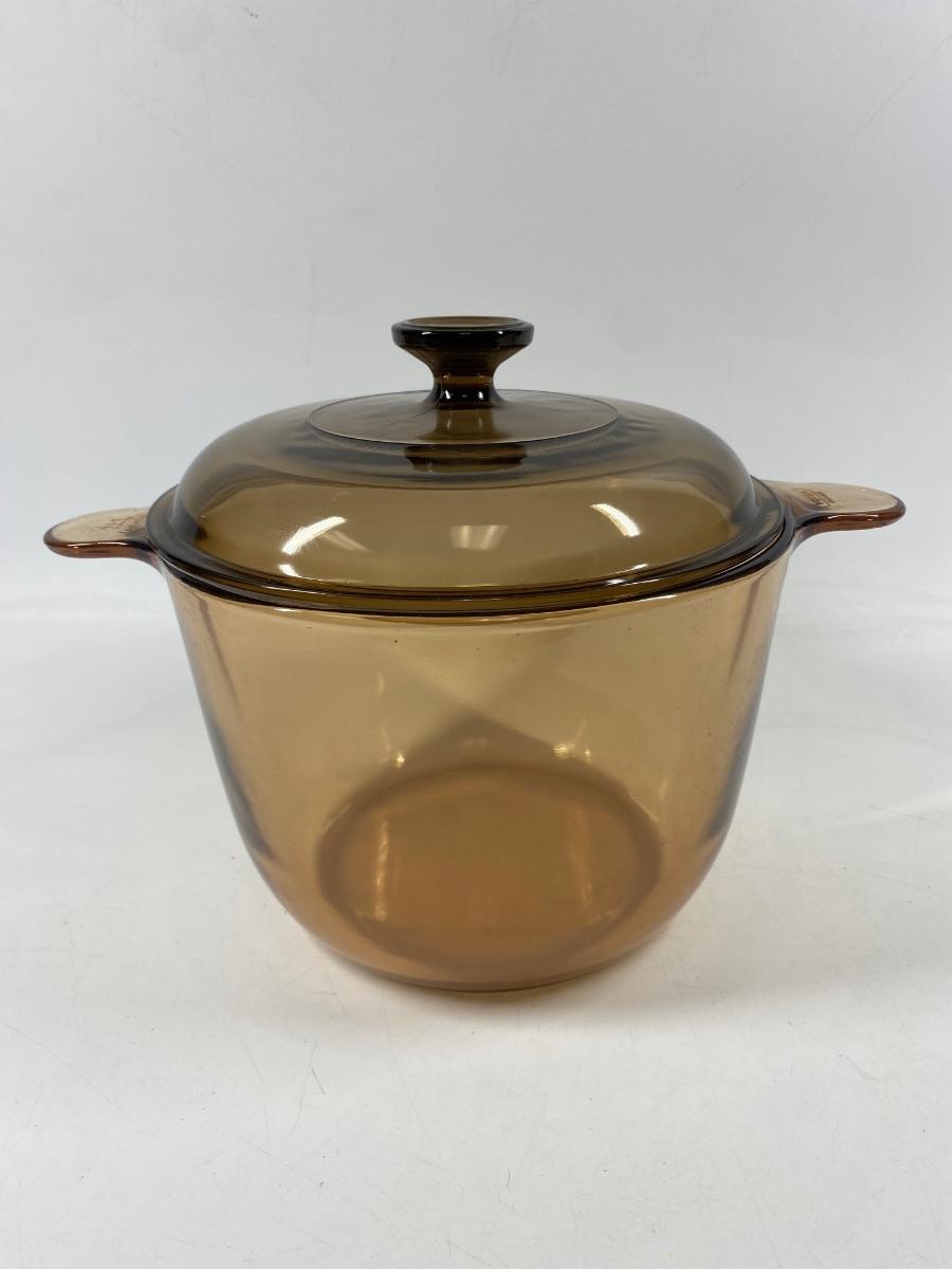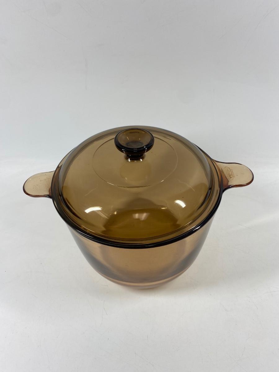 Corning Ware Vision Cookware Amber Brown Glass Stock Pot 3.5L. In good condition. No chips. Pot is 6" tall without lid.