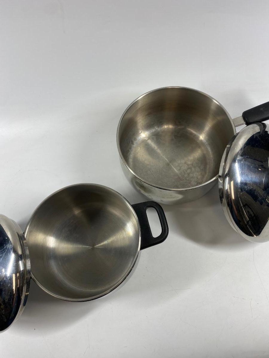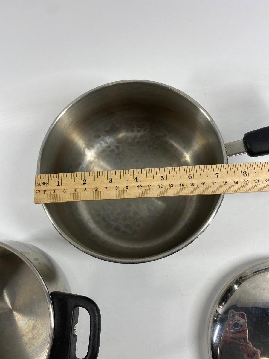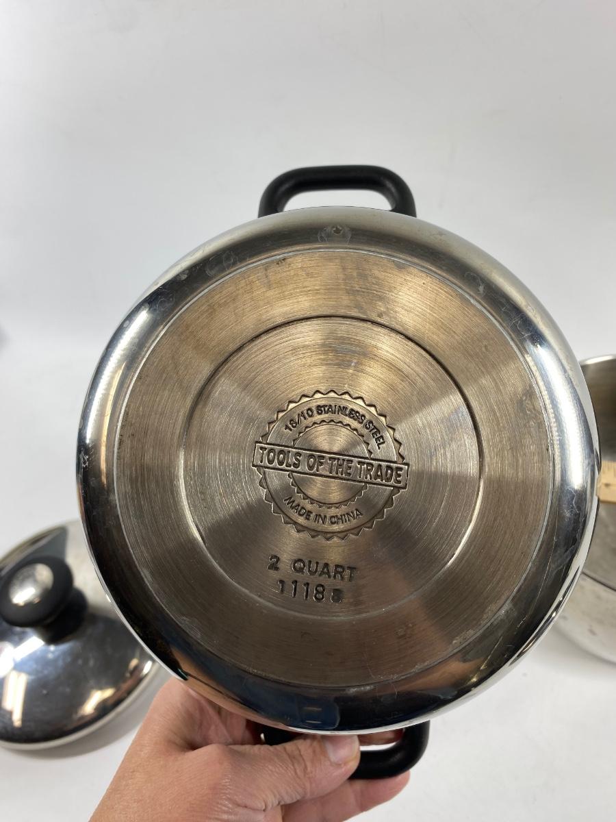 Tools of the Trade 18/10 Stainless Steel 2qt 3qt Saucepan Pot with Lids. In good used condition. Light signs of use.