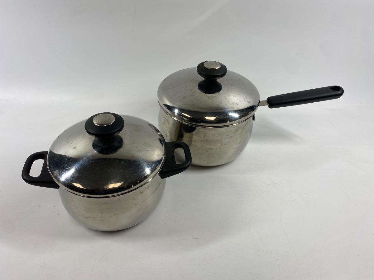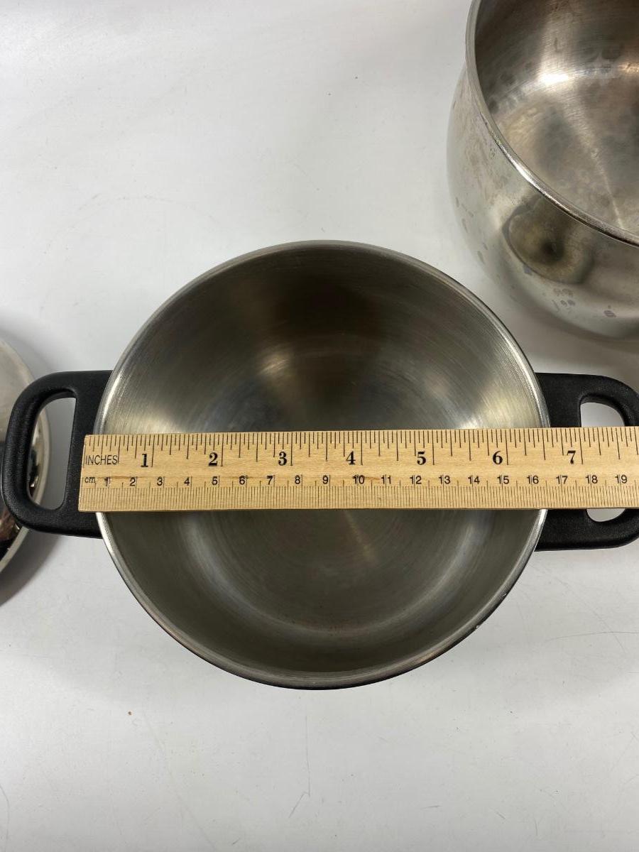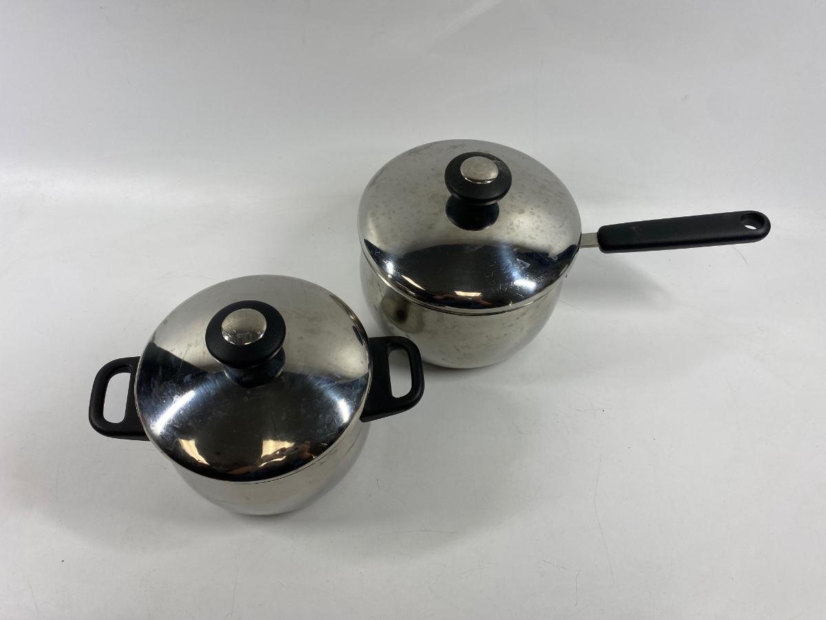 Tools of the Trade 18/10 Stainless Steel 2qt 3qt Saucepan Pot with Lids. In good used condition. Light signs of use.