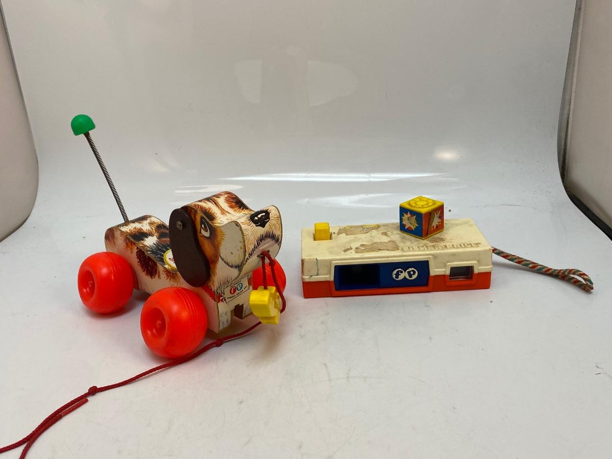 Vintage Fisher Price Preschool Kids Childrens Little Snoopy Pull Along & Trip to the Zoo Camera