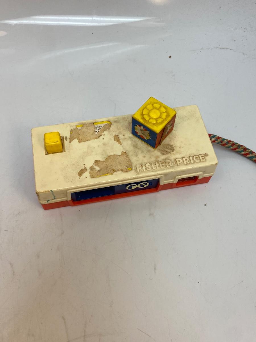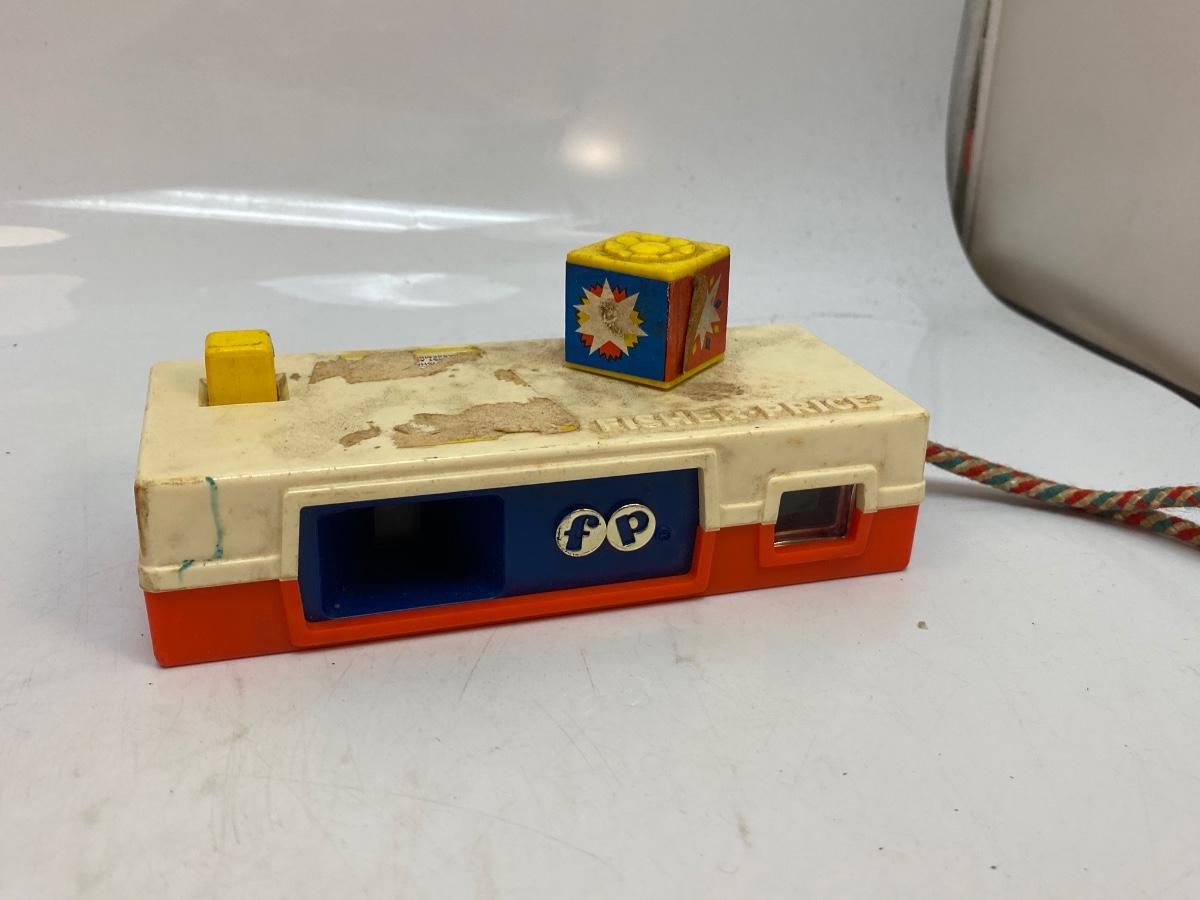 Vintage Fisher Price Preschool Kids Childrens Little Snoopy Pull Along & Camera. Little snoopy is in good condition, camera has obvious signs of use, needs to be cleaned.