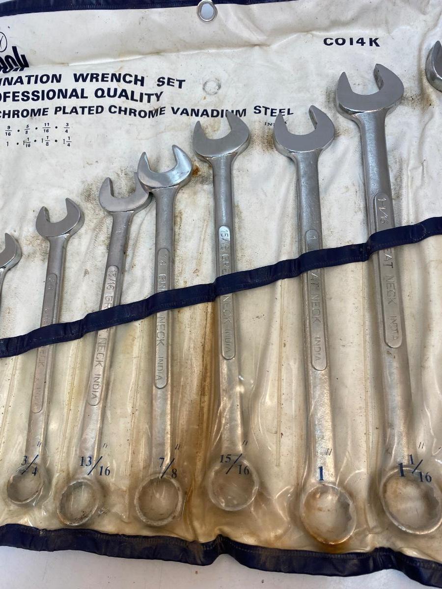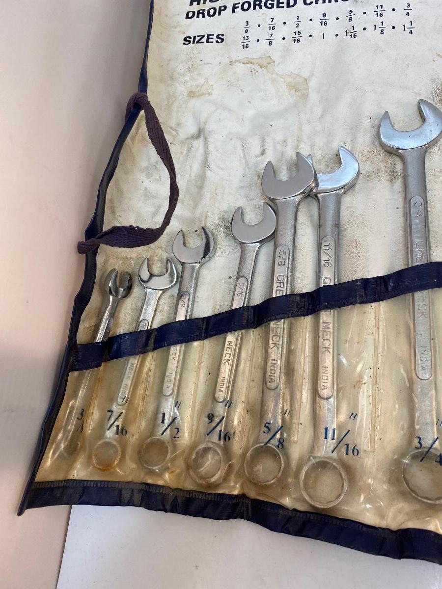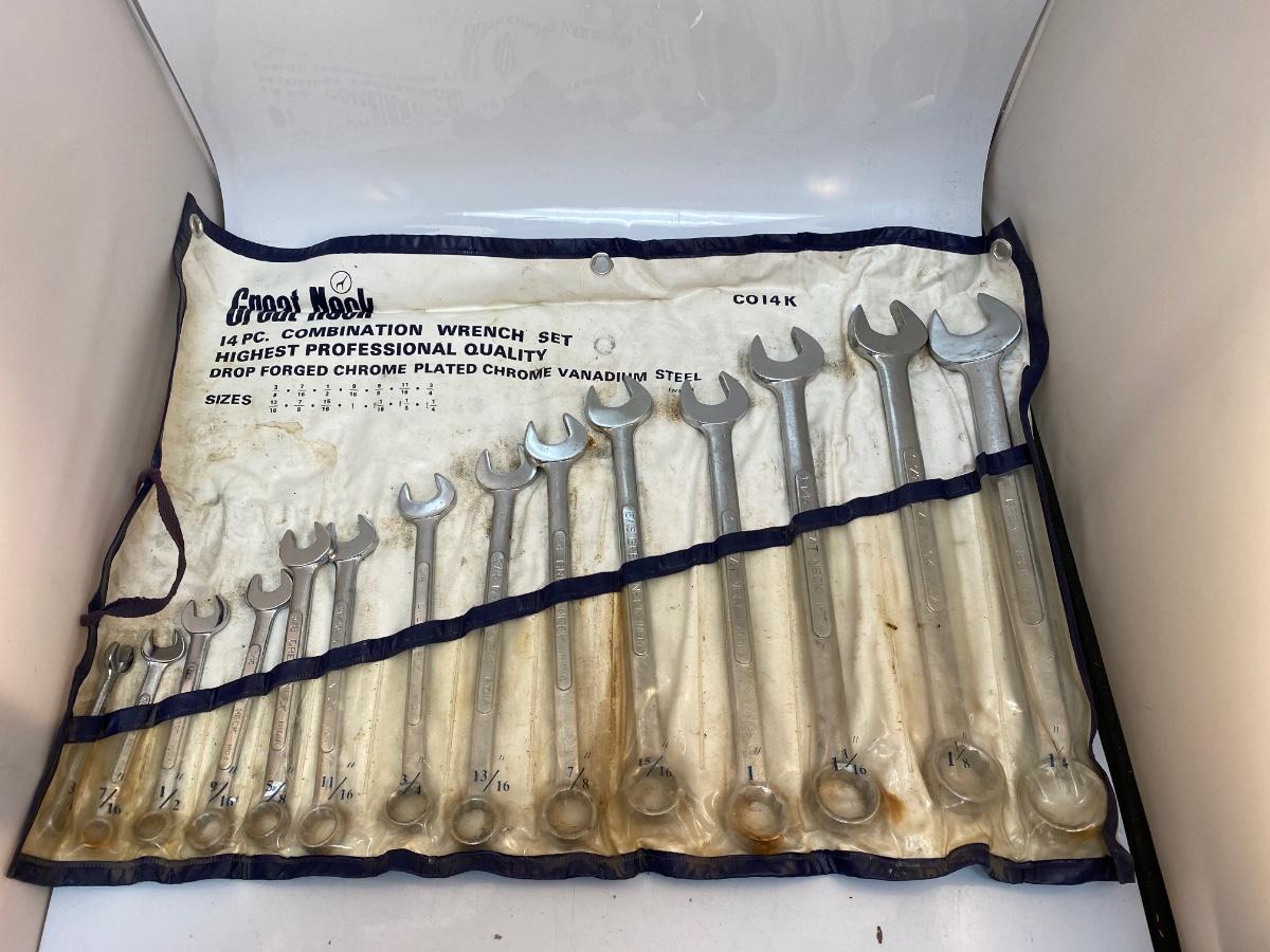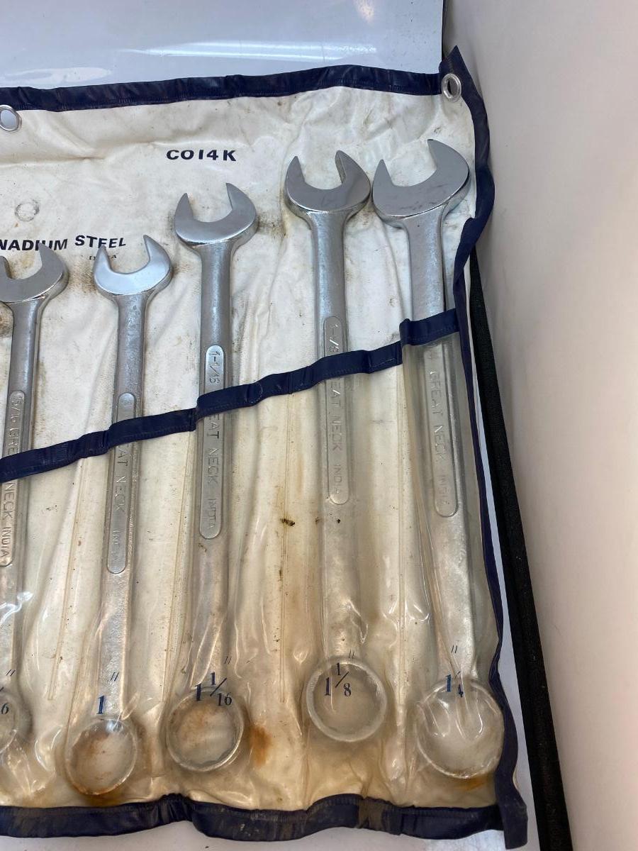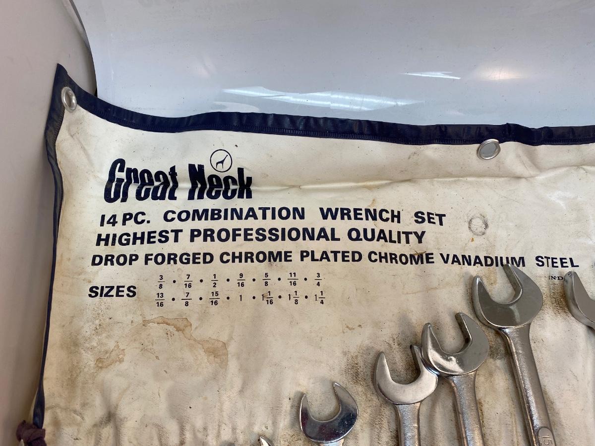 14 Piece Combination Wrench Set Great Neck Pro Quality Open & Closed Standard with Roll Up Storage Pouch. In good condition. Storage pouch is a little dirty from garage use.