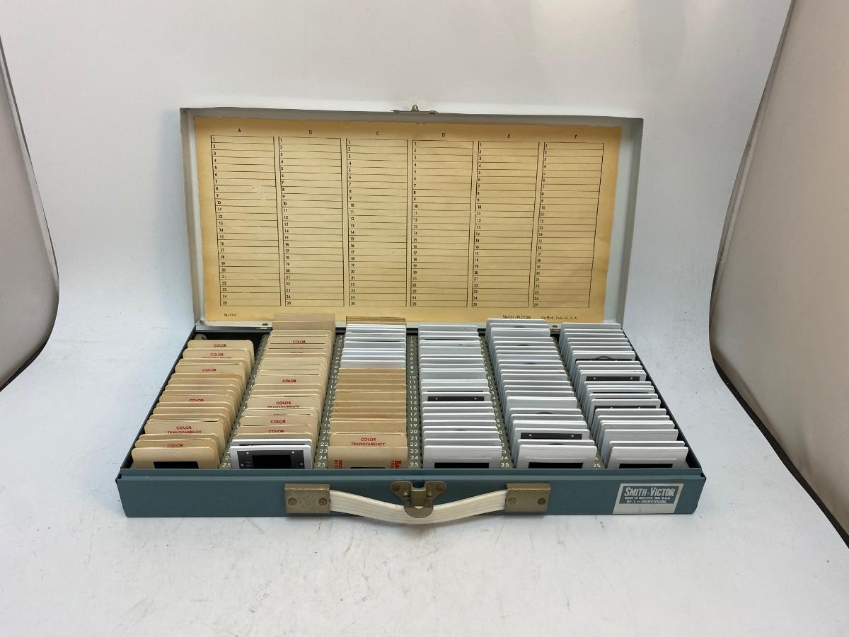 Vintage Metal Slide Holder Case with Color Slides 1960s 1970s Cool Cars Germany Halloween Party. Some great slides included.