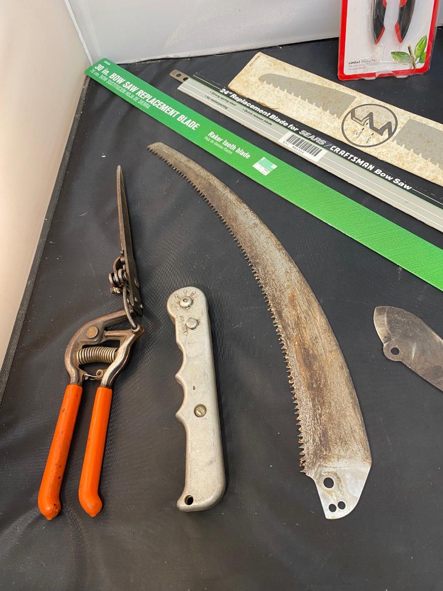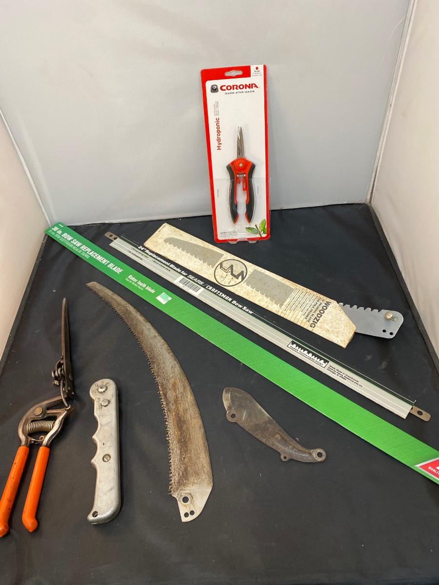 Mixed Lot of Gardening Scissors Branch Cutters and Saw Blades. Some new, some used. See photos.