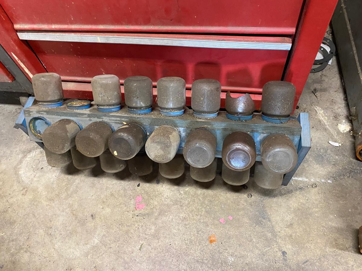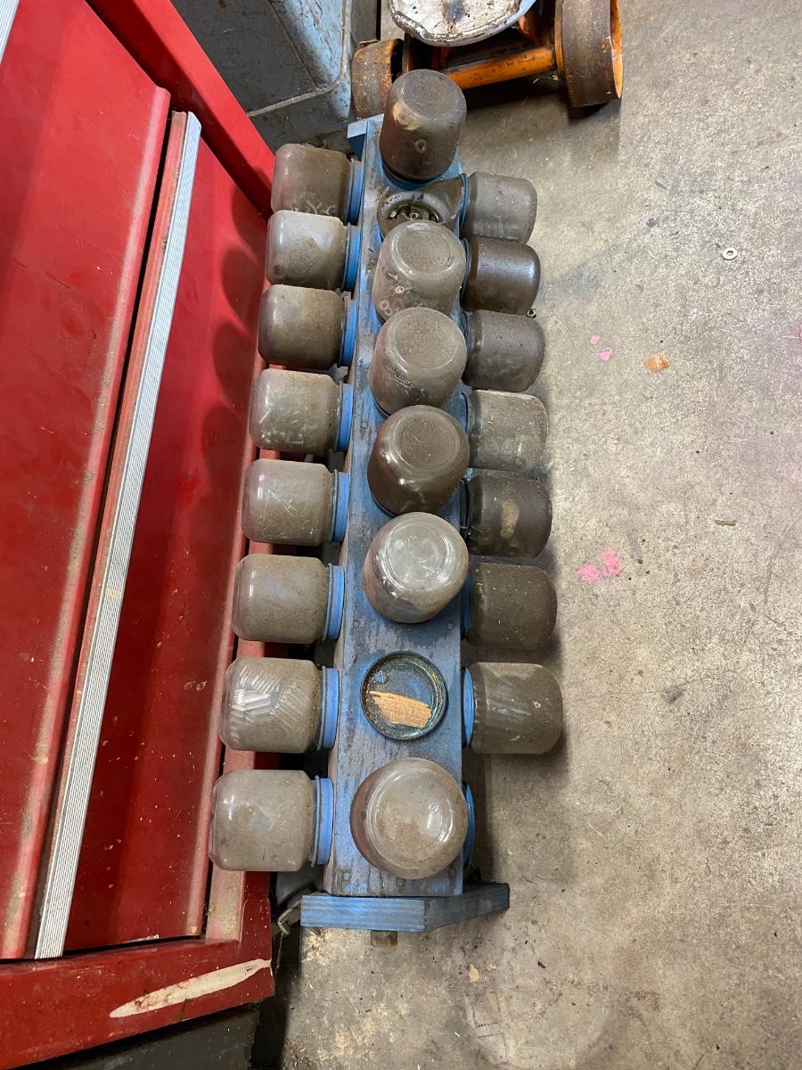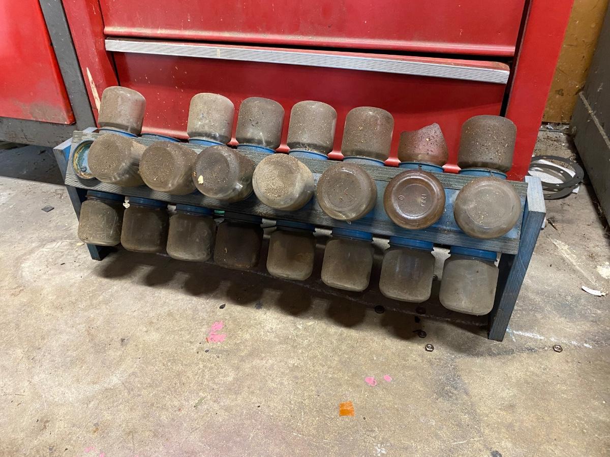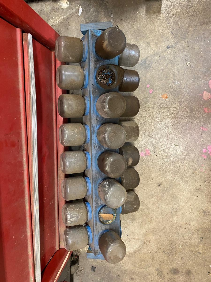Vintage Handmade Rotating Hardware Organizer Baby Food Jar Design. In vintage condition. Dirty from years in garage. A couple broken or missing jars. Most jars contain hardware of some kind. PICK UP IN CYPRESS 6/3.