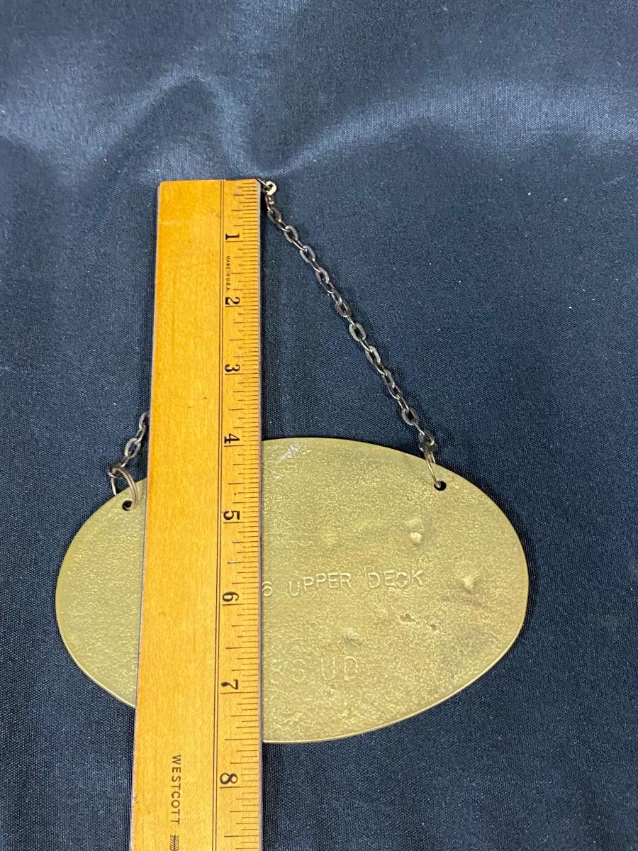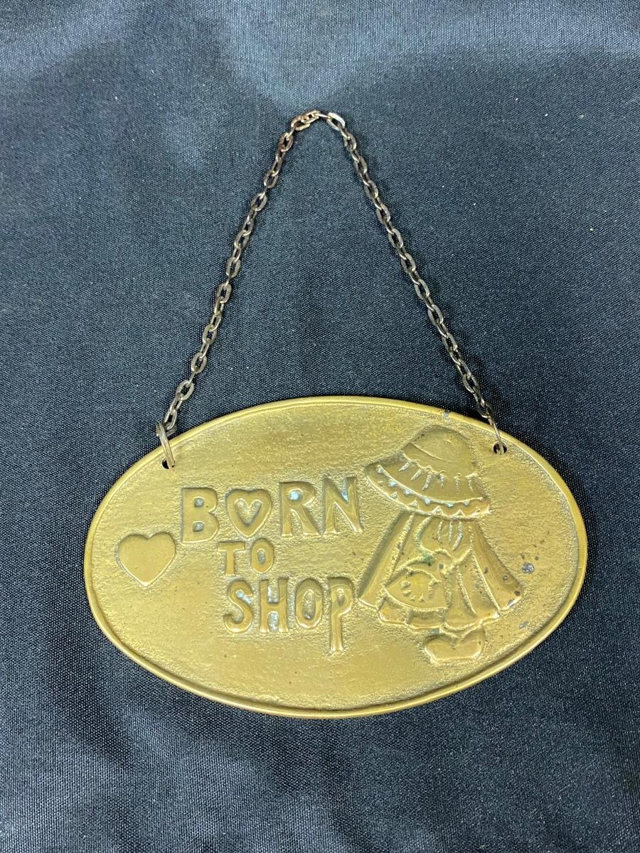 Small Brass Born to Shop Wall Hanging Plaque 1986