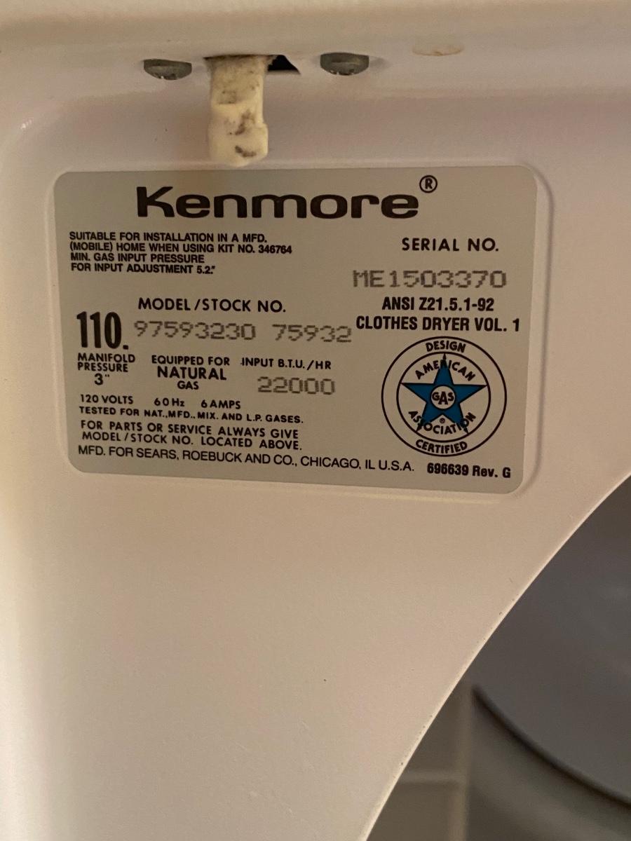 Kenmore Gas Dryer and Washing Machine Pair Ultra Fabric Care Series. In good used condition.