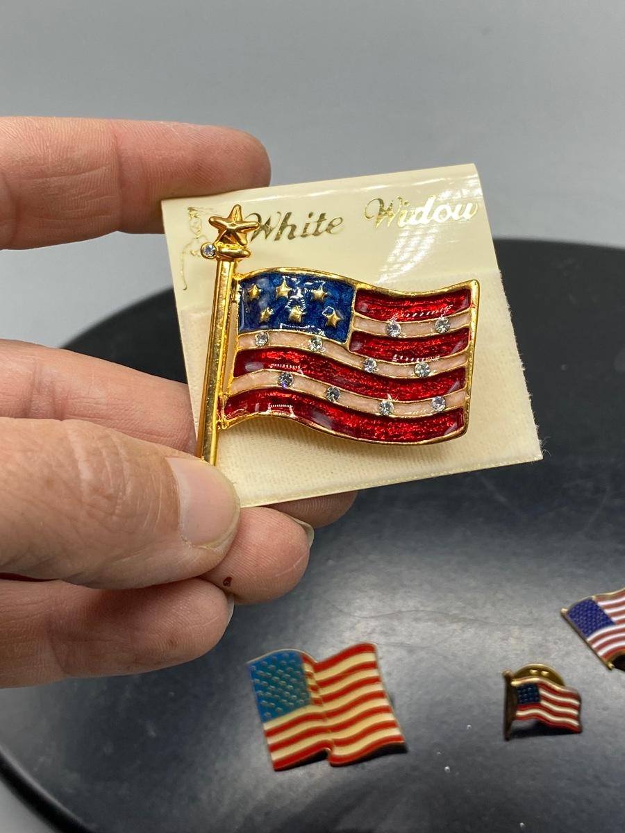 Mixed Lot of Various Patriotic American Flag Pins. Various sizes in good condition.