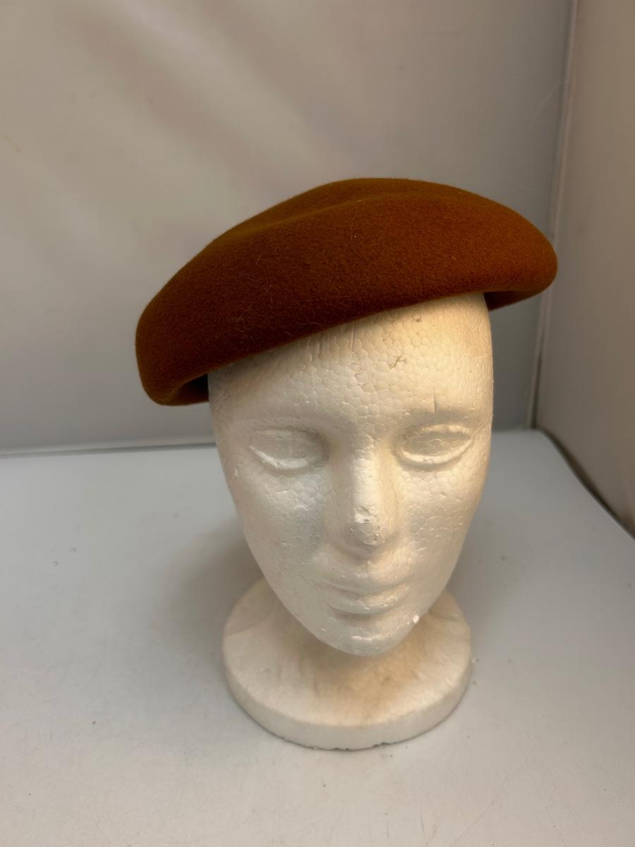 Vintage Rusty Brown Wool Beret Hat Cap. In good condition, partial label inside.