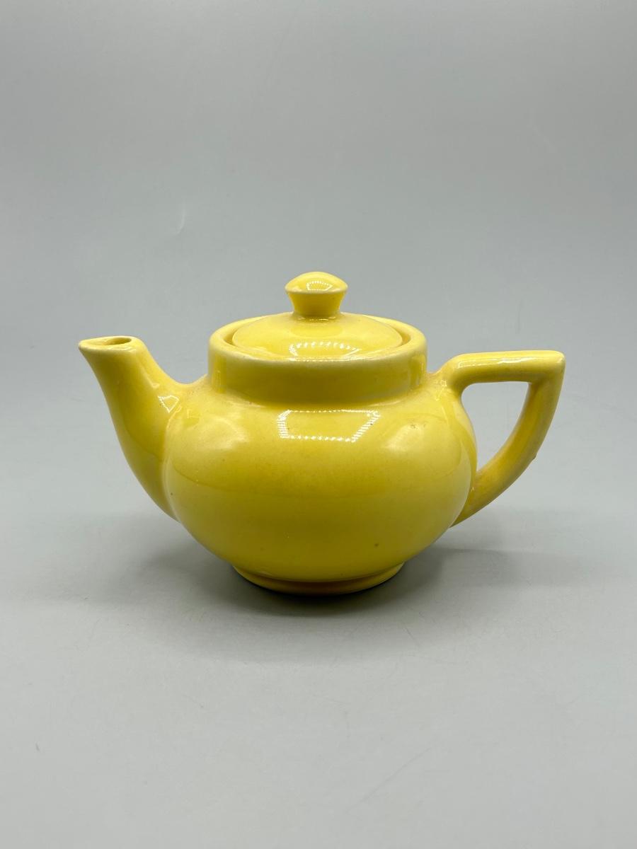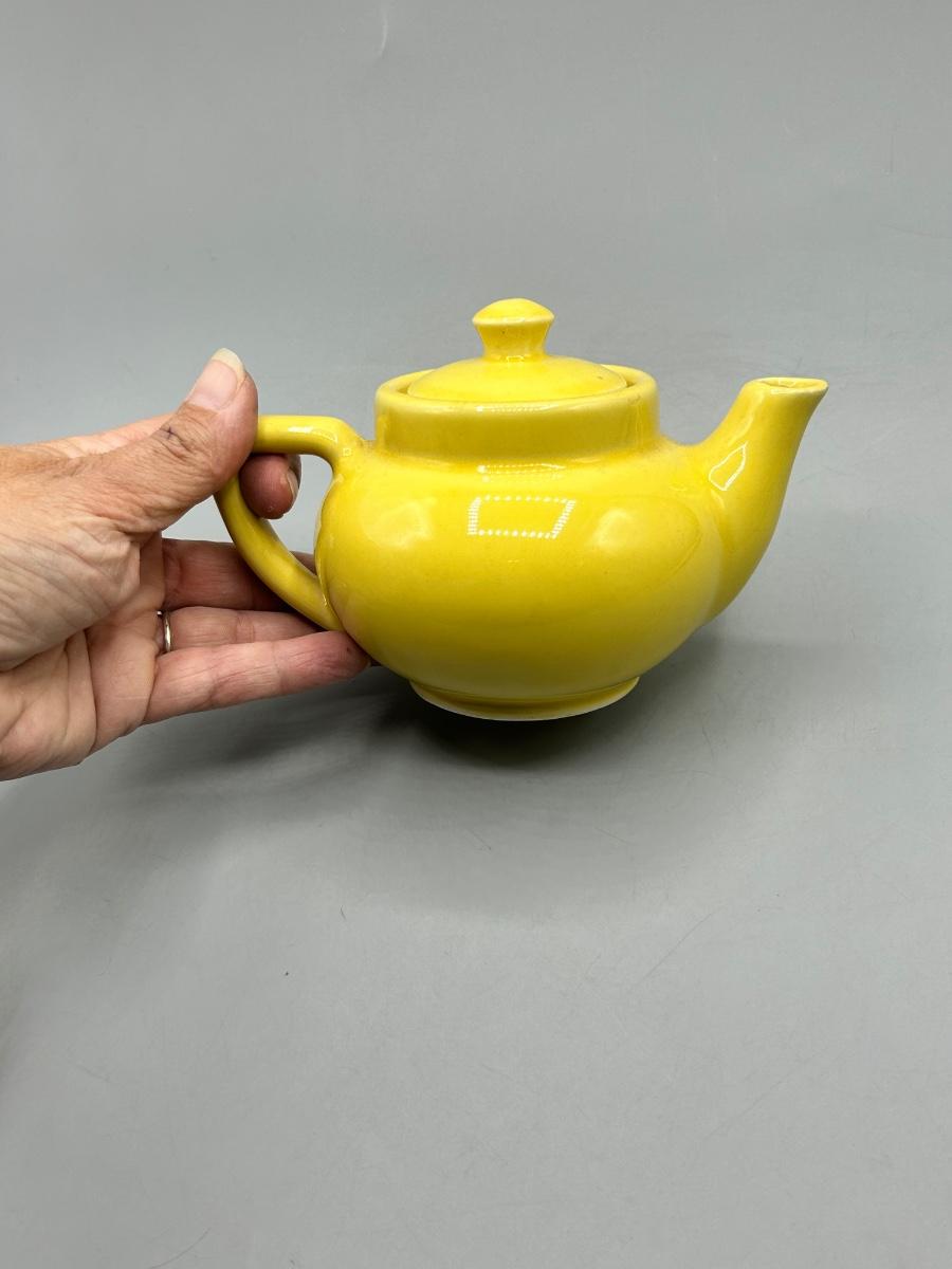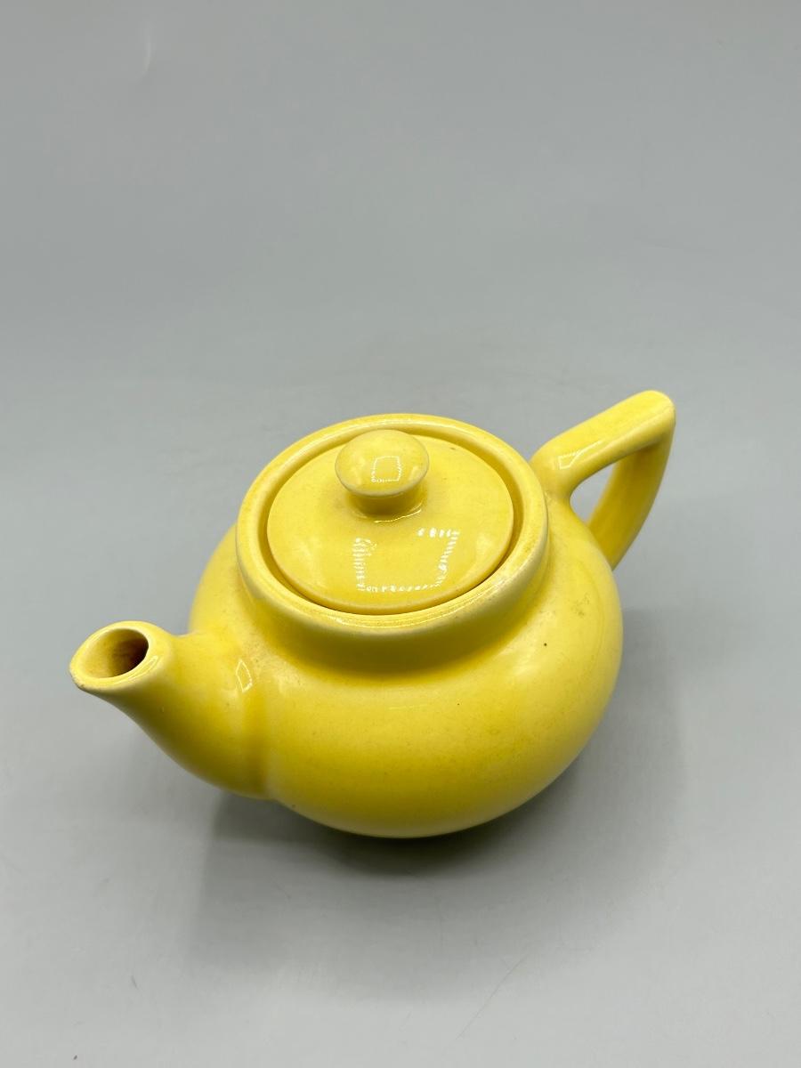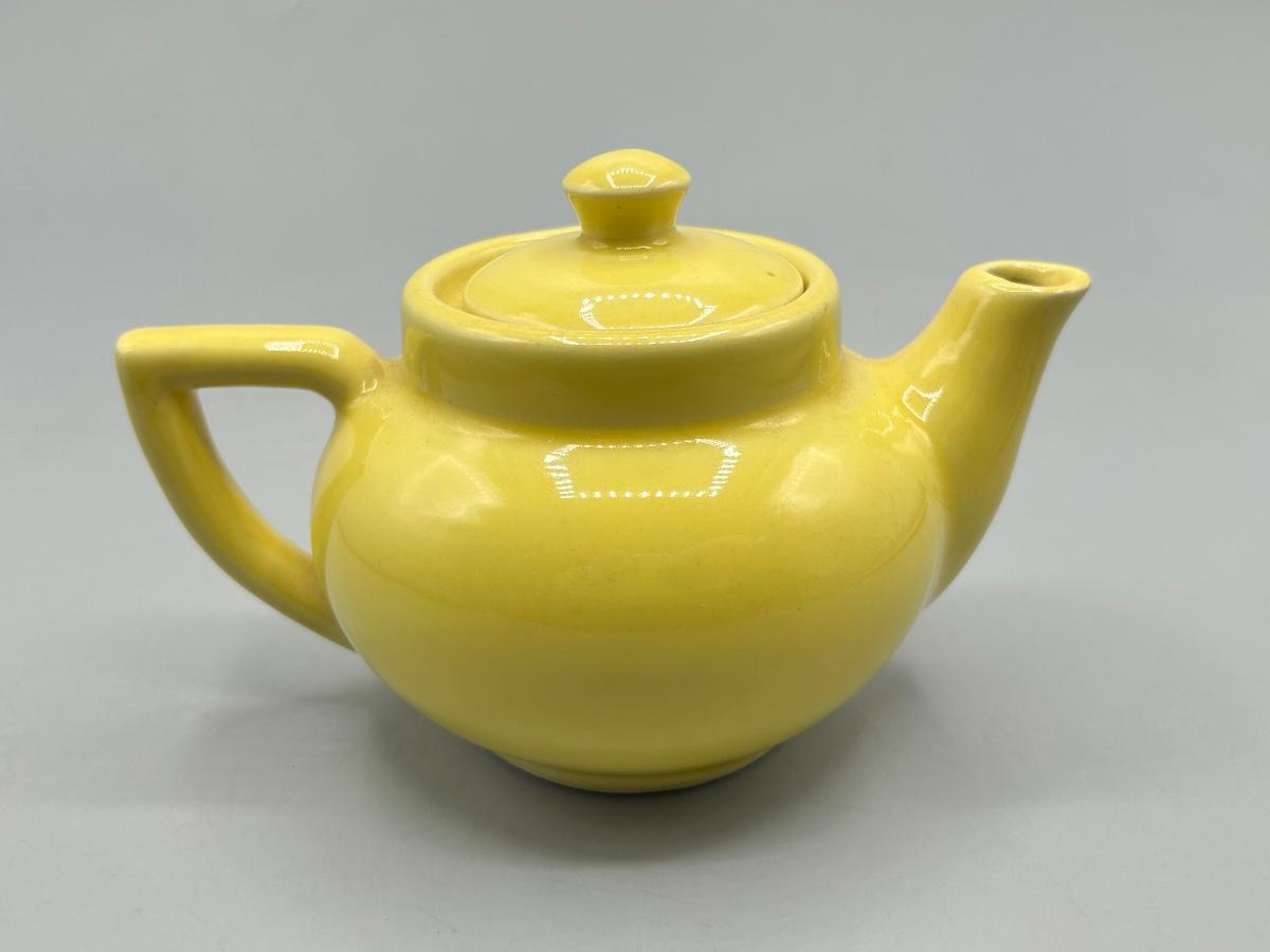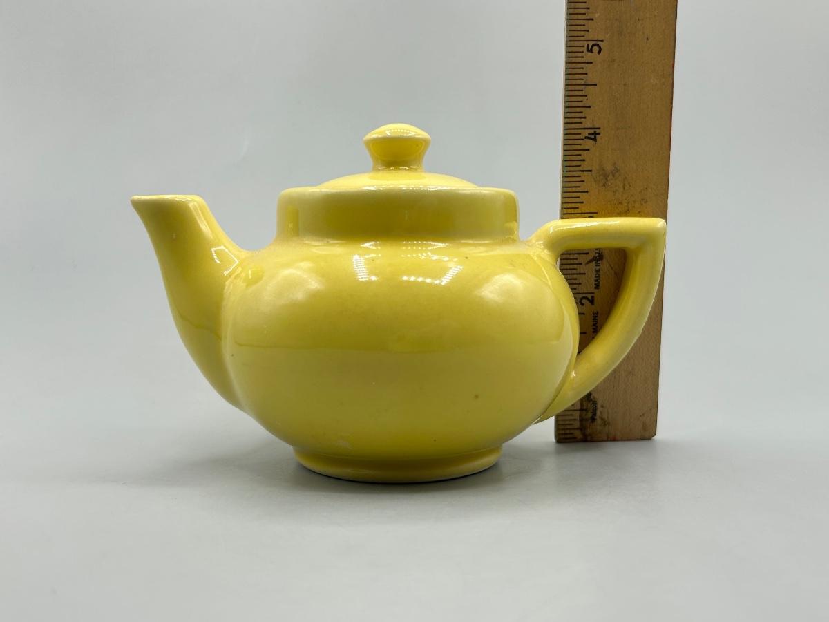Small Personal Sized Sunshine Yellow Ceramic Pottery Teapot USA. In good condition. About 4" tall. No chips or crazing noticed.