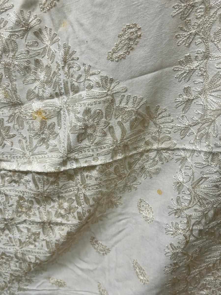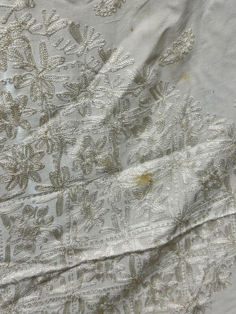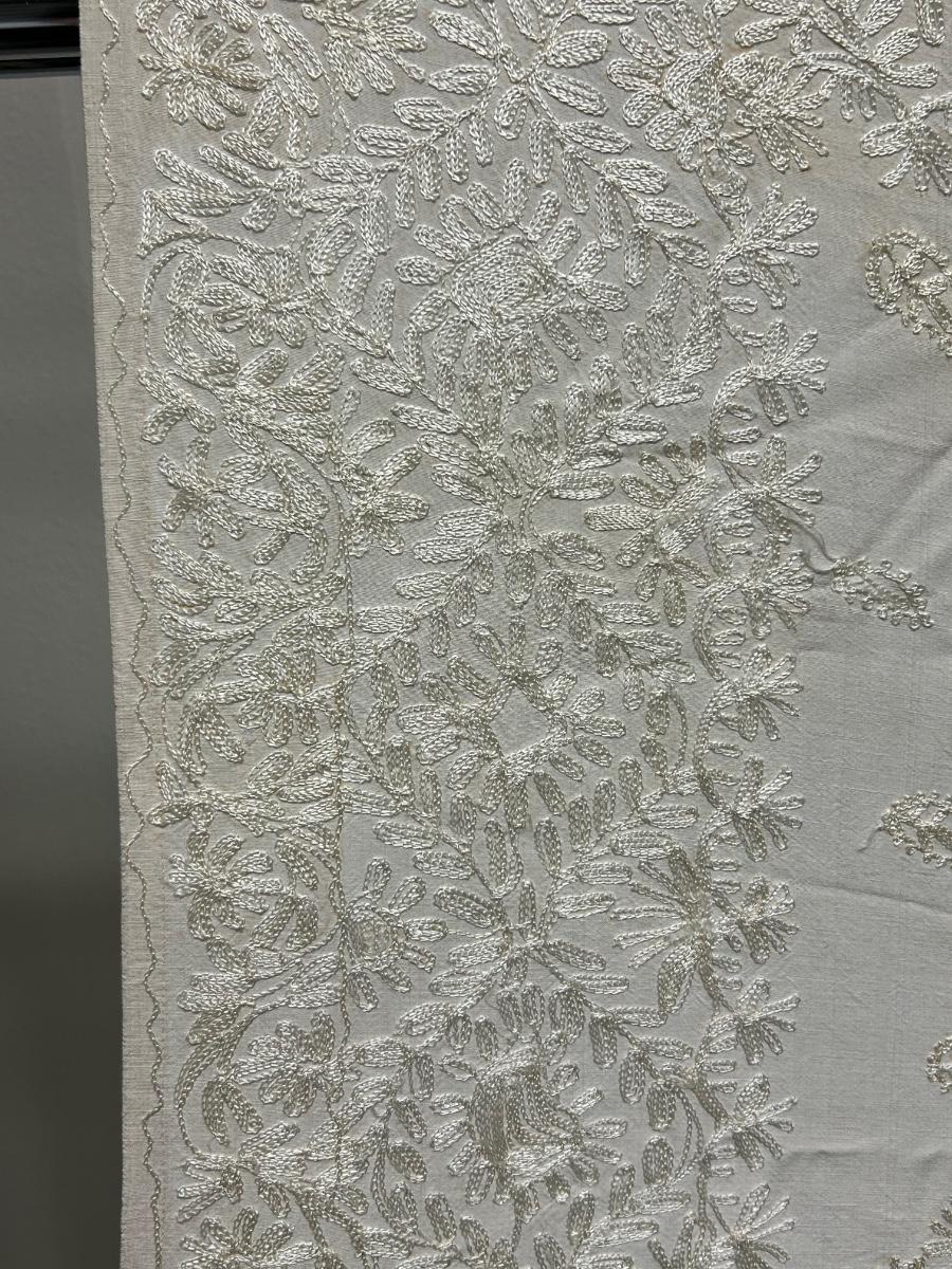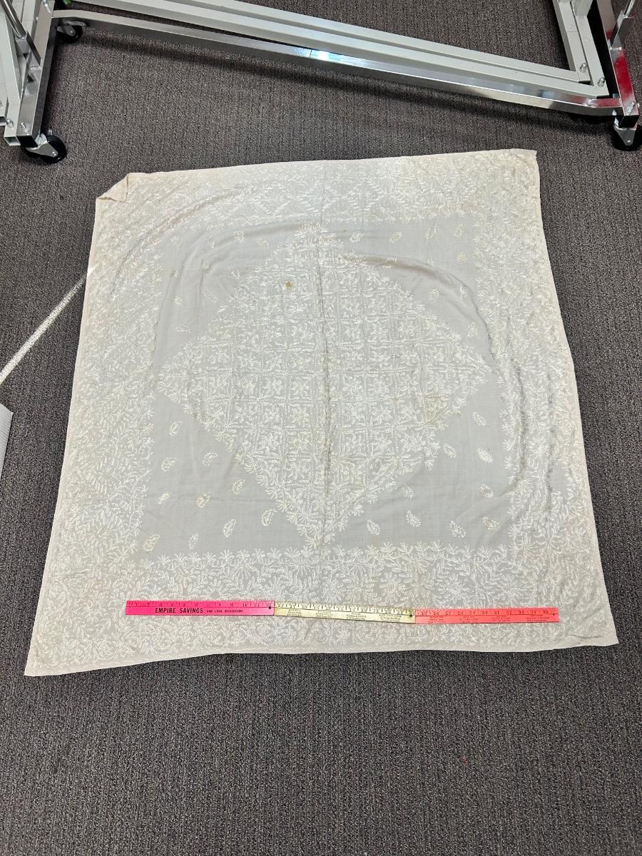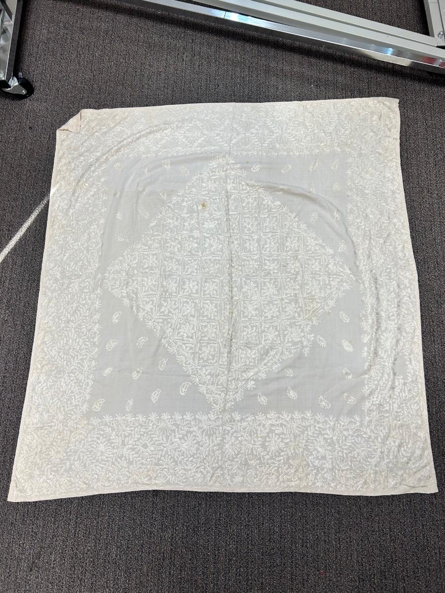 Vintage White on White Heavy Embroidered Tablecloth. In good vintage condition, some faint spots of discolor.