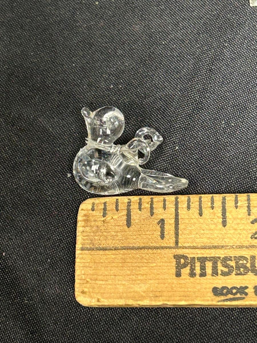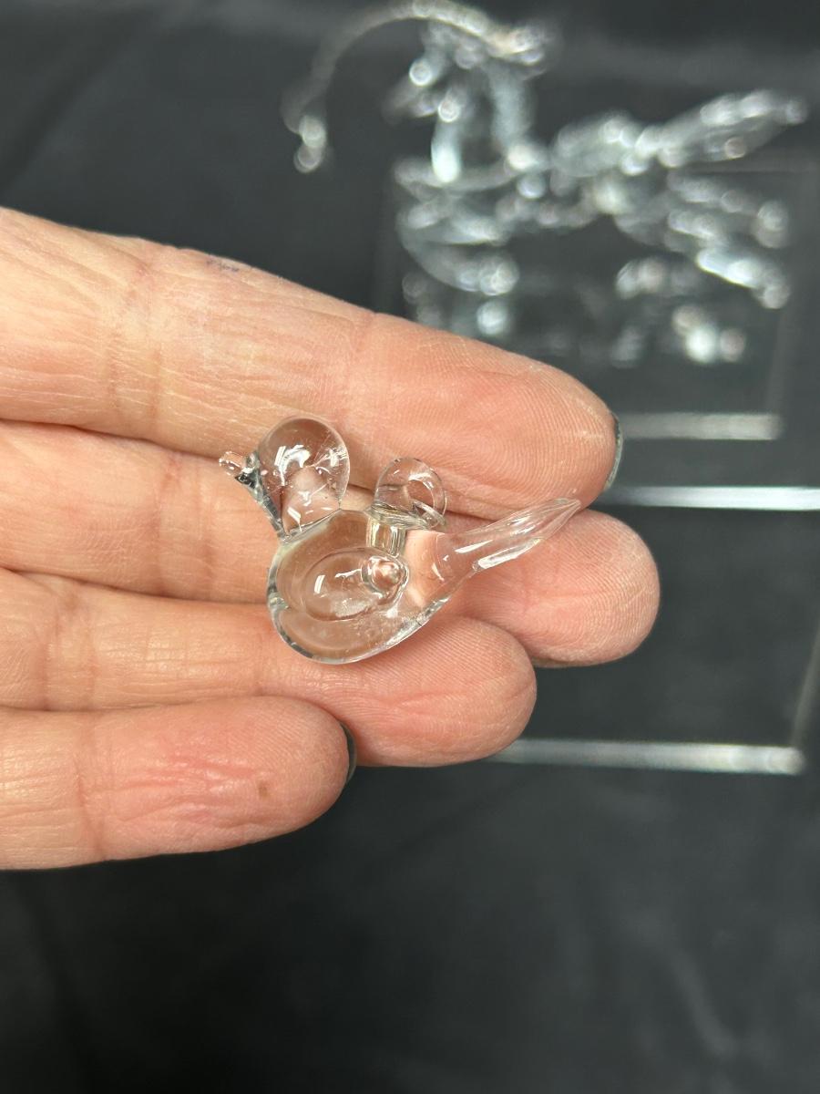 Pair of Blown Glass Hanging Figurine Ornaments Deer and Horse. In good condition. There is a glass loop attached to the string bird is on, may have been a pair of turtle doves at one time. Both figurines are free from chips.