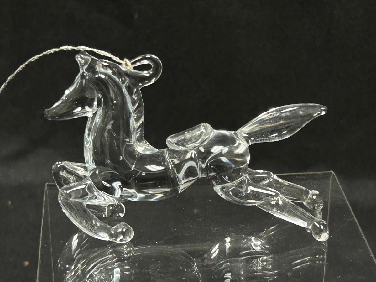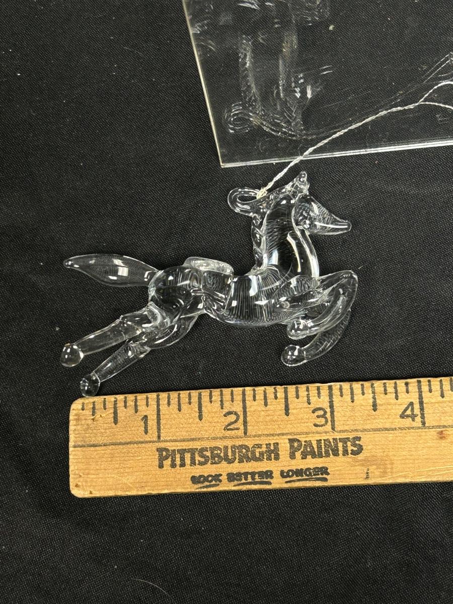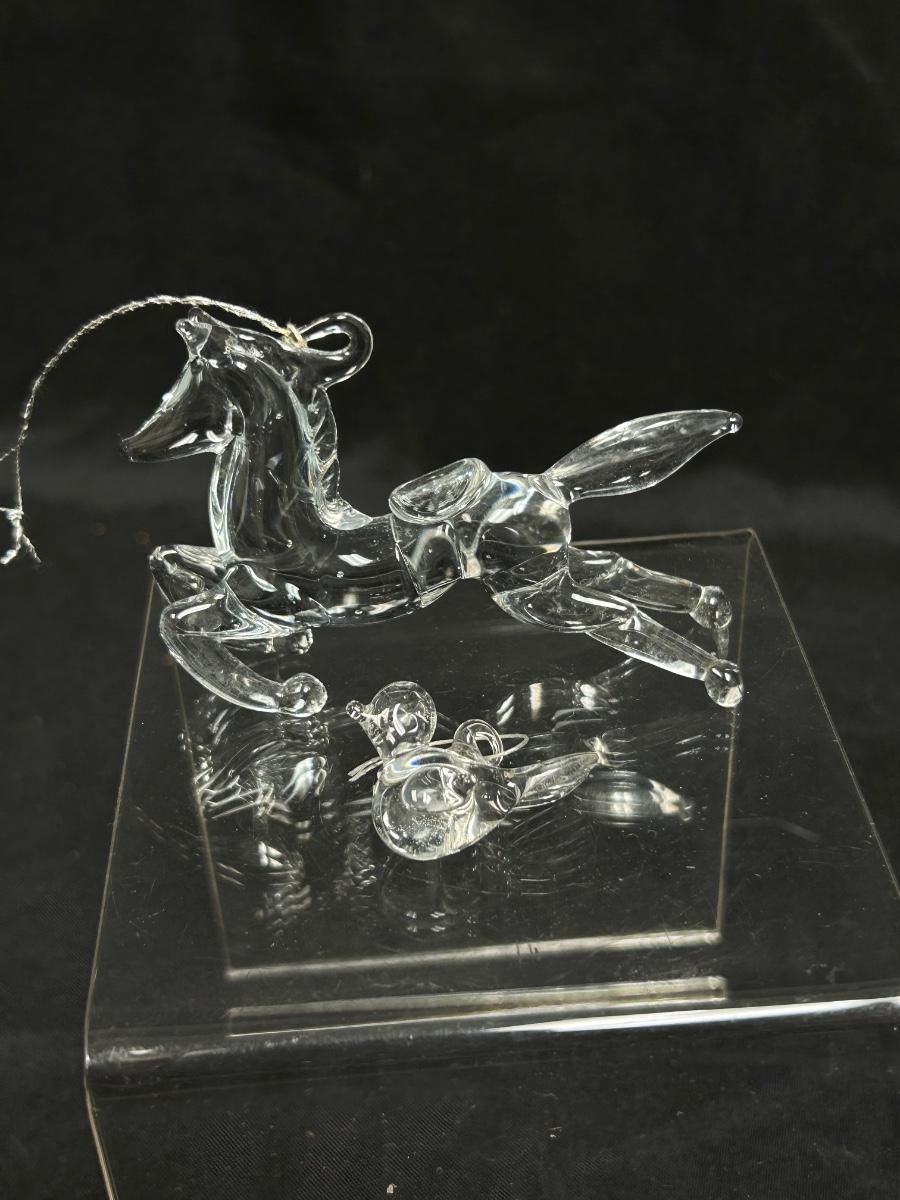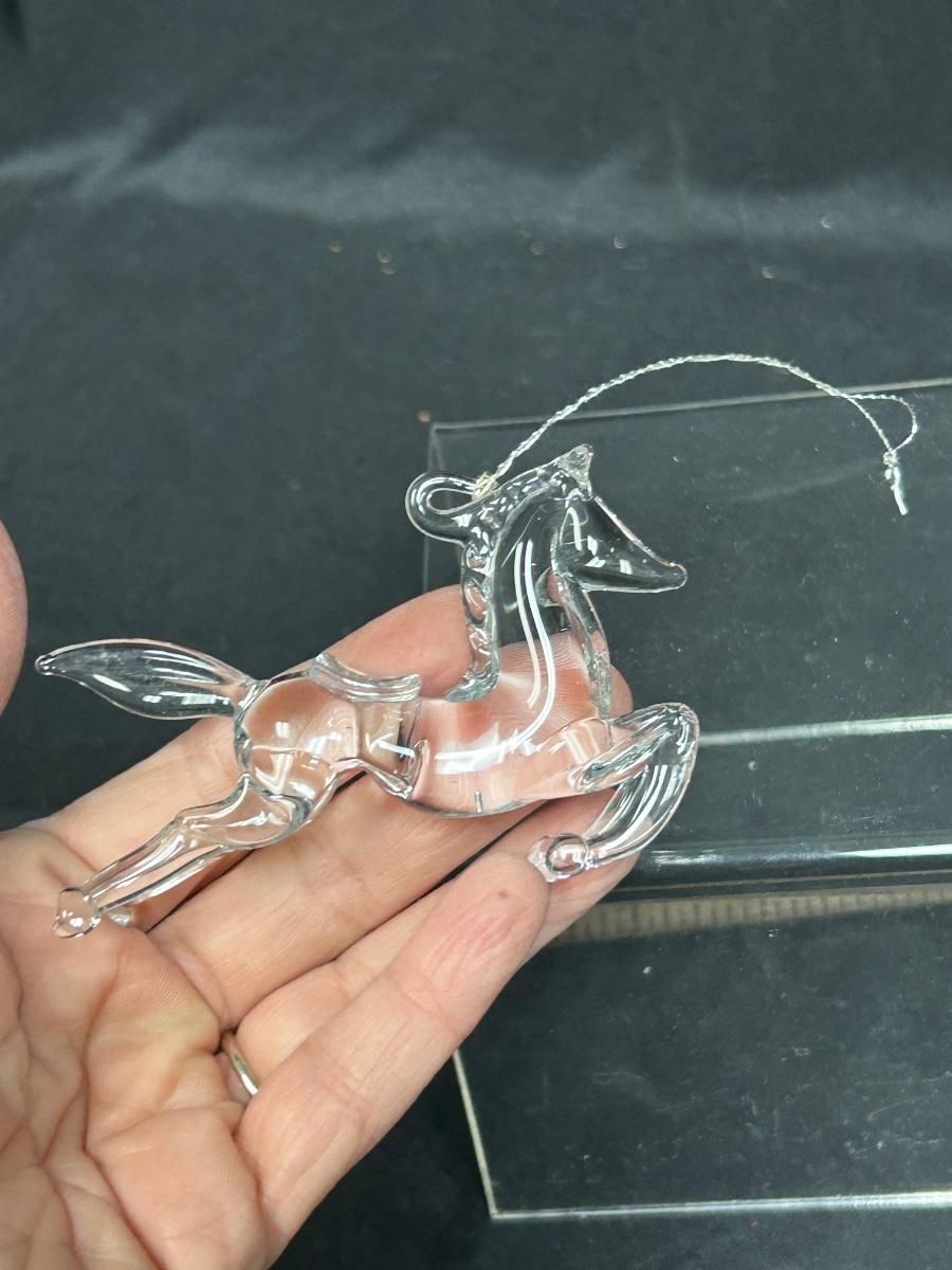 Pair of Blown Glass Hanging Figurine Ornaments Deer and Horse