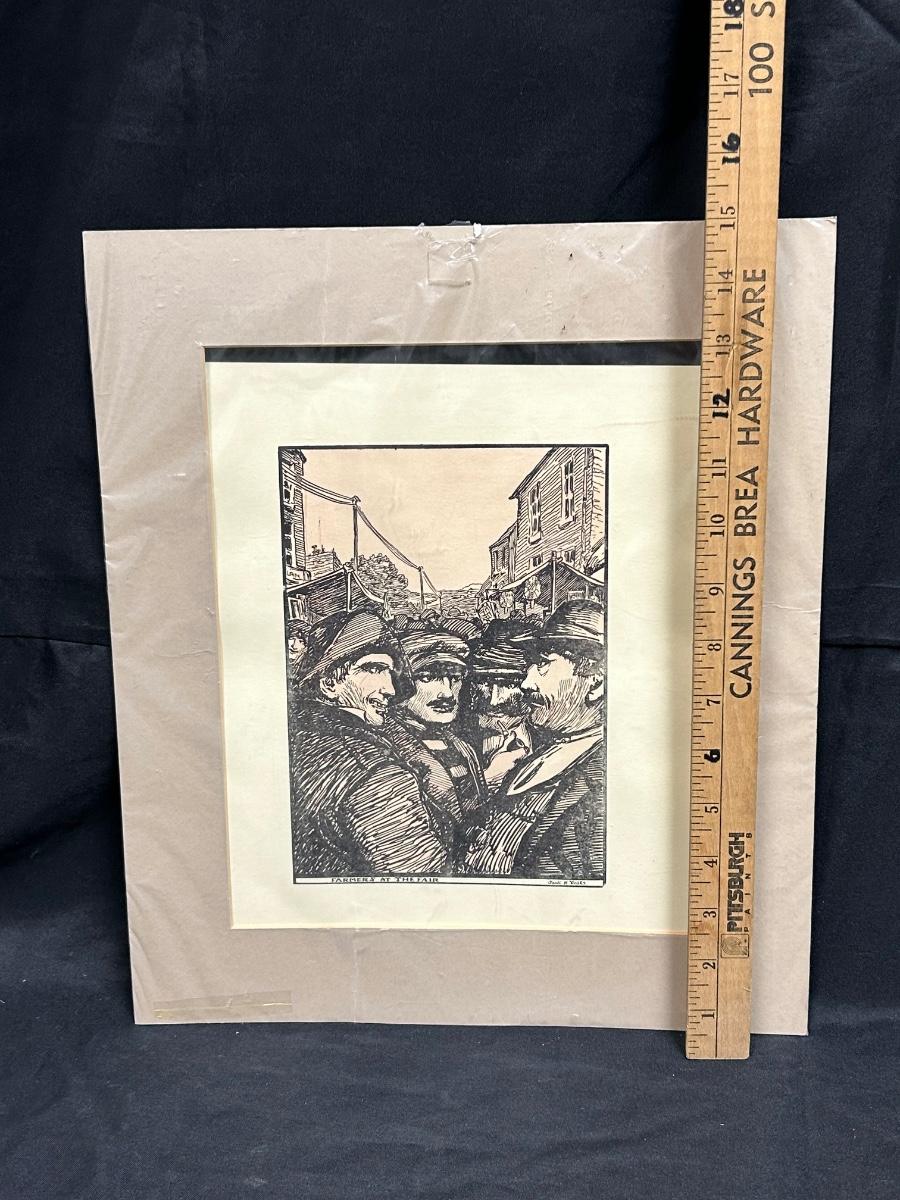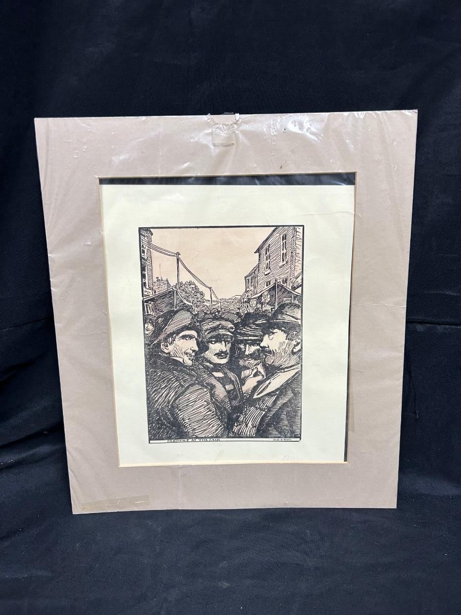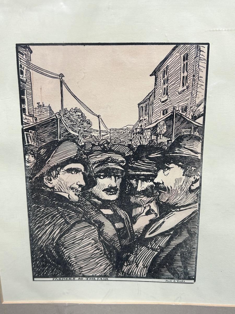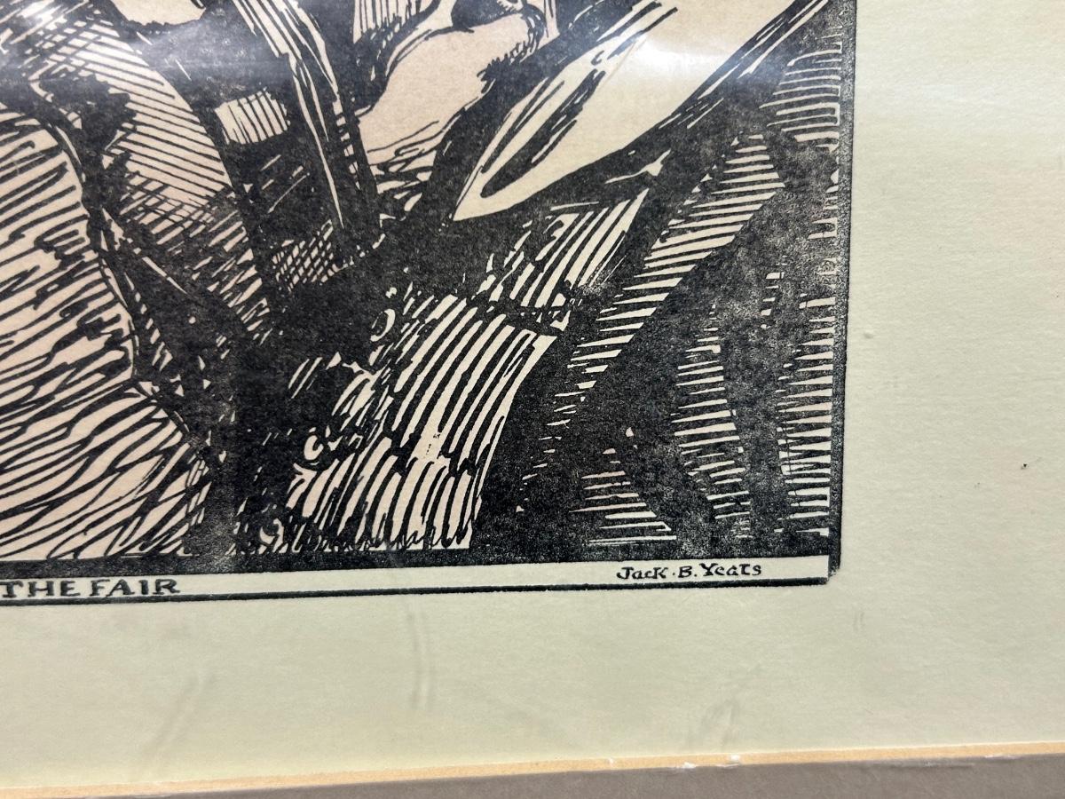 Vintage Jack B Yeats Farmers at the Fair Block Print Etching Unframed Art
