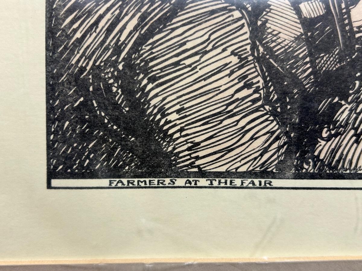 Vintage Jack B Yeats Farmers at the Fair Block Print Etching Unframed Art. In good condition. Covered with plastic wrap, needs to be framed.
