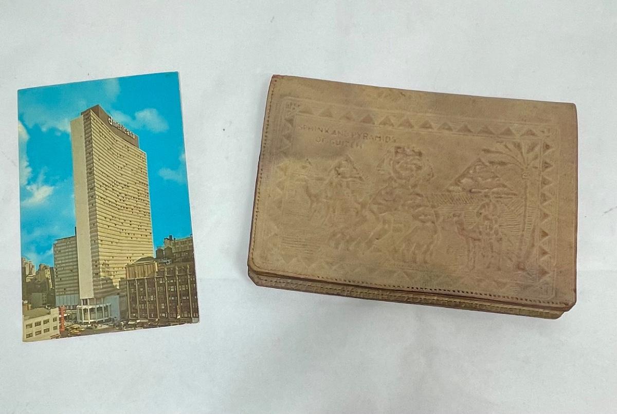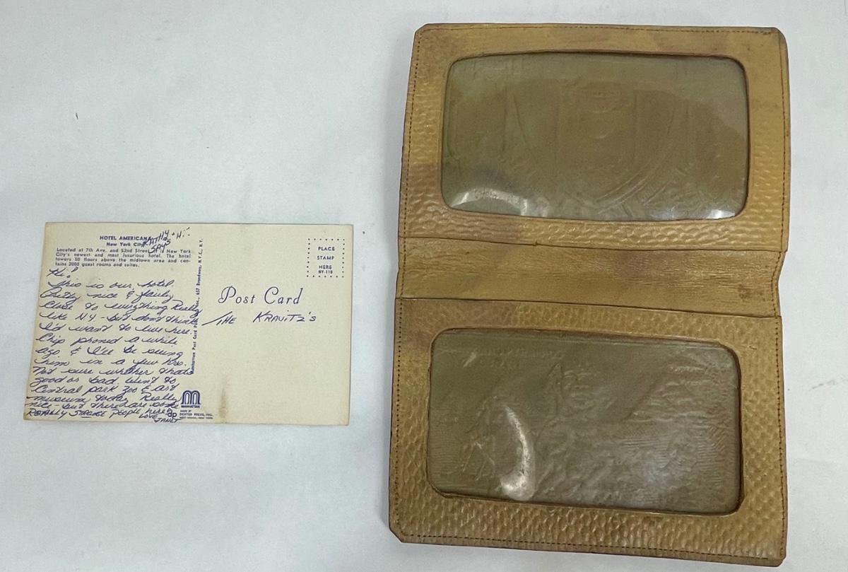 Leather Souvenir Photo Wallet and Vintage Postcard