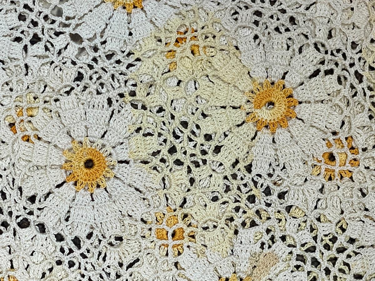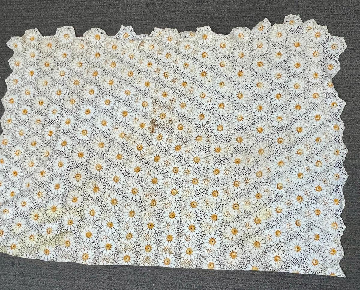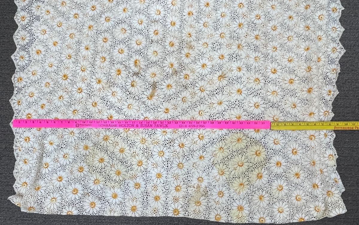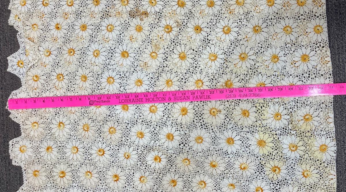 Antique crocheted yellow daisy 70” x 44” bedspread