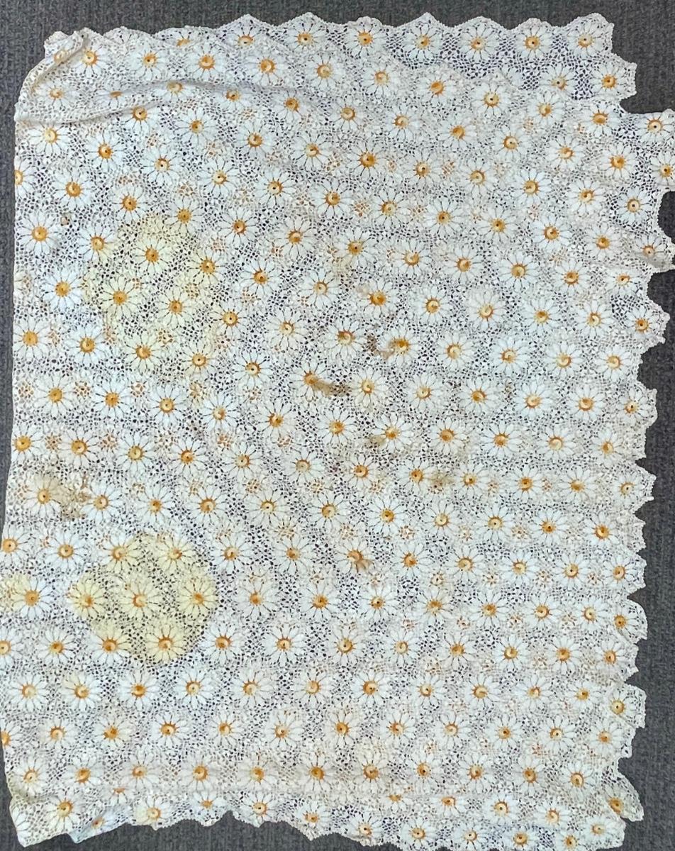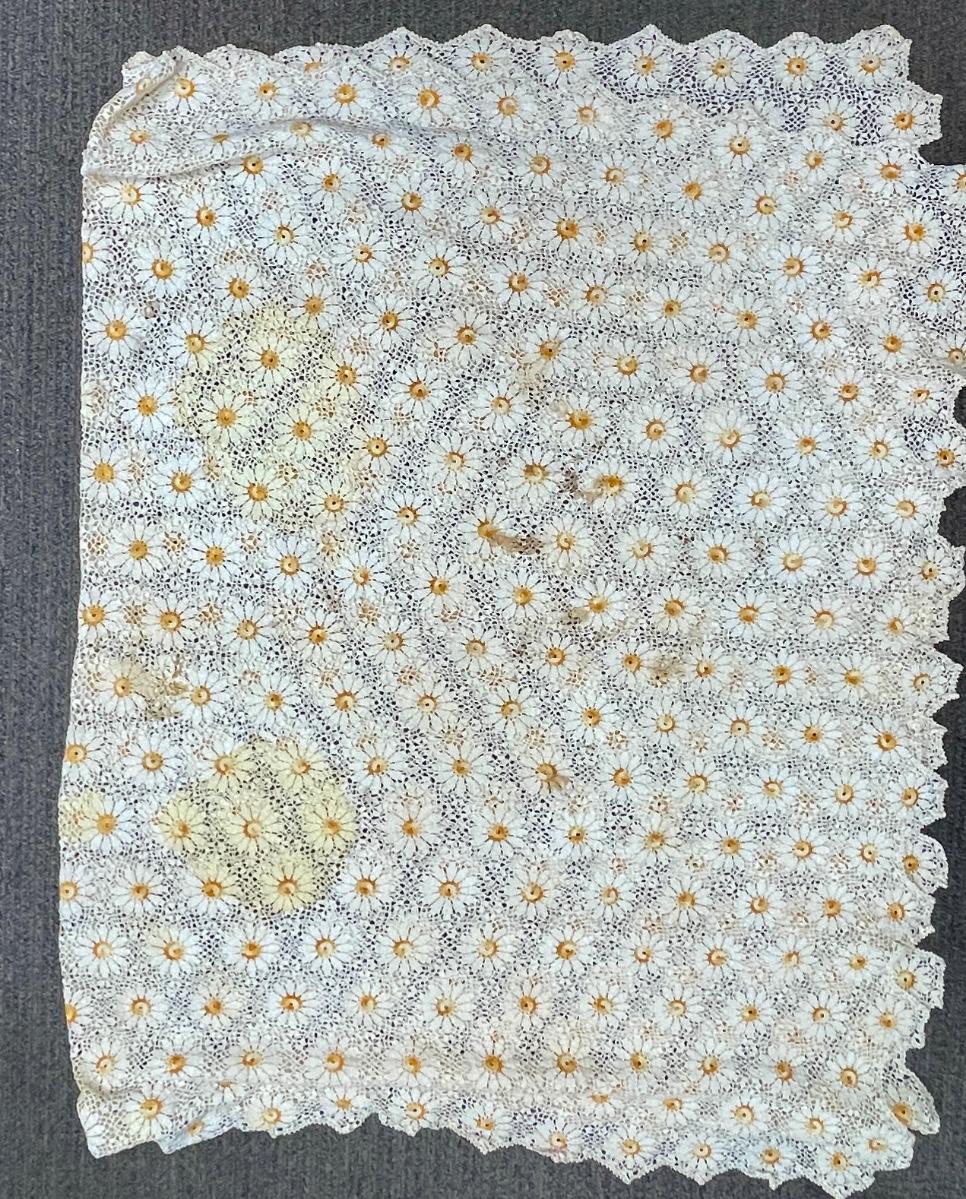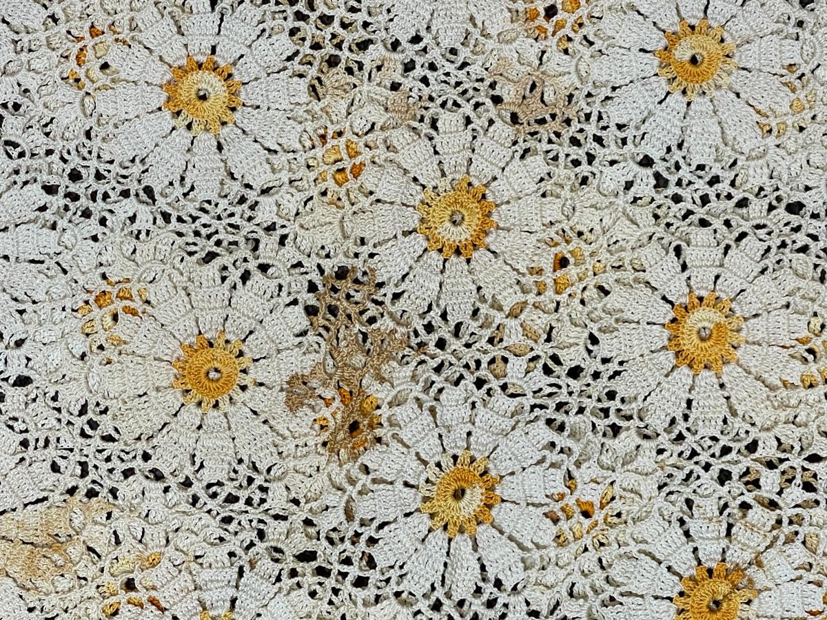 Antique crocheted yellow daisy 70” x 44” bedspread
