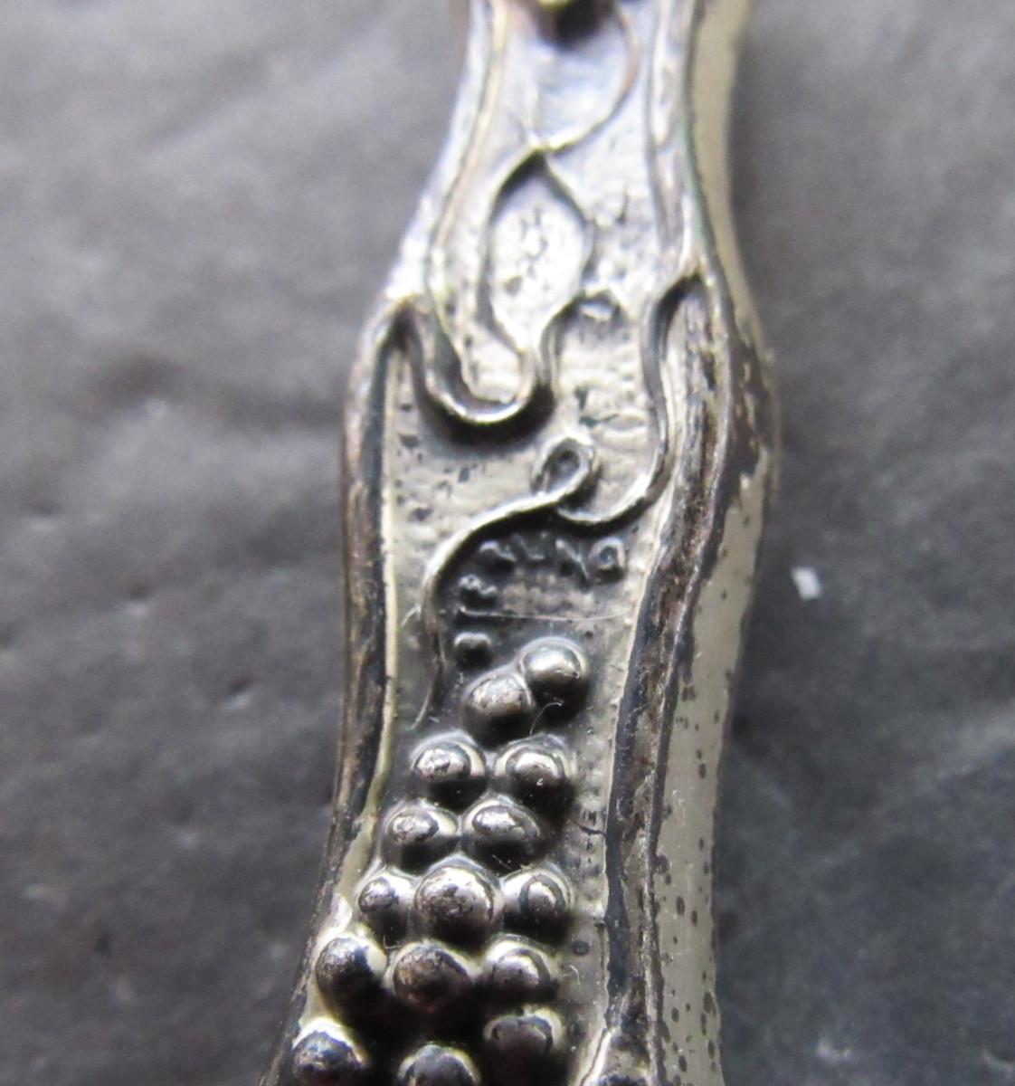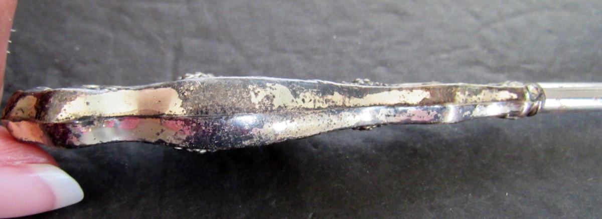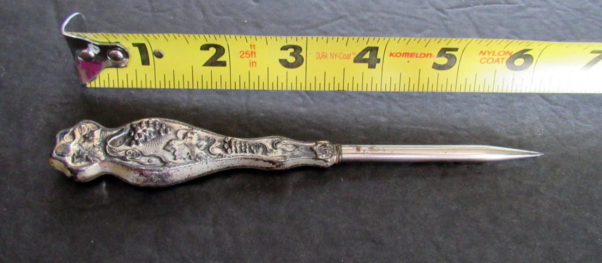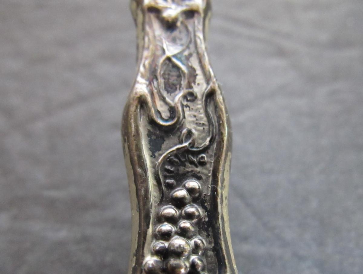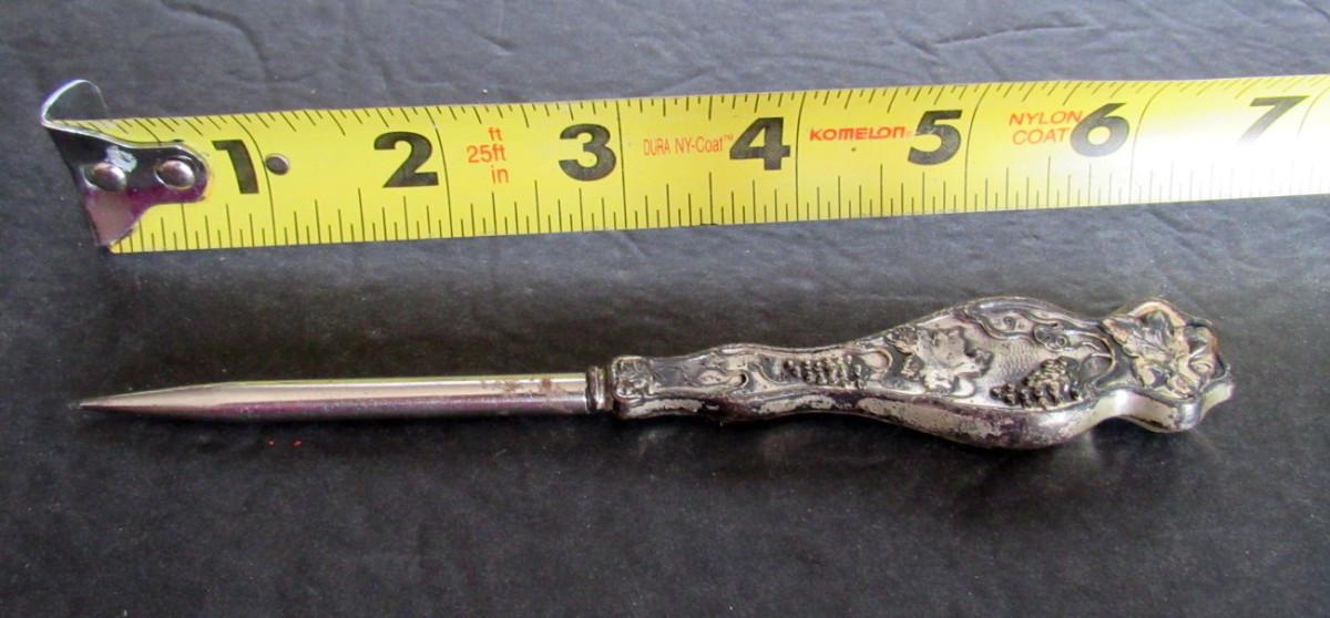 Marked sterling but it looks either very tarnished or worn off. Shipping is available at actual shipping cost plus $5.00 handling fee per box for supplies/labor. See our terms for details. All sales are final. Condition notes may not be all inclusive, we may miss some issues as most vintage items are not in mint condition and have some degree of wear, paint loss, etc, but we always try to note obvious damage.