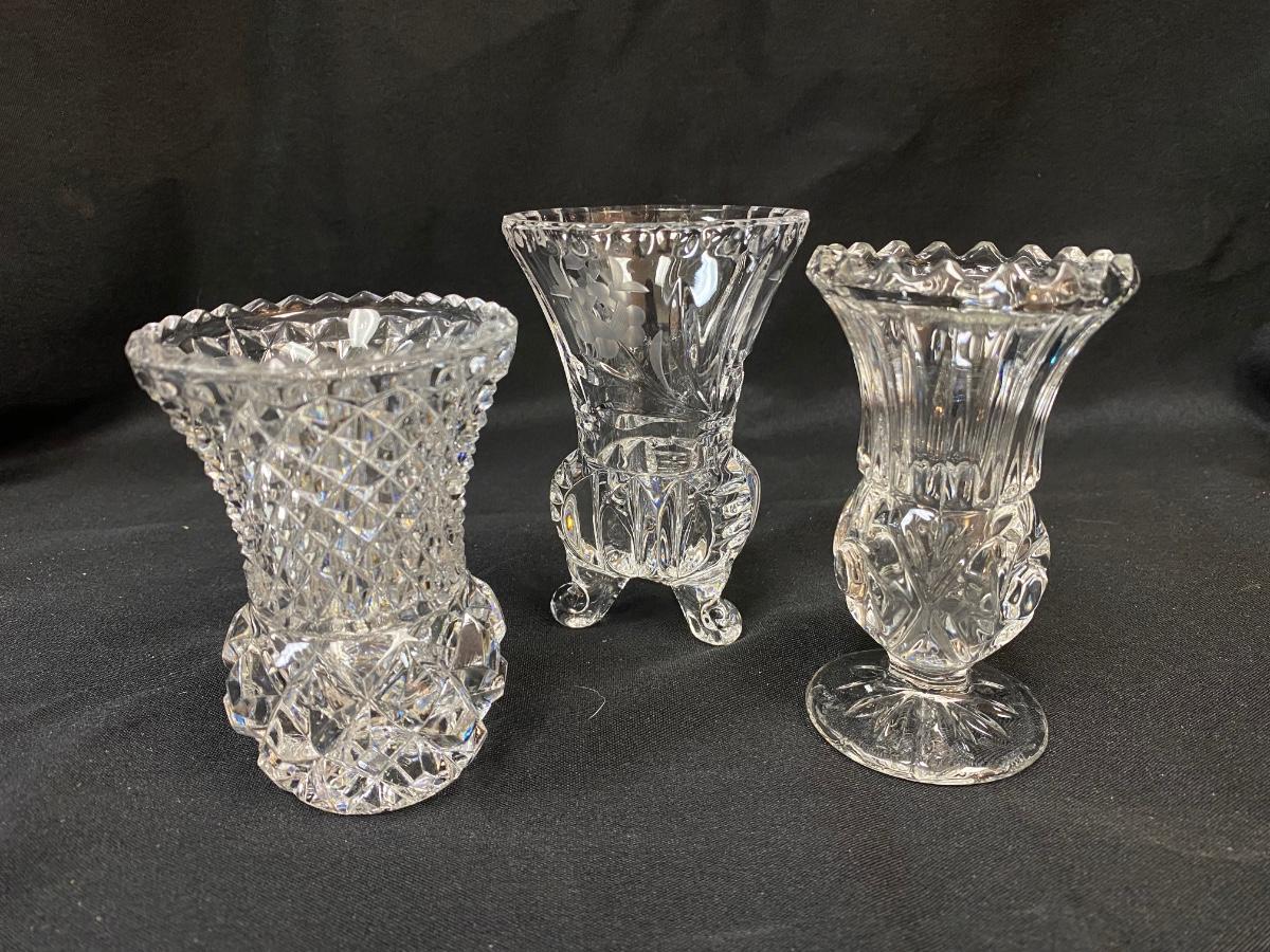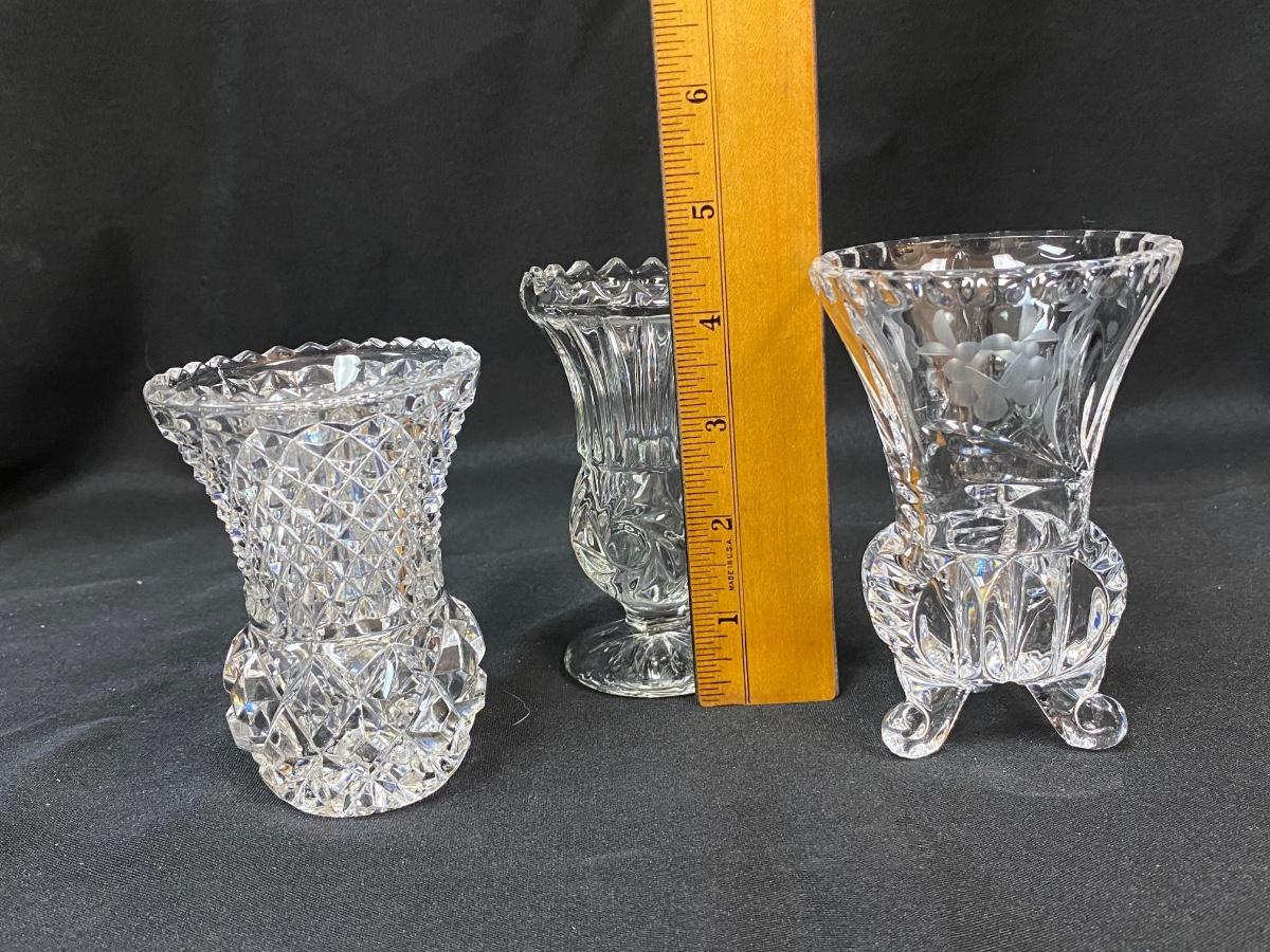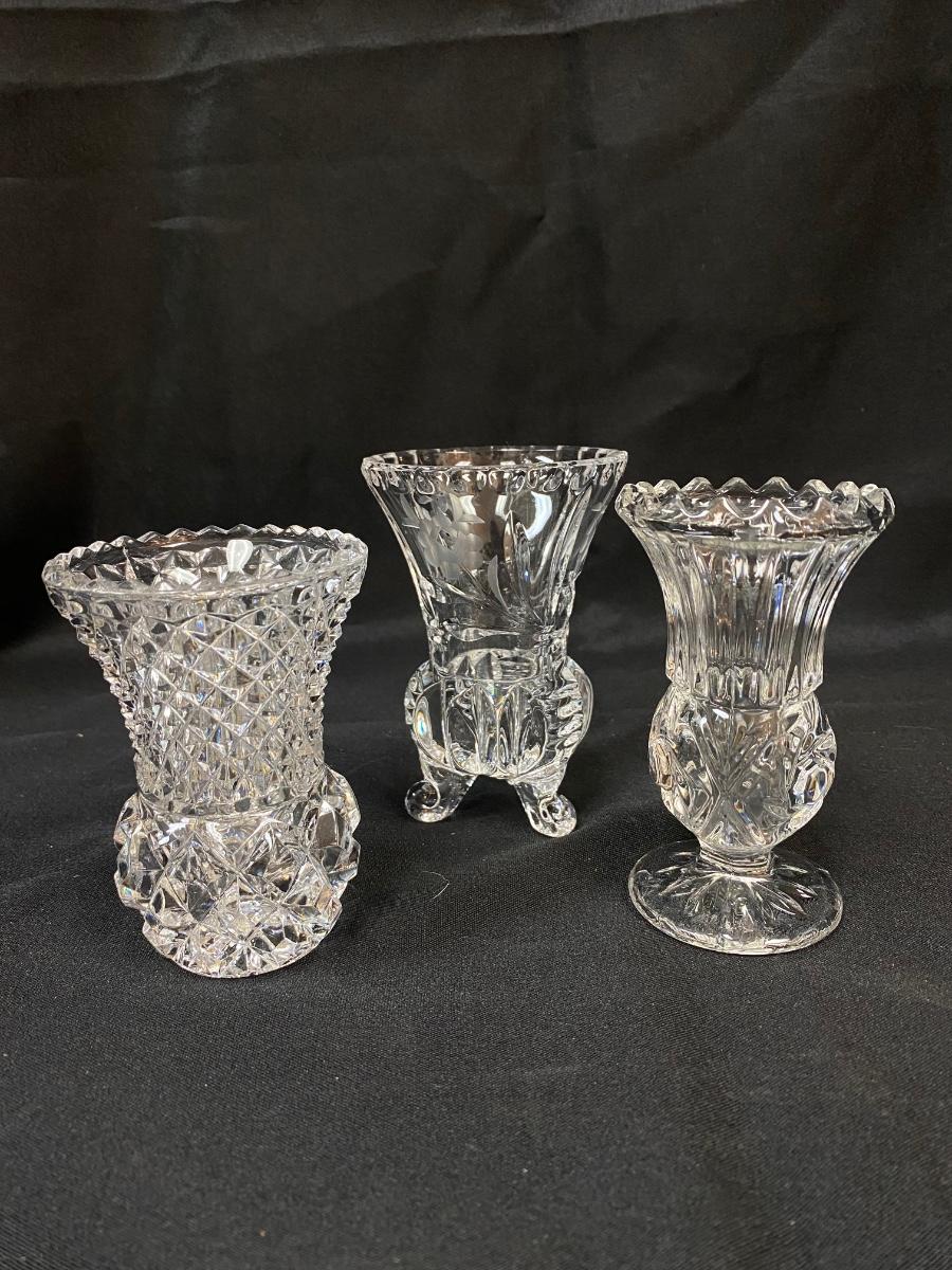 Small Vintage Cut Crystal Glass Bohemian Bud Flower Trinket Vases
