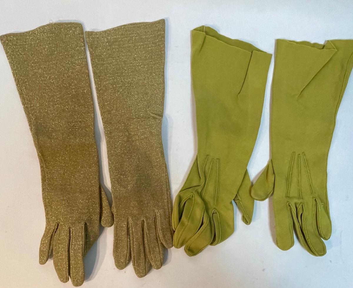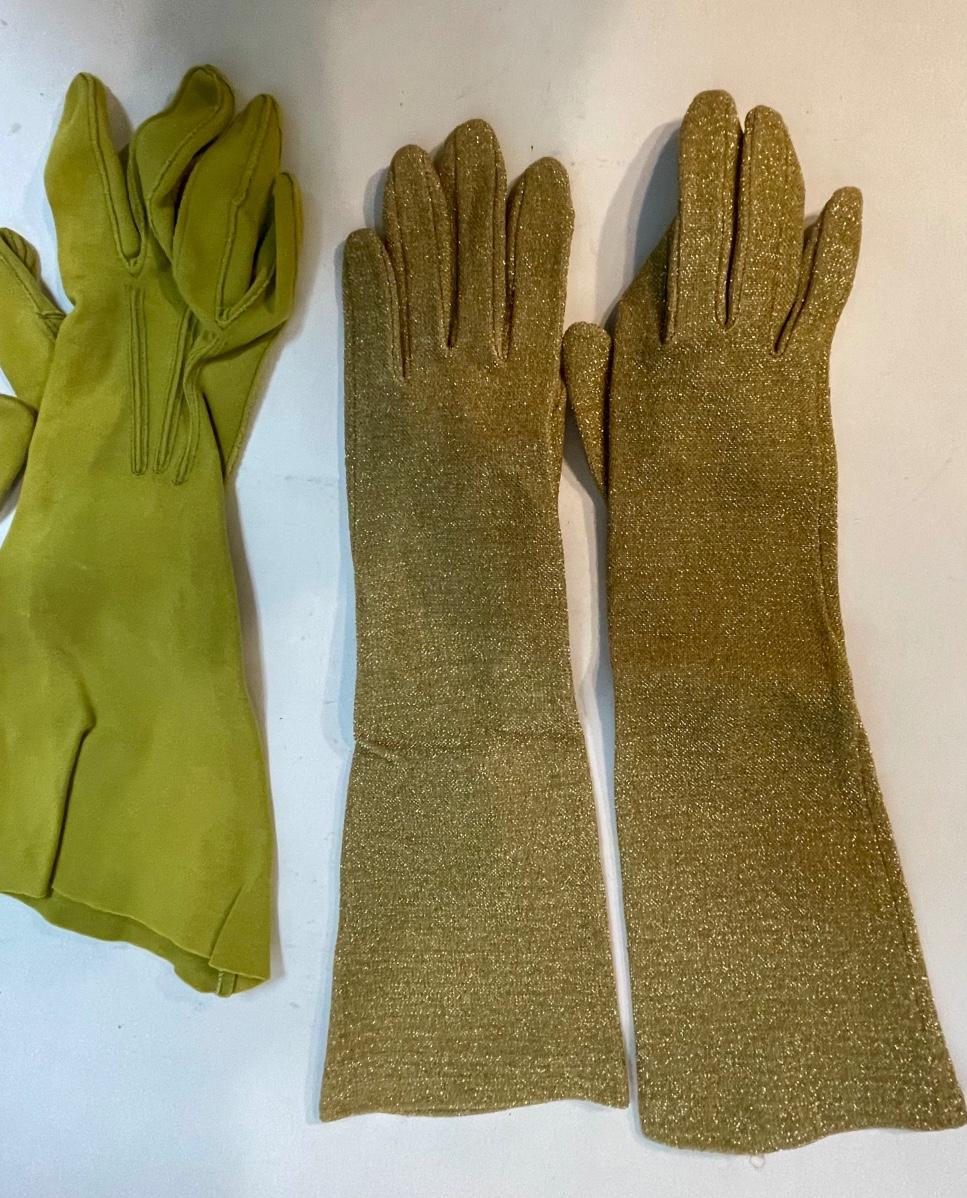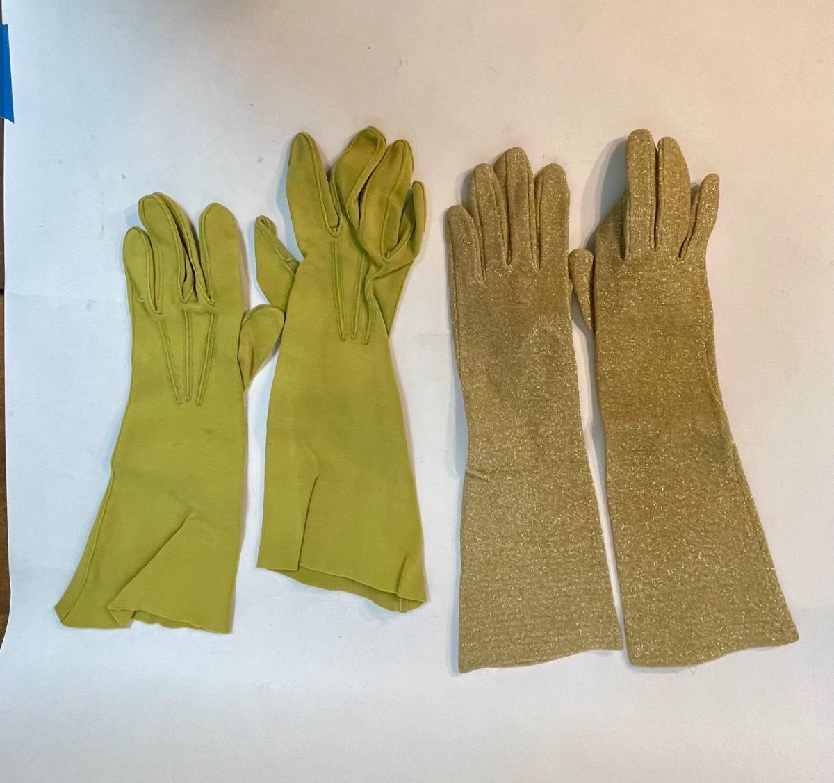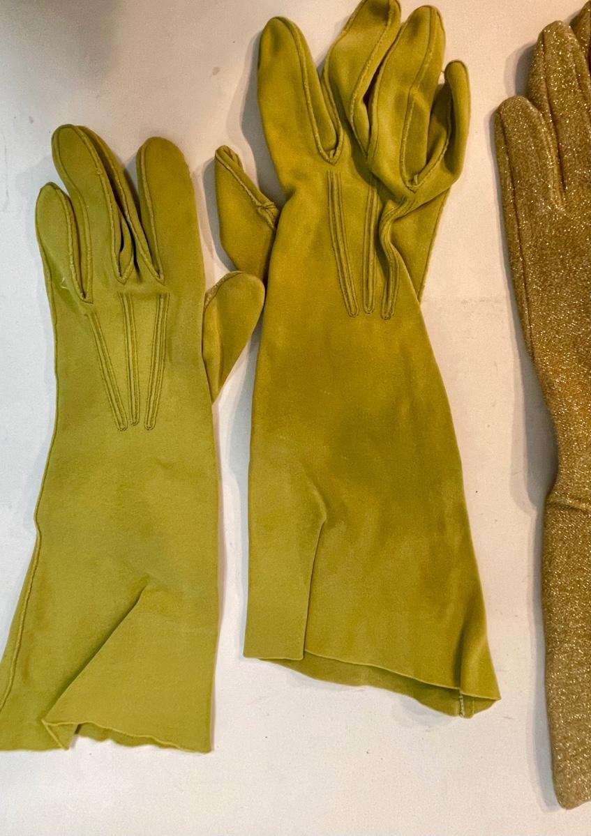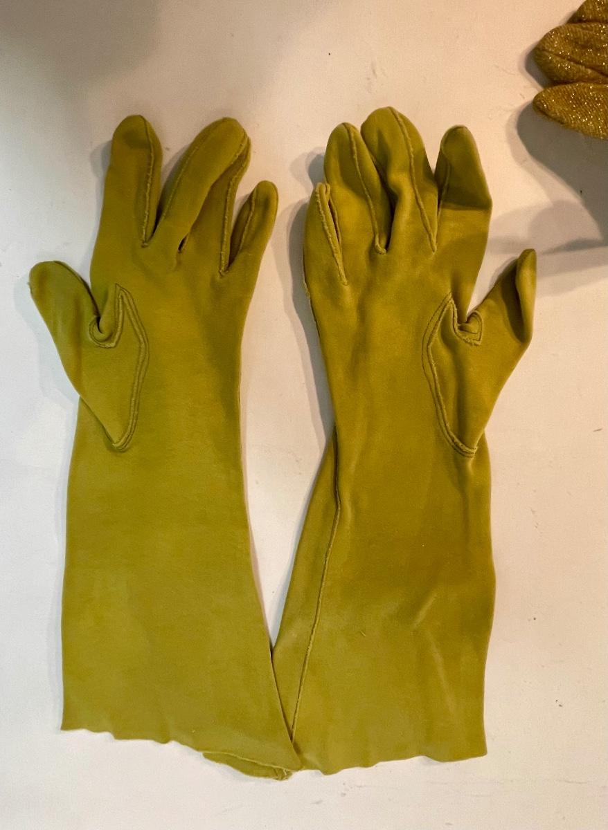 Antique Accessories Tan Material and Green leather Ladies' Gloves