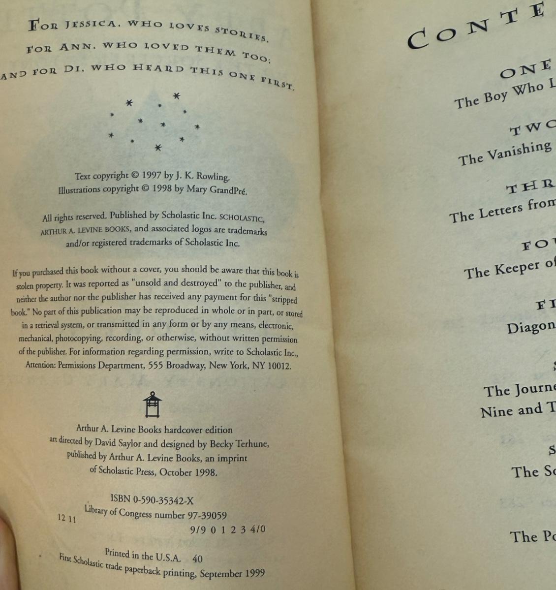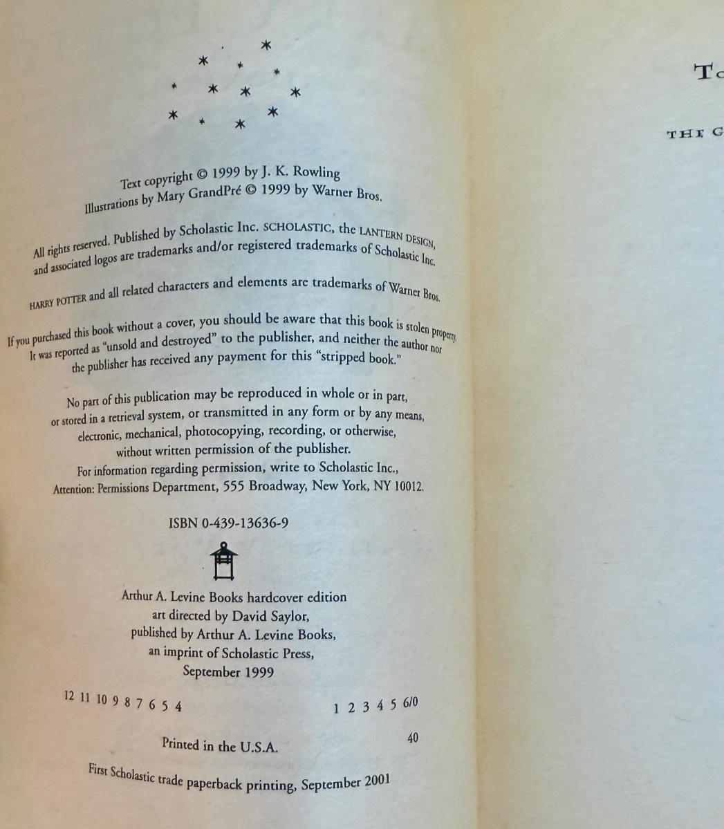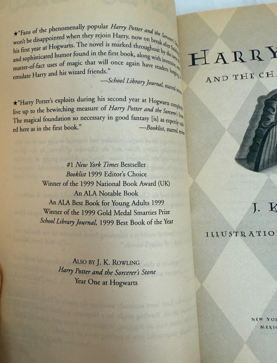 Titles include: Harry Potter and the Sorcerer's Stone, Harry Potter and The Chamber of Secrets, and Harry Potter and The Prisoner of Azkaban. One book has som pages curled up at the bottom corner, but are all otherwise in good, used condition.