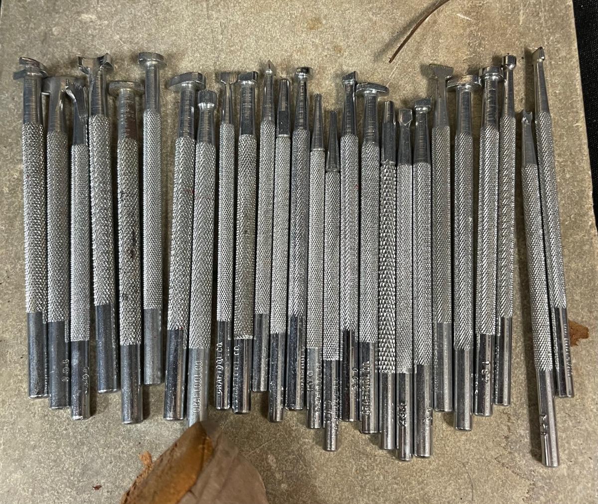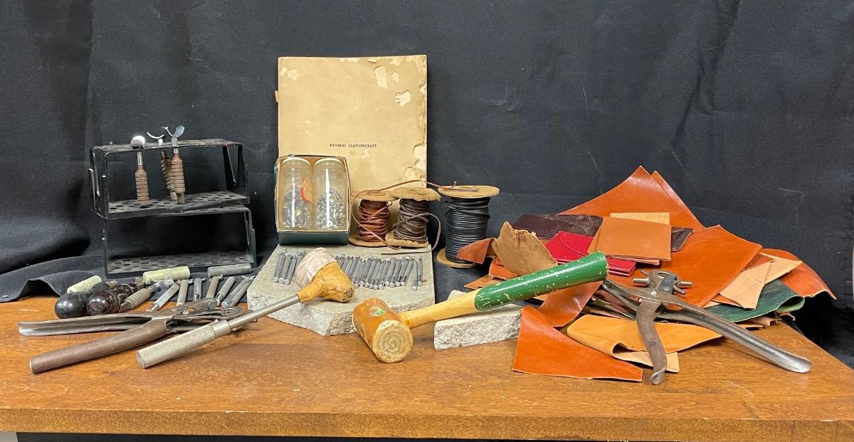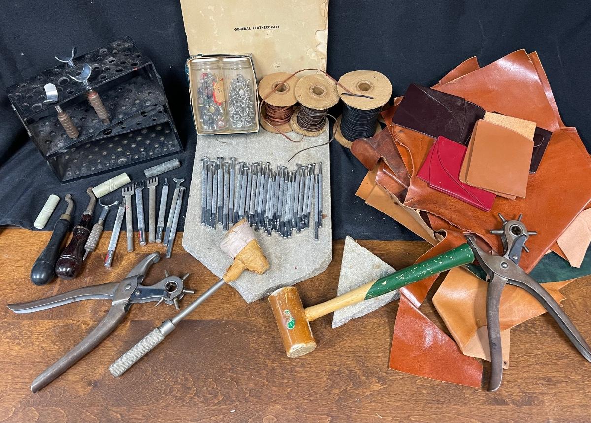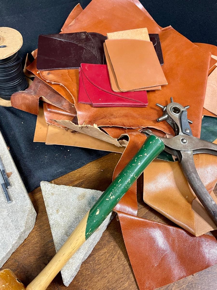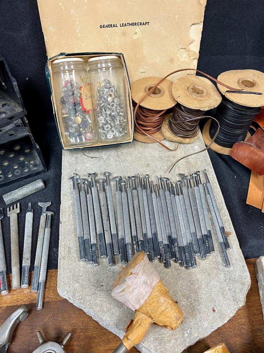 Huge Lot of Leather Tooling Crafting Supplies Stamps Materials Rivets. Vintage lot of leather crafting supplies. Everything in photos included.