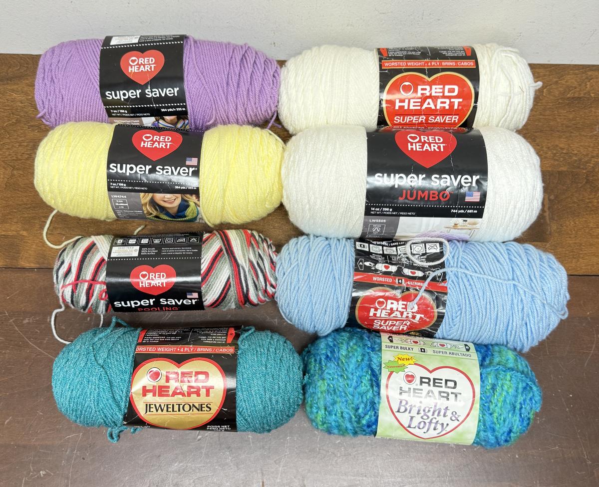 Yarn Lot# 4 - (8) Skeins of yarn in various colors - white, lavender, light blue, green, green blue, mixed