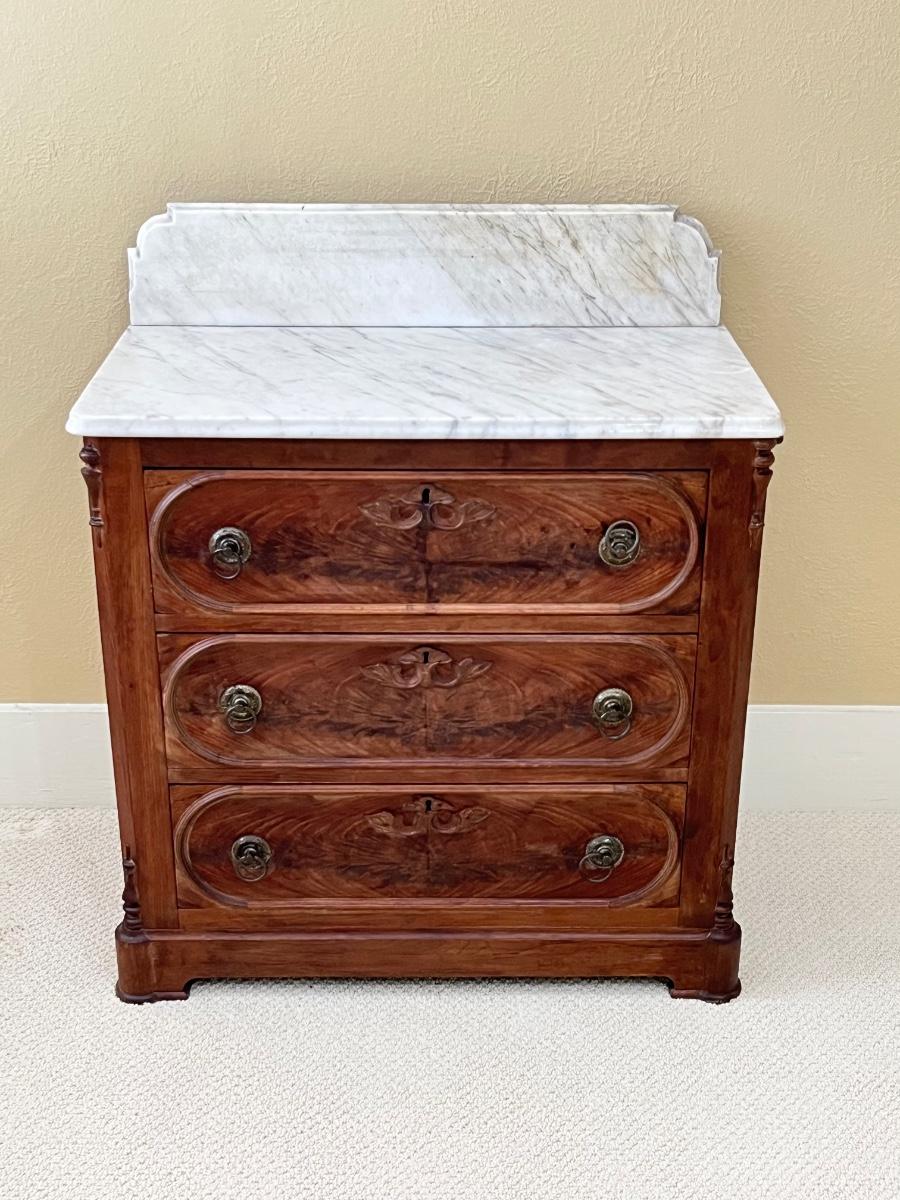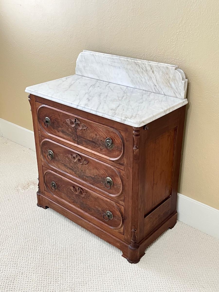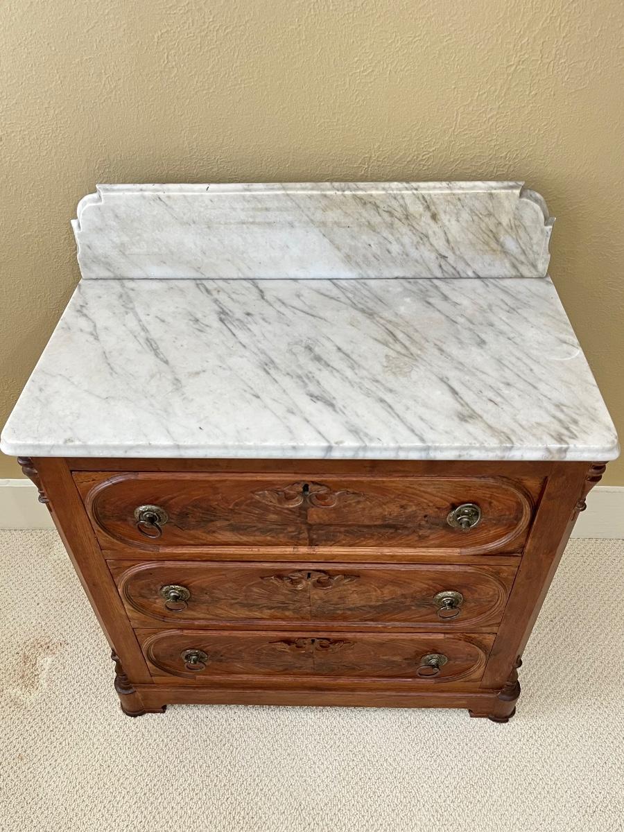 Antique Solid Wood ~ Carrera Marble Top Basin ~ “˜Read Details