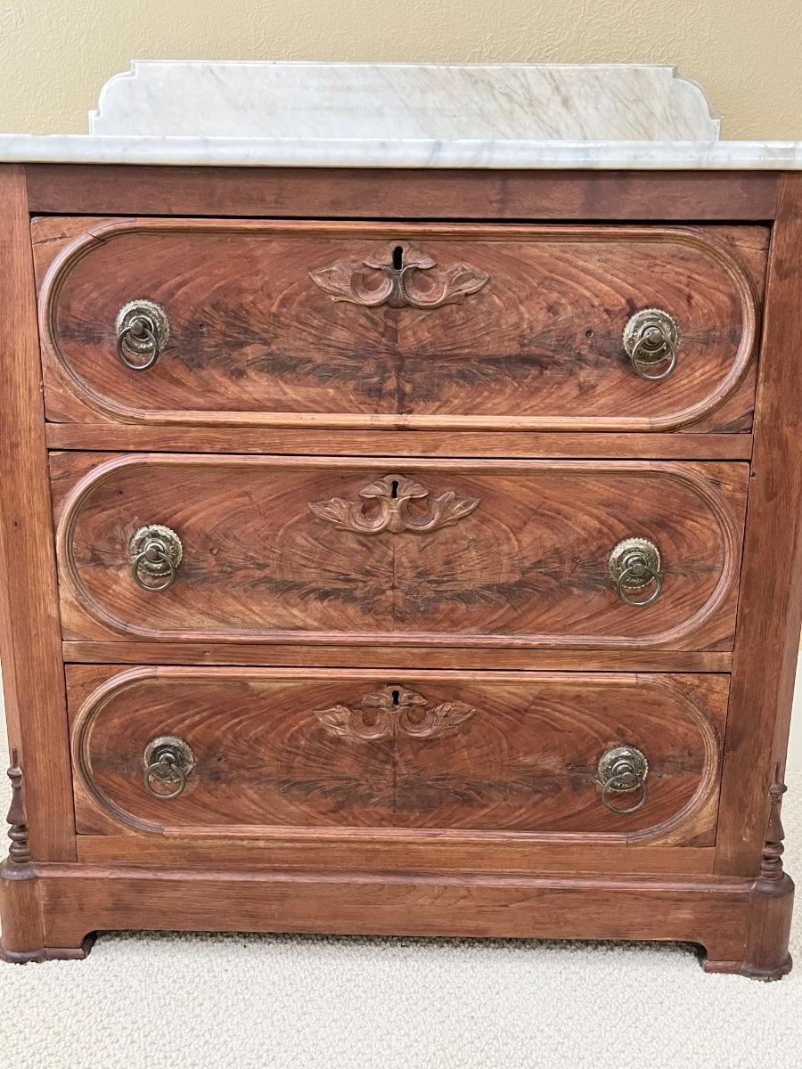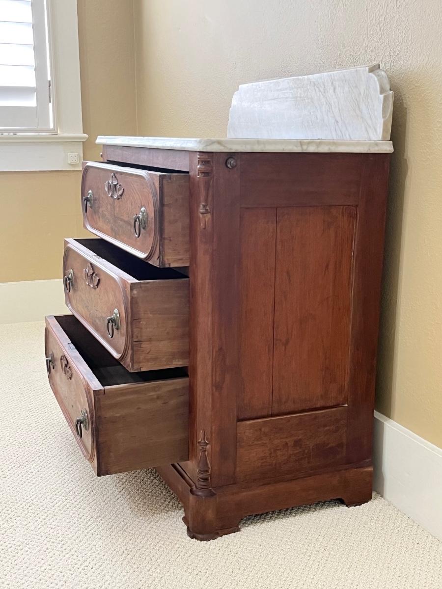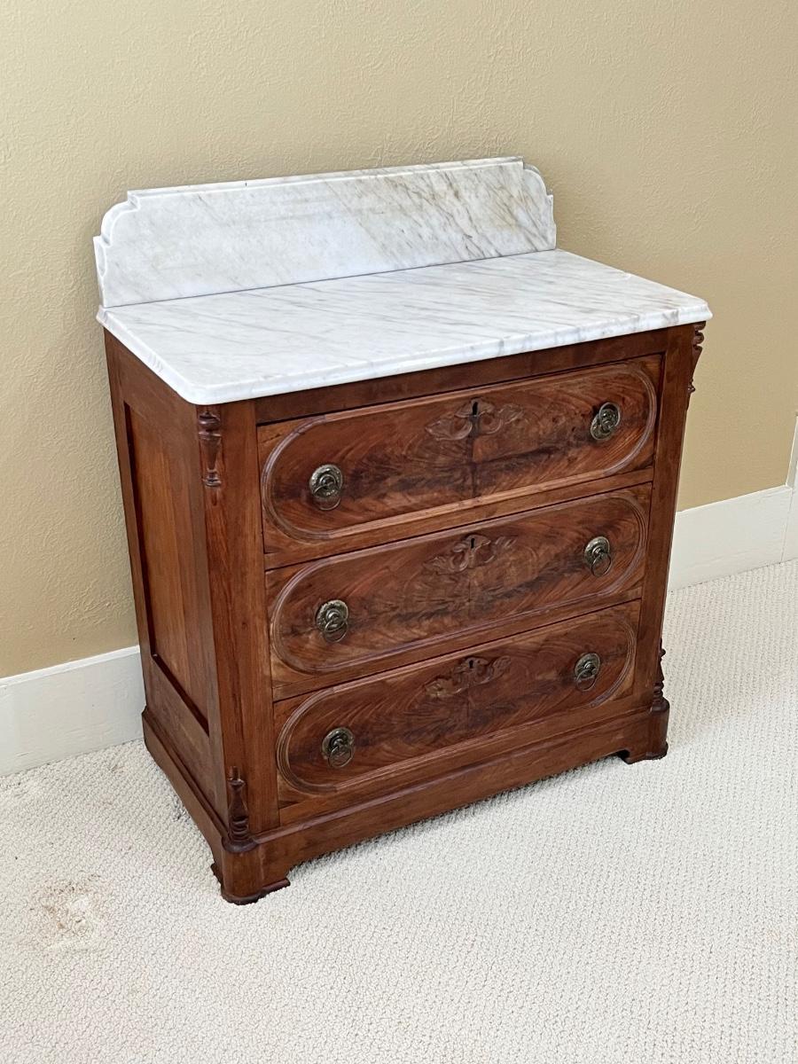 Antique Solid Wood ~ Carrera Marble Top Basin ~ “˜Read Details