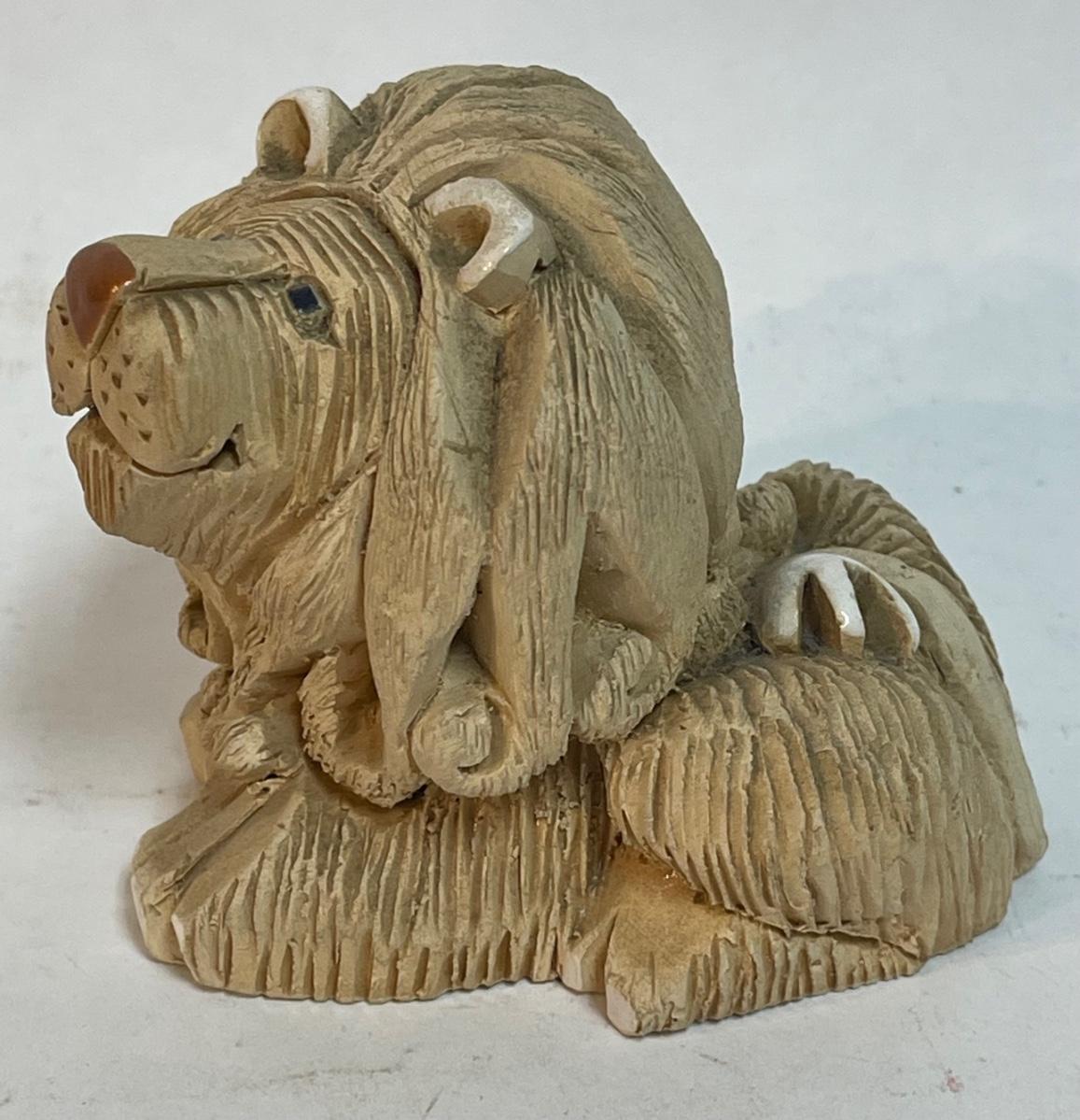 Vintage Artesania Rinconada Lion Hand Carved Clay Figurine Retired Uruguay