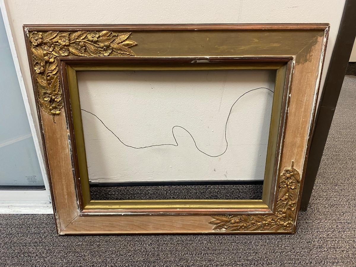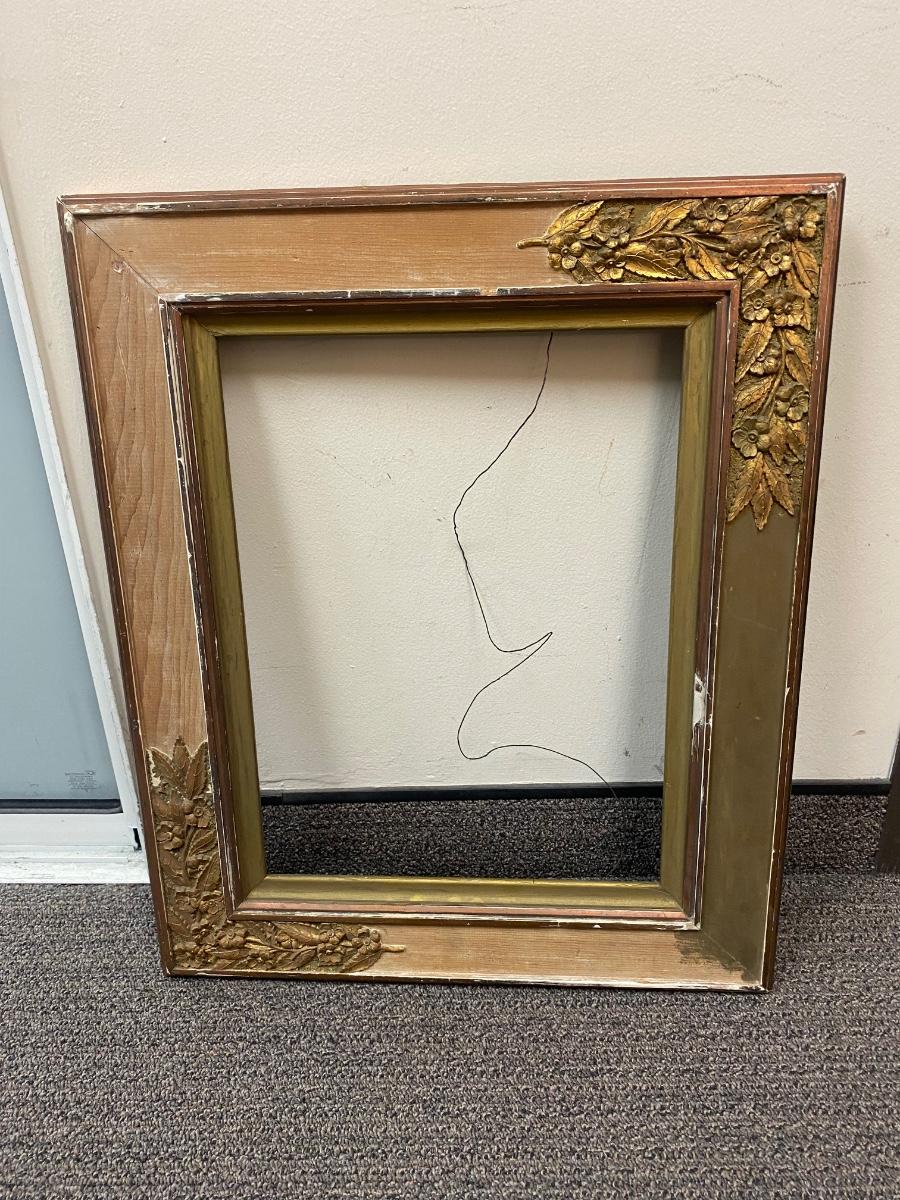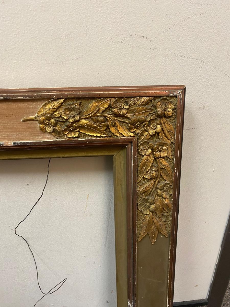 Vintage Art Nouveau Flower Vine Corner Detail Picture Art Frame No Glass. Signs of age and use. Great for repurpose. About 24" size.