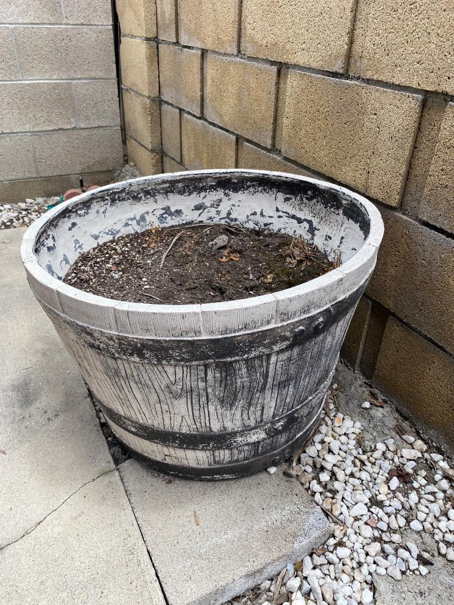 Lot of Wood and Faux Wood Whiskey Half Barrel Planters