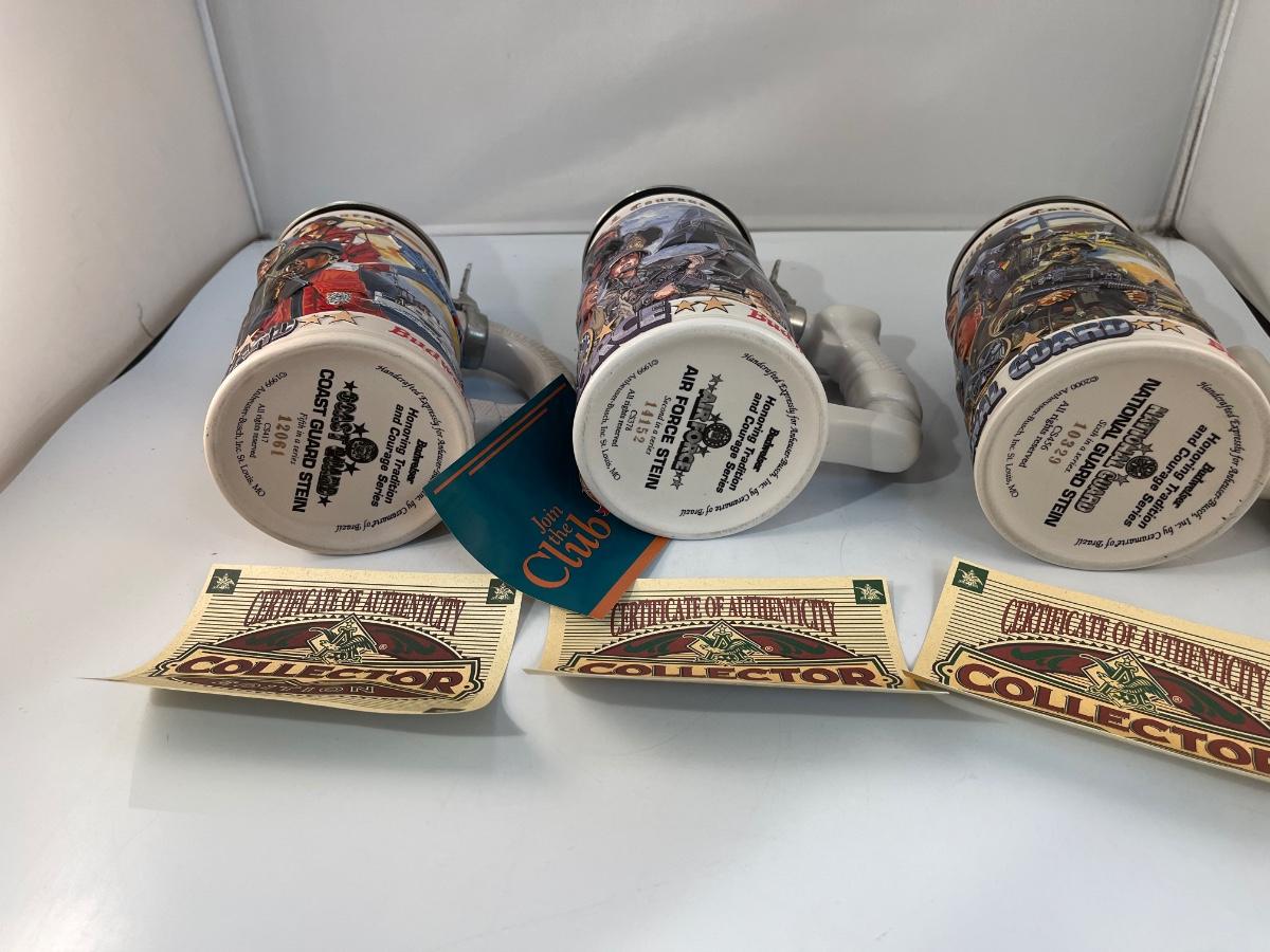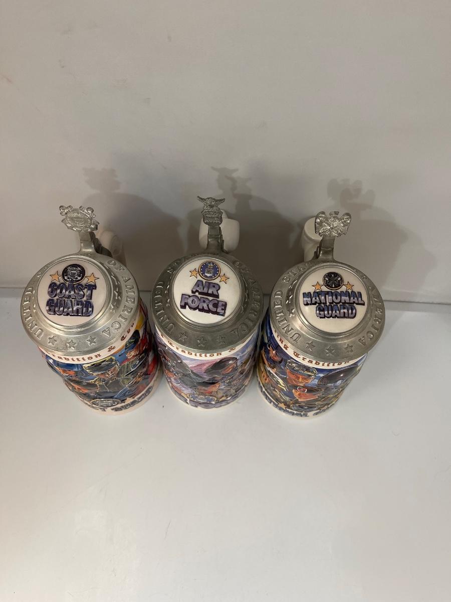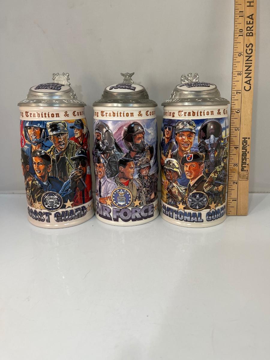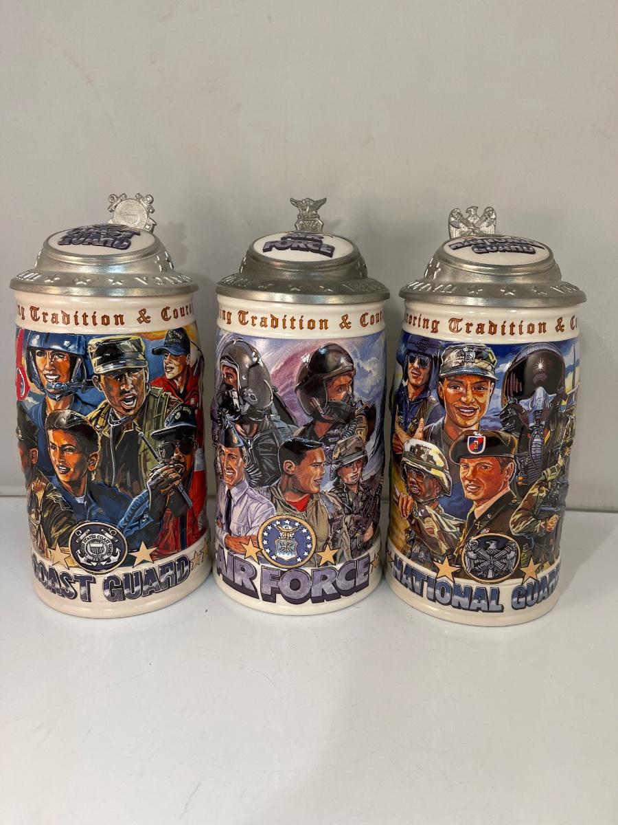 3 pc lot of Beer Steins - Ceramic USA Armed Forces National Guard Air Force Coast Guard