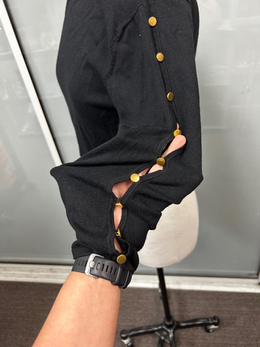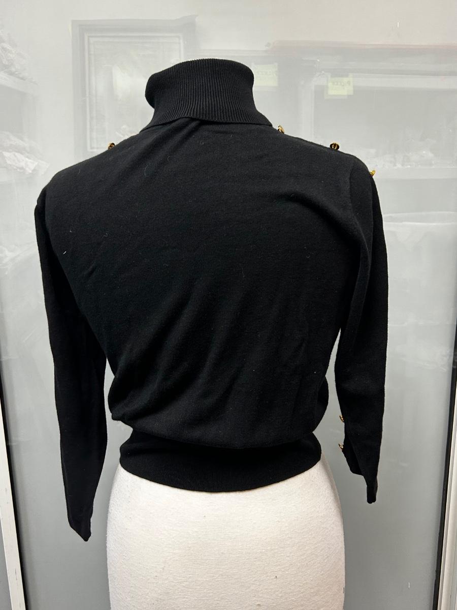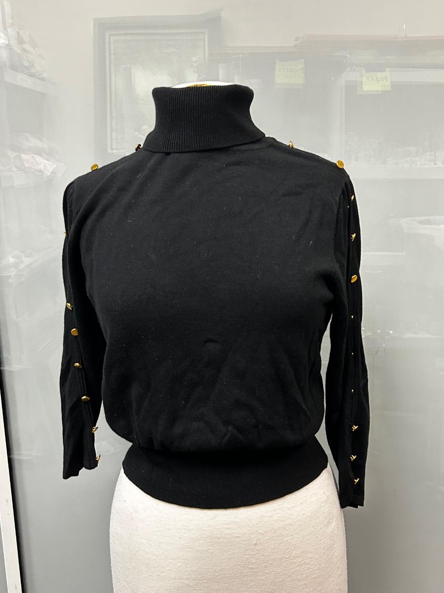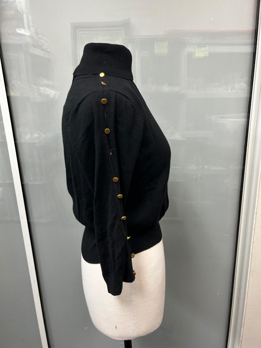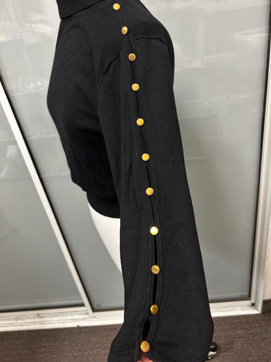Lauren Michelle Large Black Turtleneck Sweater with Gold Tone Buttons Down Arms