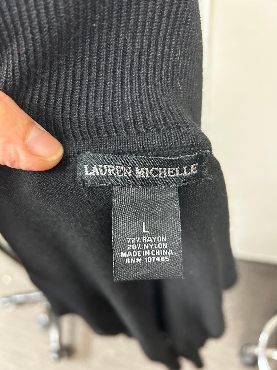 Lauren Michelle Large Black Turtleneck Sweater with Gold Tone Buttons Down Arms. In good condition. Sleeves have cut out opening between the buttons.