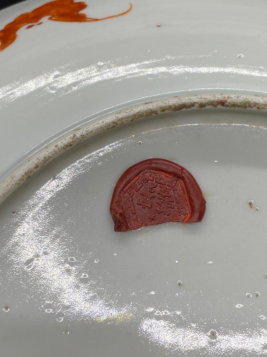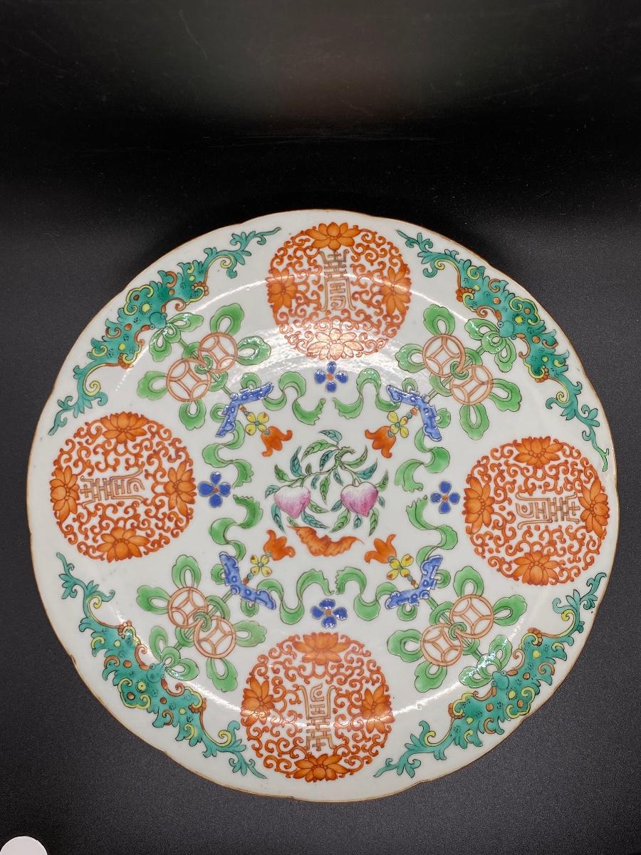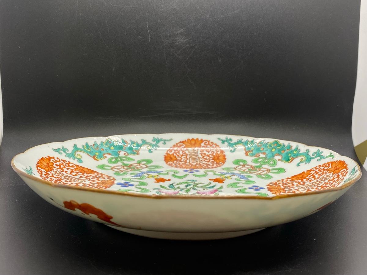 Large vintage oriental design Asian bowl platter. Shallow bowl or platter. Great for display. Marked on the back. About 10" size.