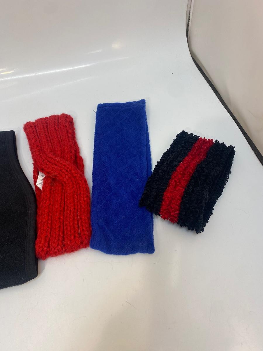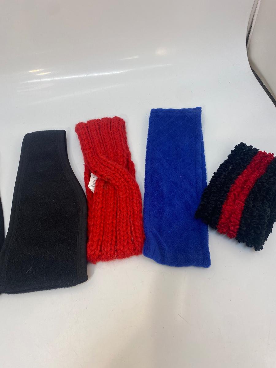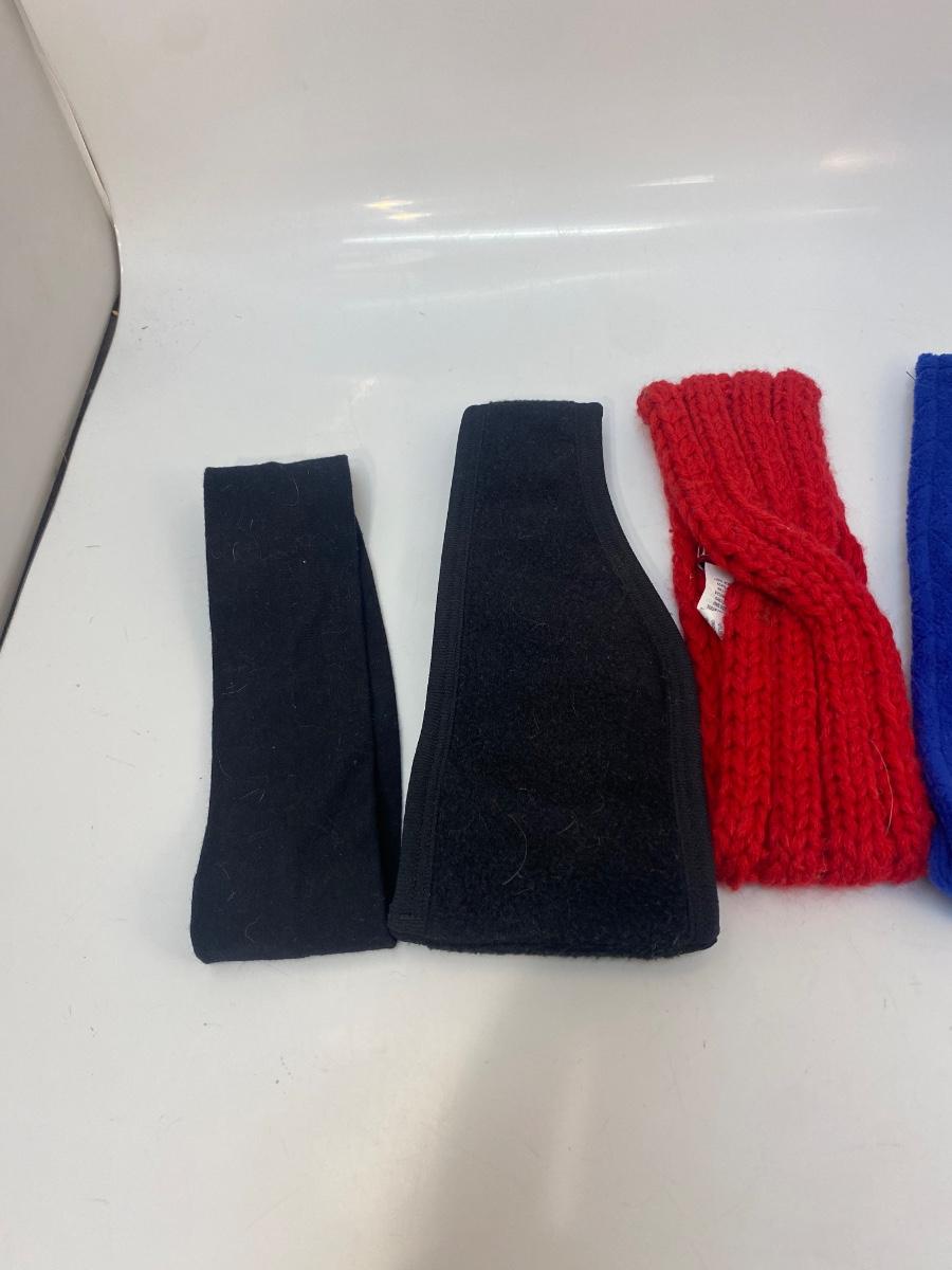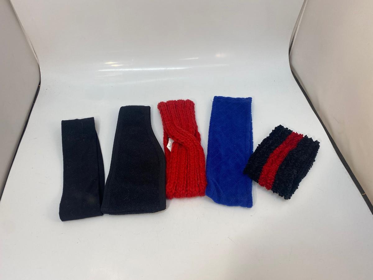 Lot of Cold Weather Headband Style Ear Warmers Sweatbands. Good previously owned condition. The three in the center are cold weather headbands, the outside two are more fashionable.