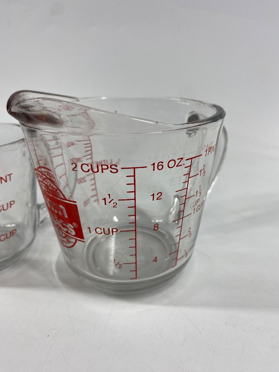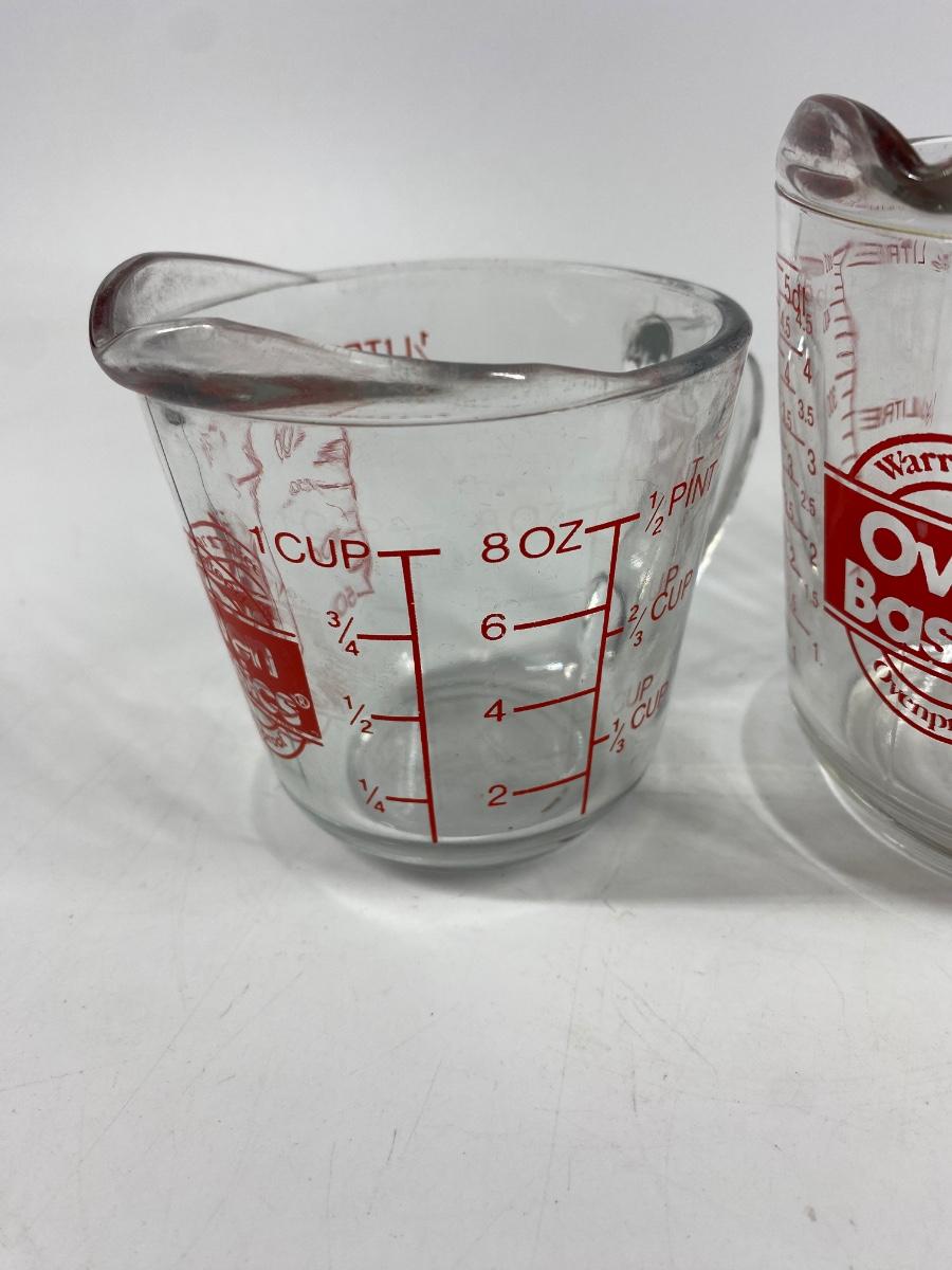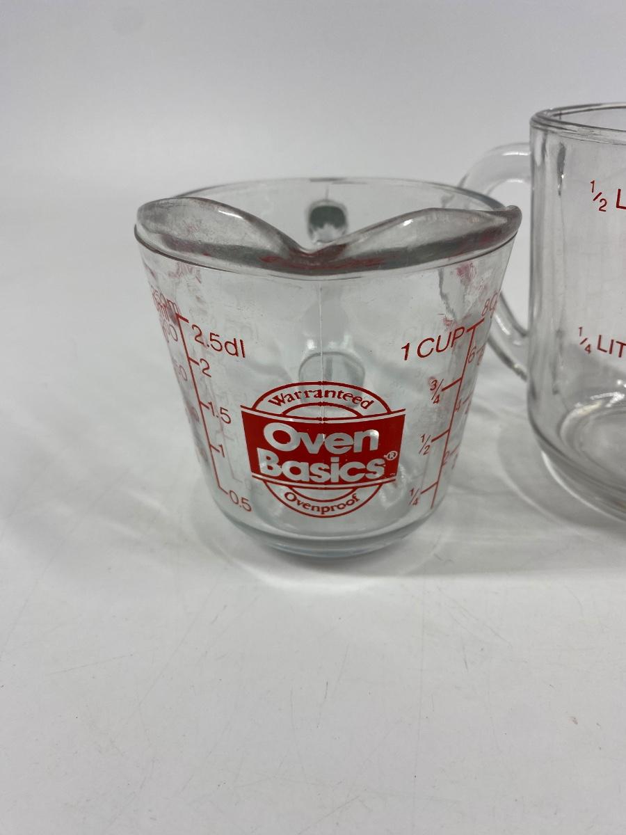 Oven Basics Glass Measuring Pitchers Set 1 & 2 Cup Size. Both are in good condition. Very light signs of use, no chips.