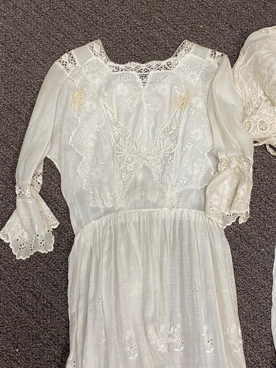 Pair of Vintage Antique Victorian White Cotton Gibson Girl Dresses Boho Romantic