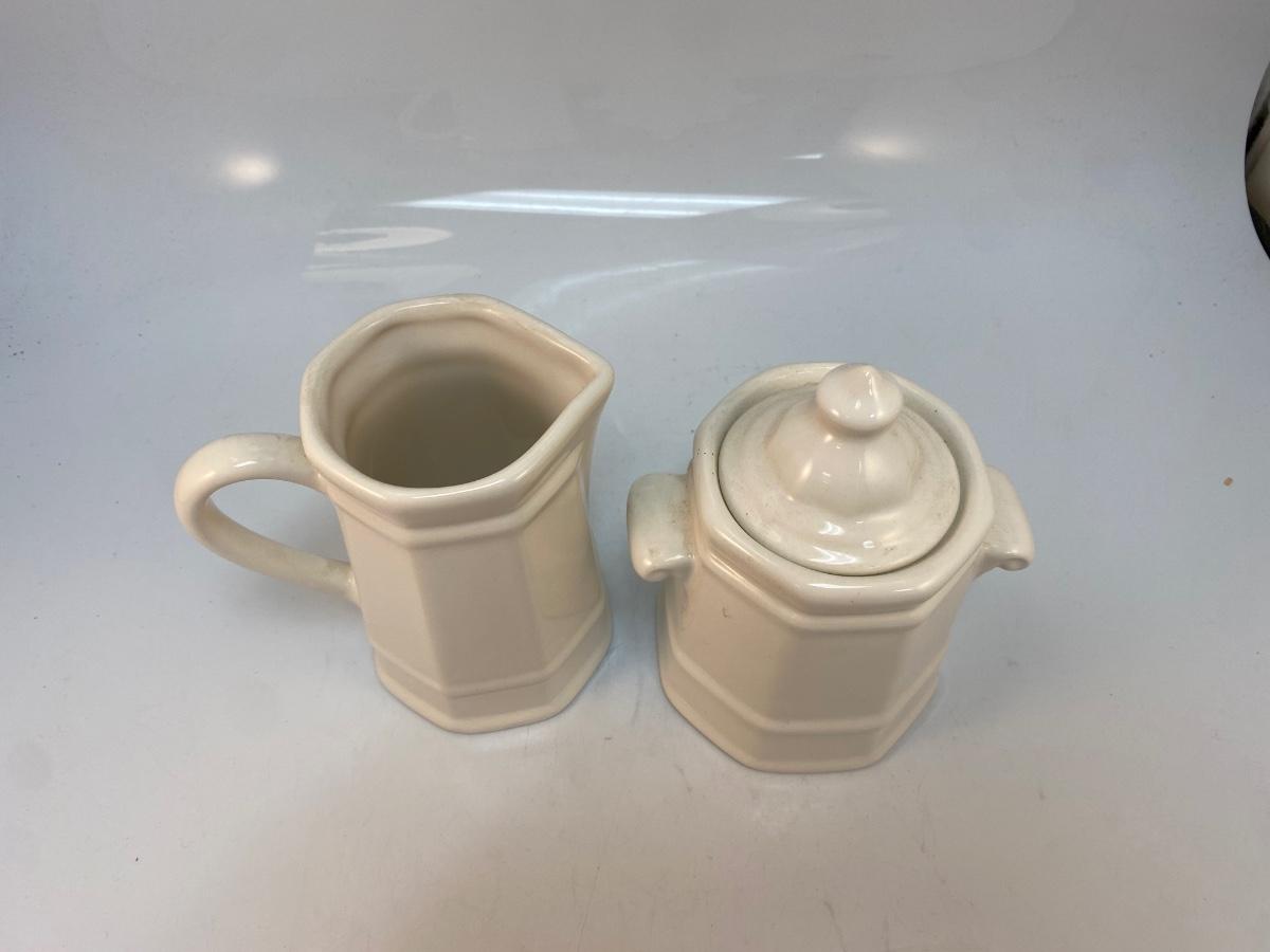 Pfaltzgraff Heritage White Ceramic Lidded Sugar Bowl & Creamer Set. In good condition. Great with almost every decor style.