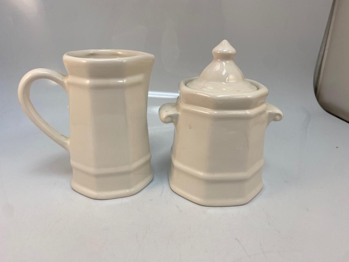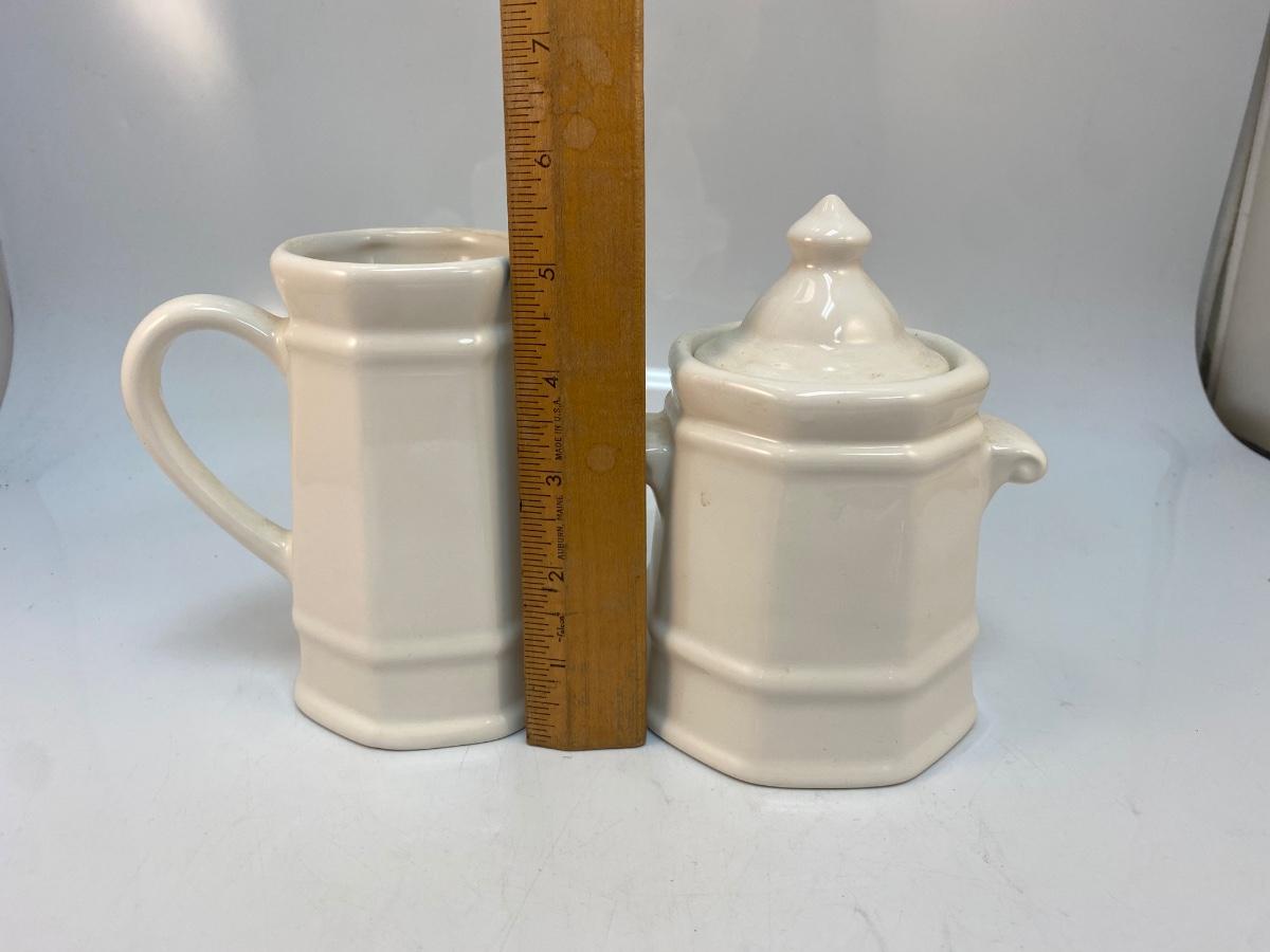 Pfaltzgraff Heritage White Ceramic Lidded Sugar Bowl & Creamer Set