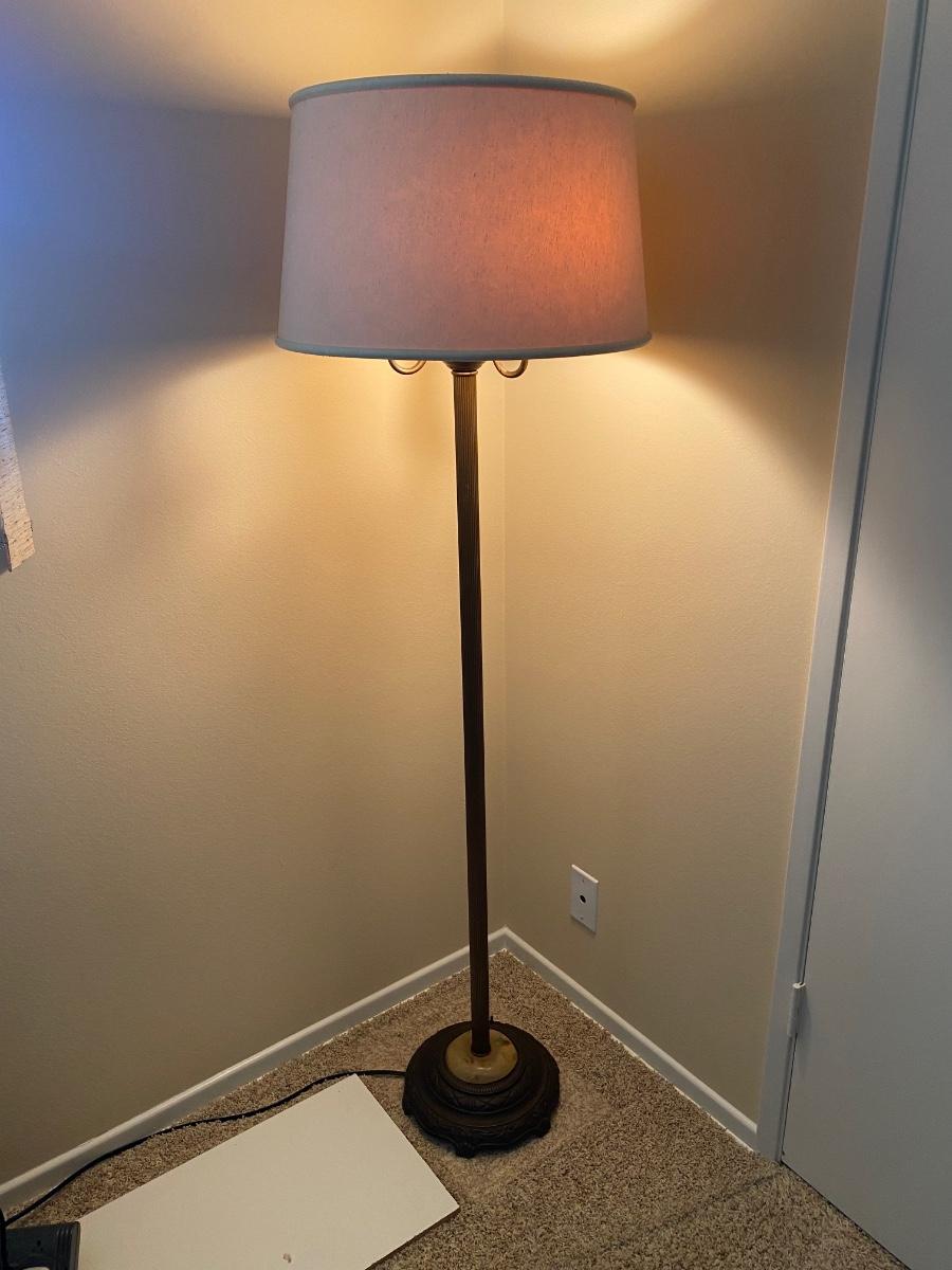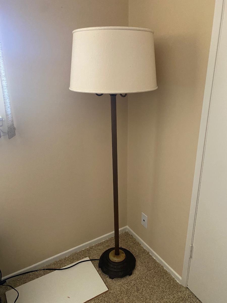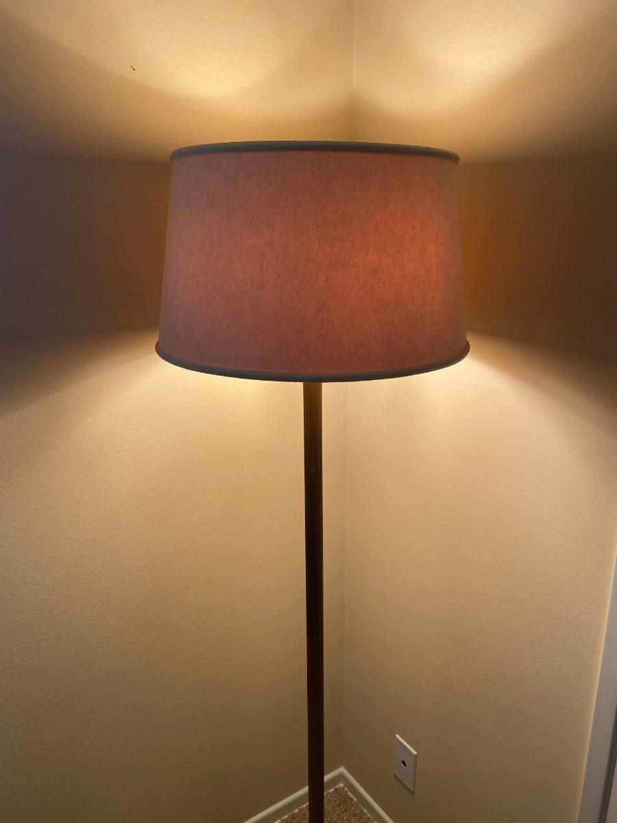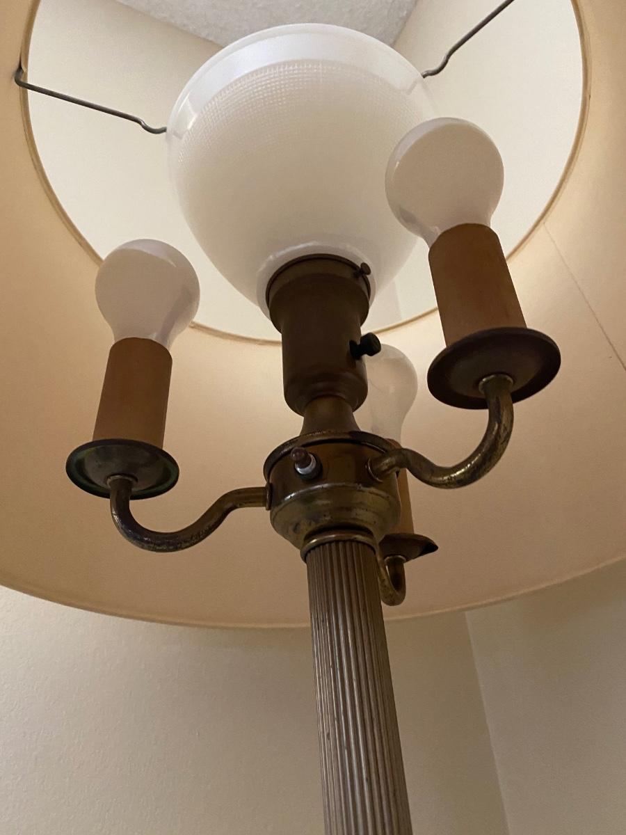 Wide Shade Metal Floor Lamp with Multiple Lights. In good condition. Works. Multiple bulbs for the perfect lighting. Just over 5' tall at top of shade.